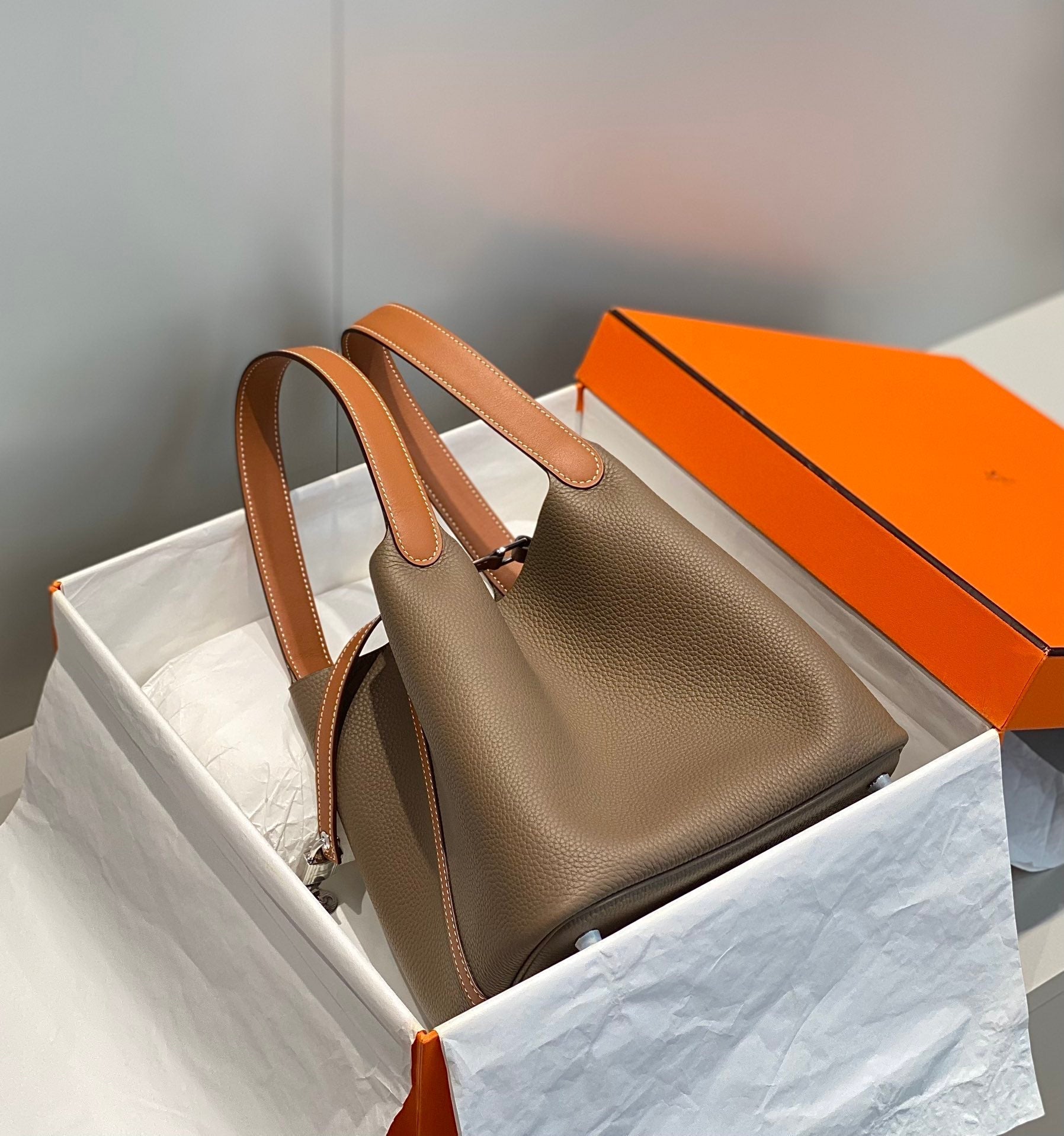 picotin lock etoupe togo leather gold hardware