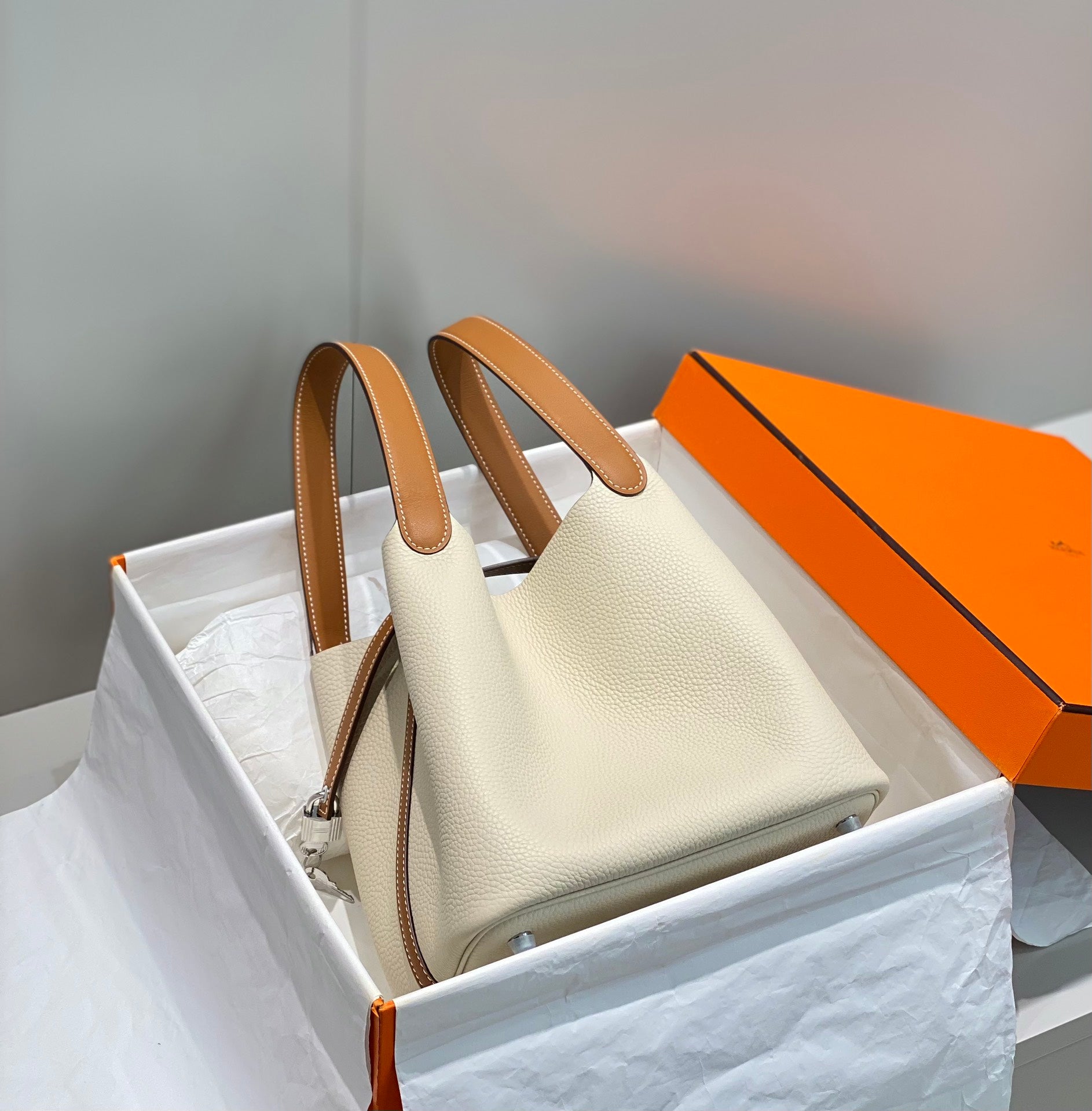 picotin lock ivory togo leather silver hardware