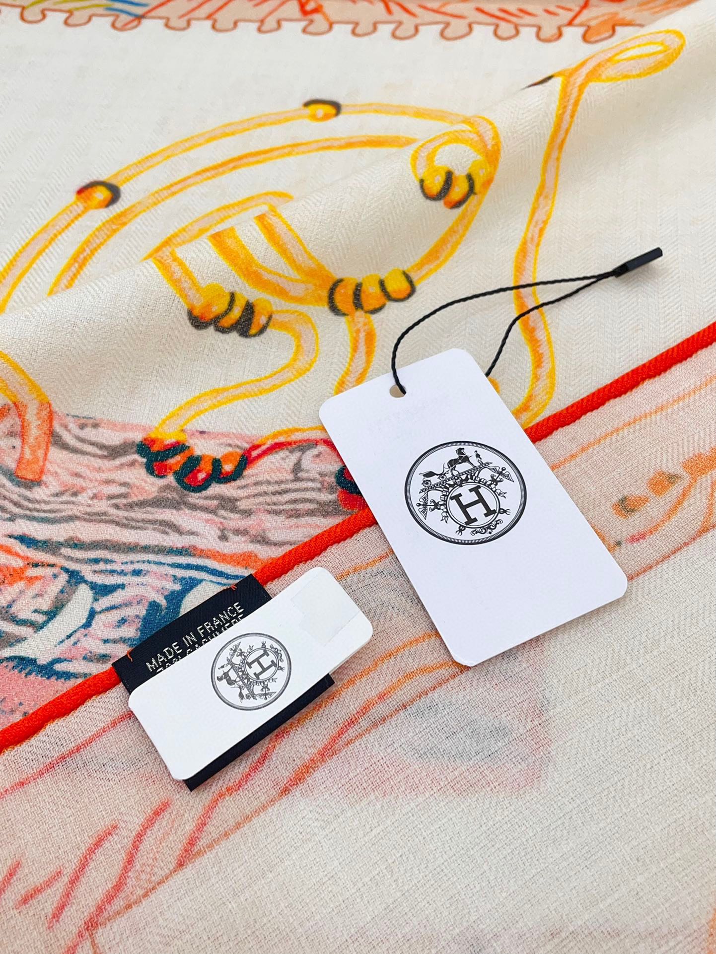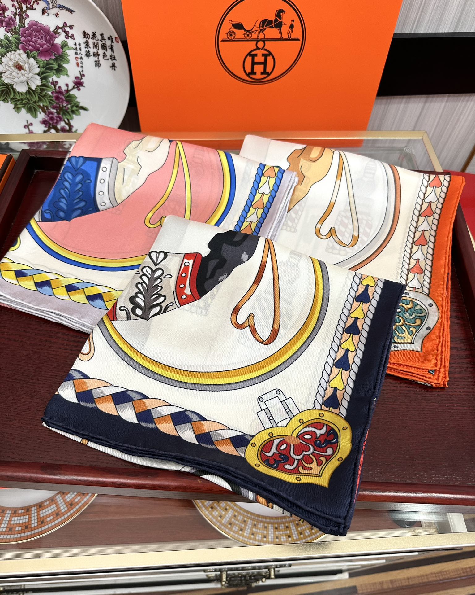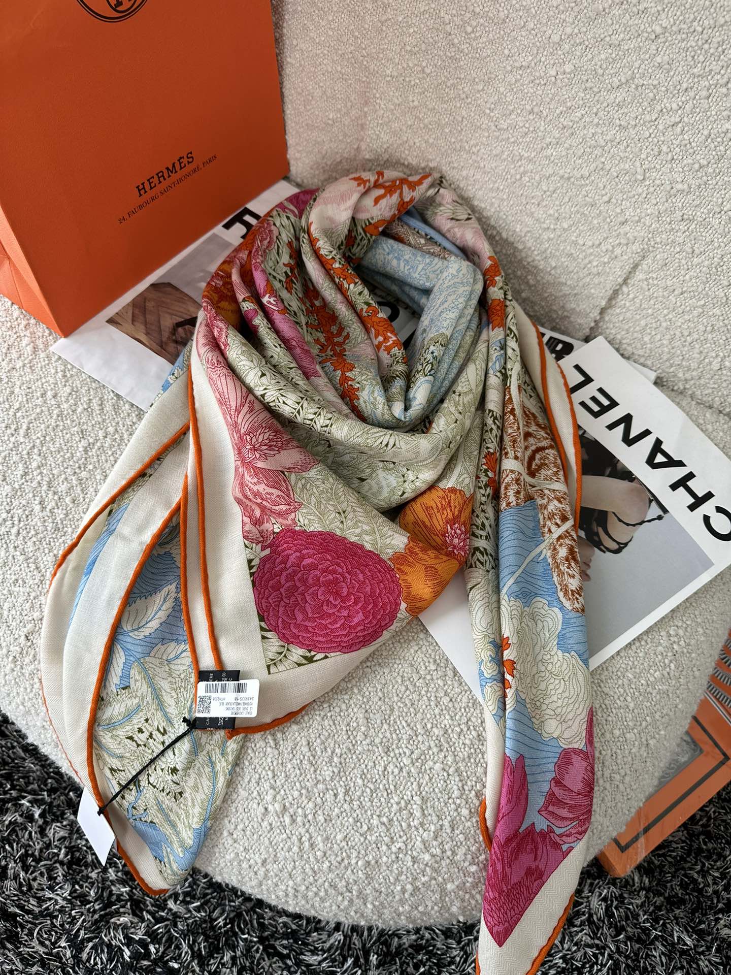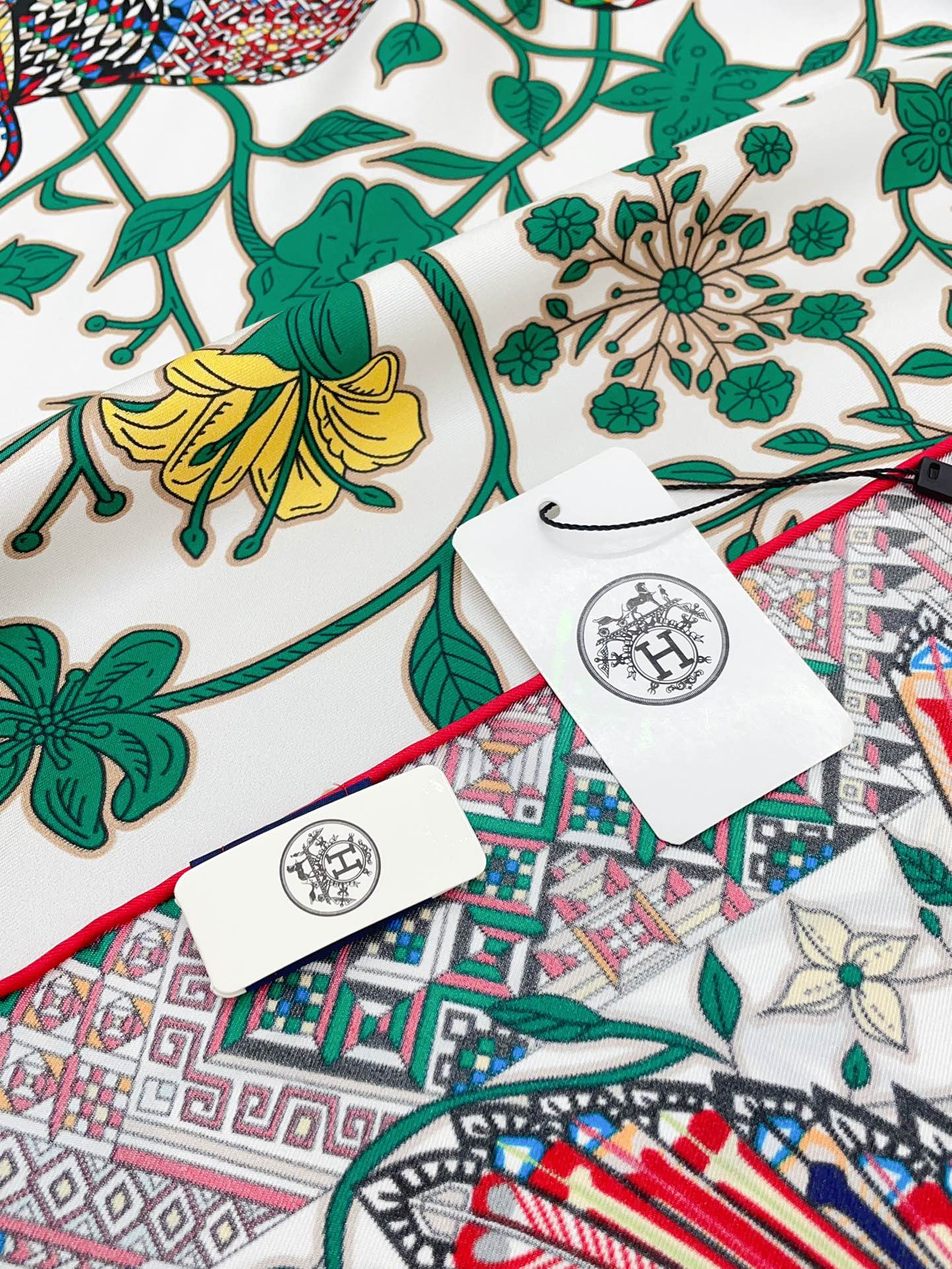 Retourala Nature Hermes Scarf 140 CM White Pink Colorful Silk