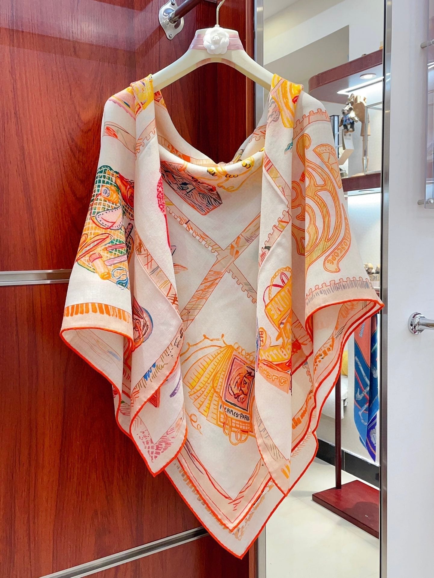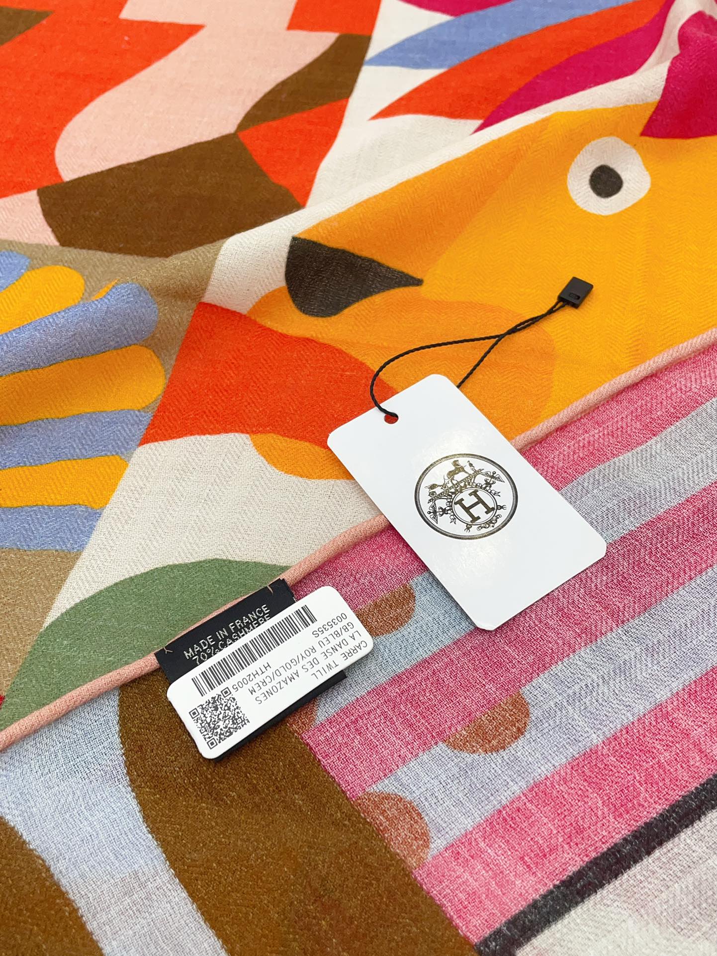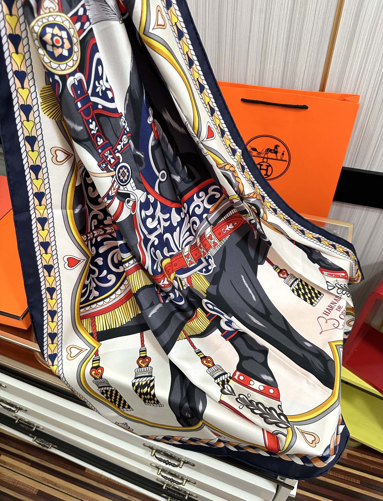 Retourala Nature Hermes Scarf 140 CM White Pink Colorful Silk