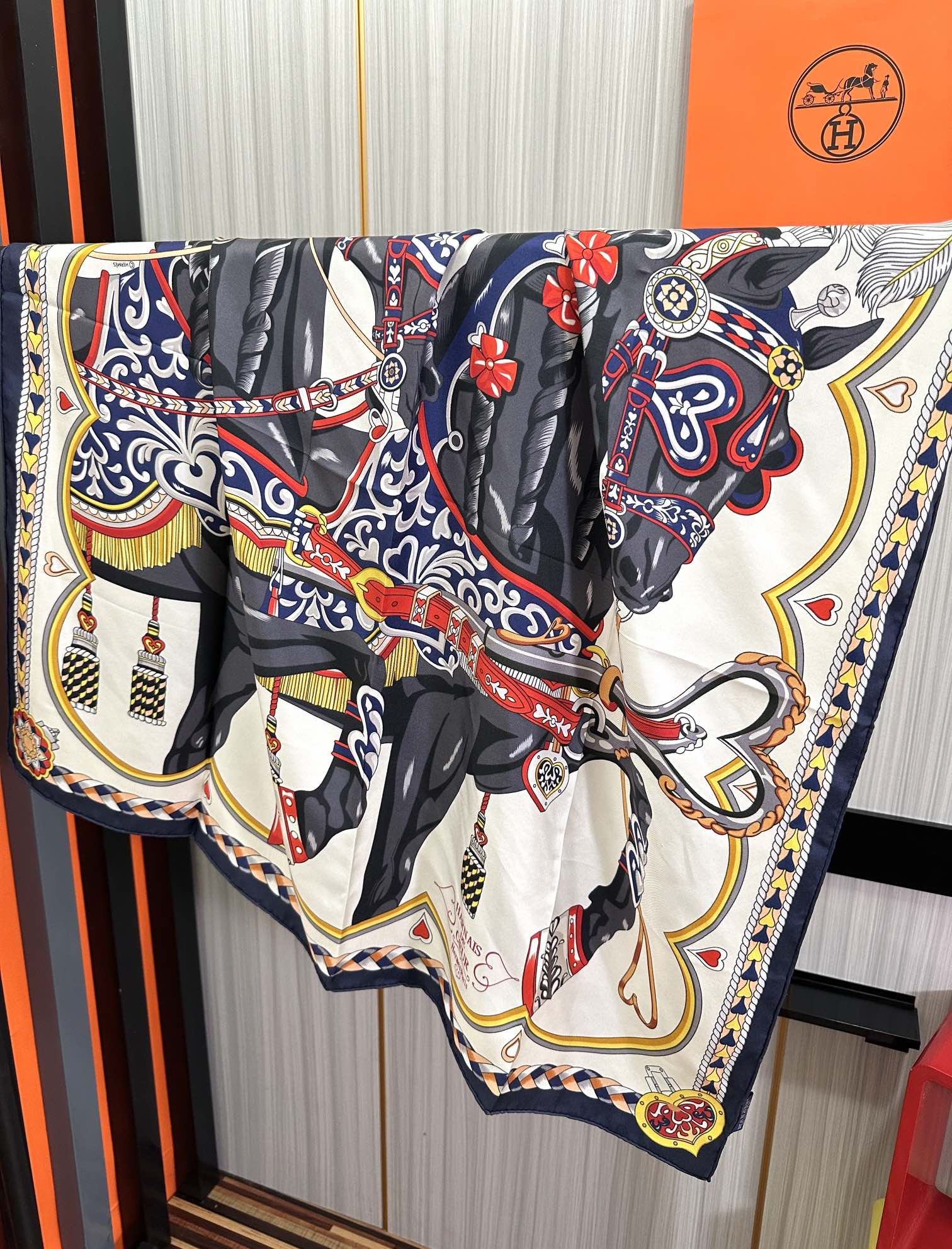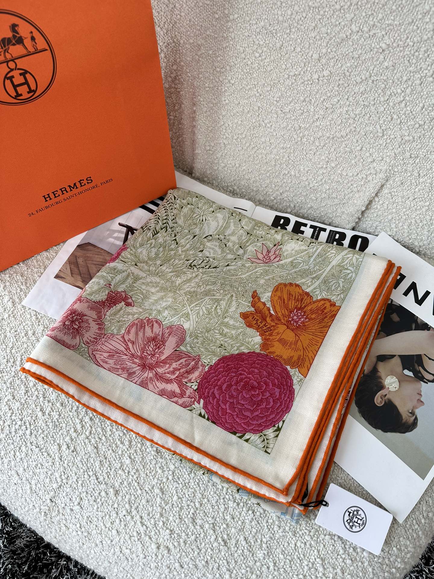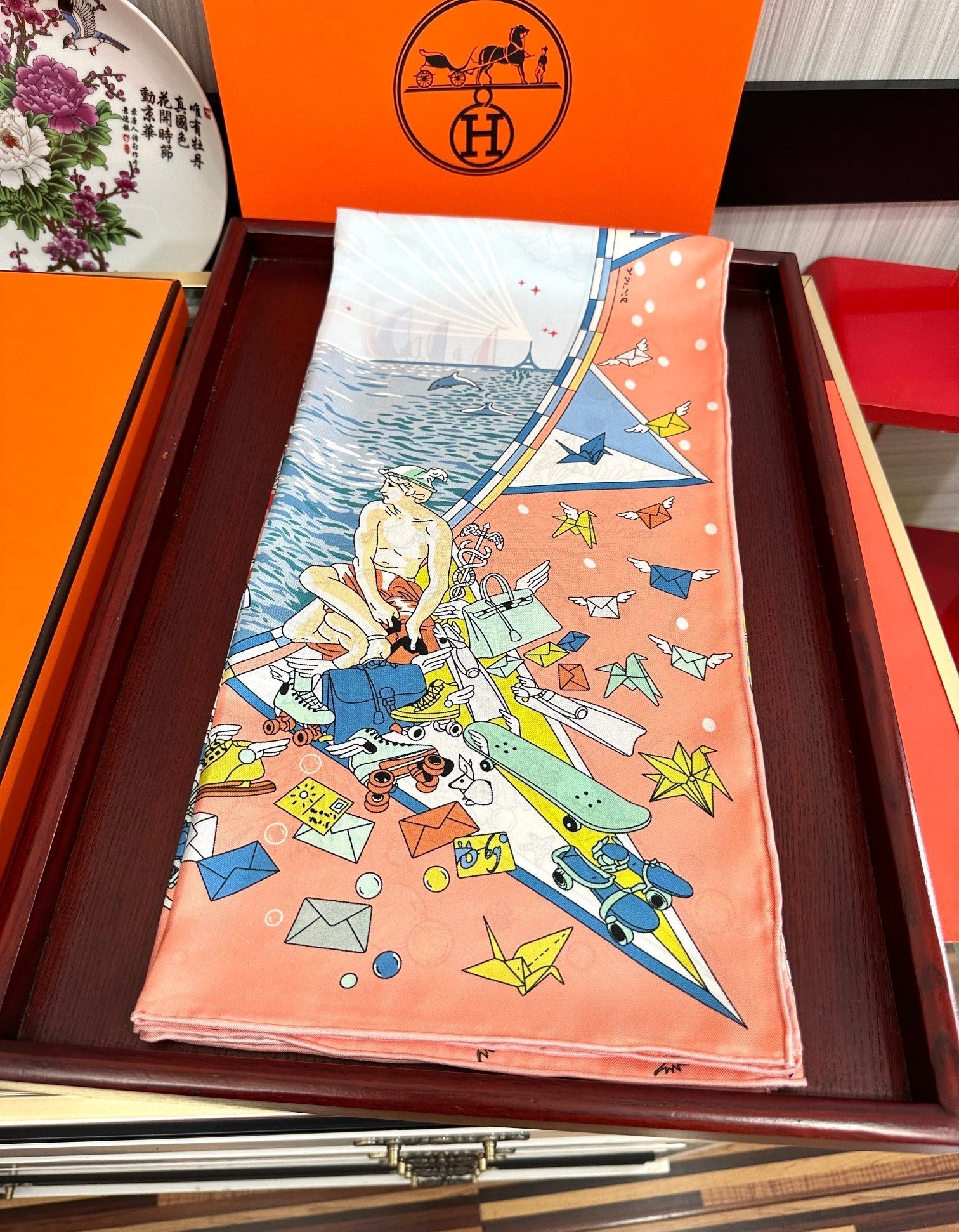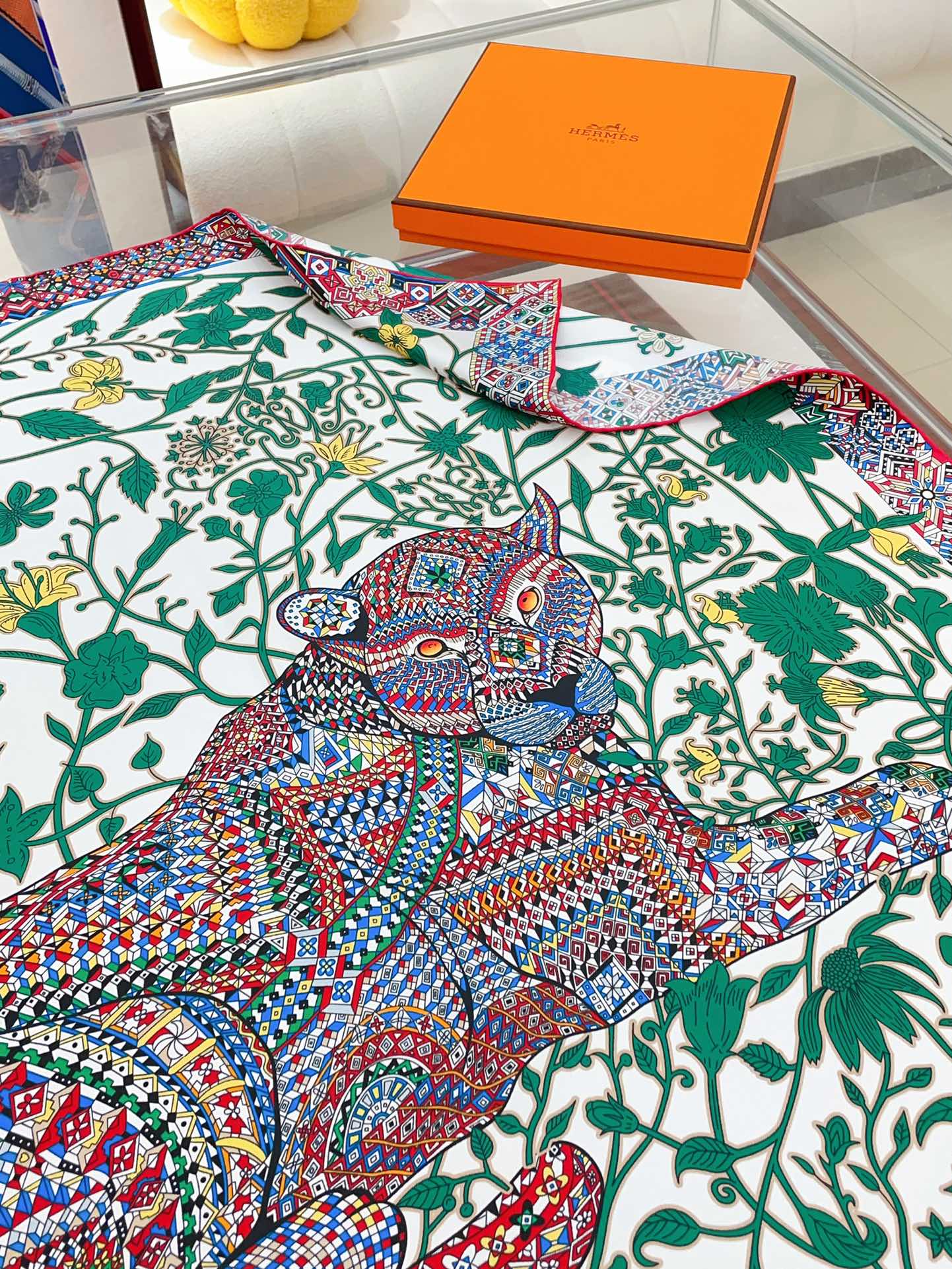 Retourala Nature Hermes Scarf 140 CM White Pink Colorful Silk