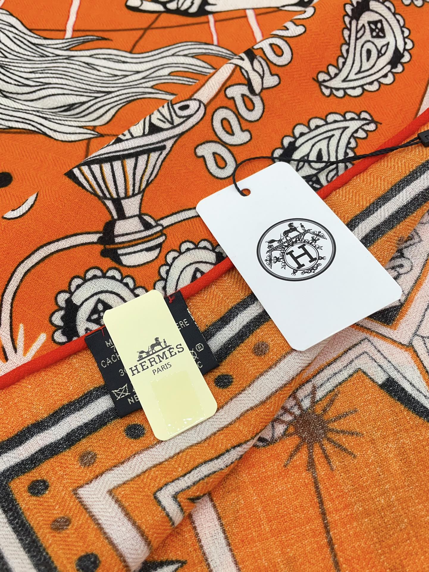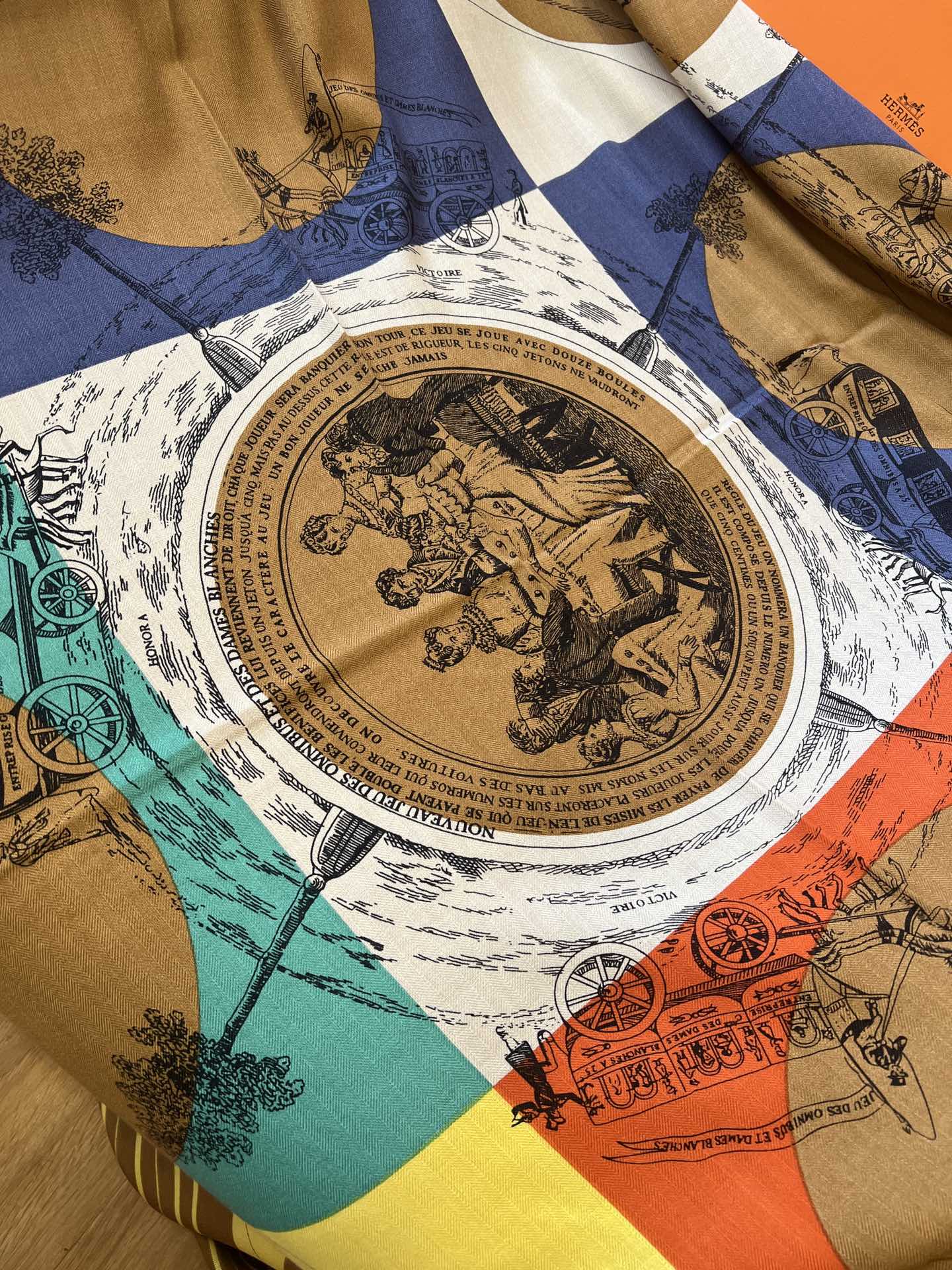 Chevaloscope Scarf 140 CM In Yellow Orange Colorful Cashmere And Silk 373659