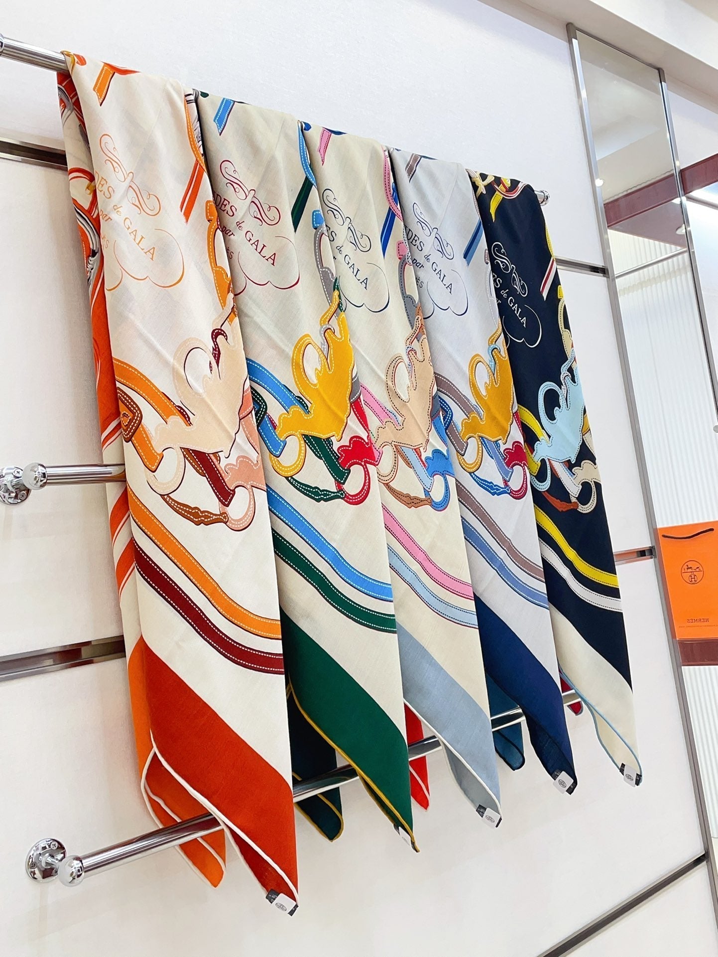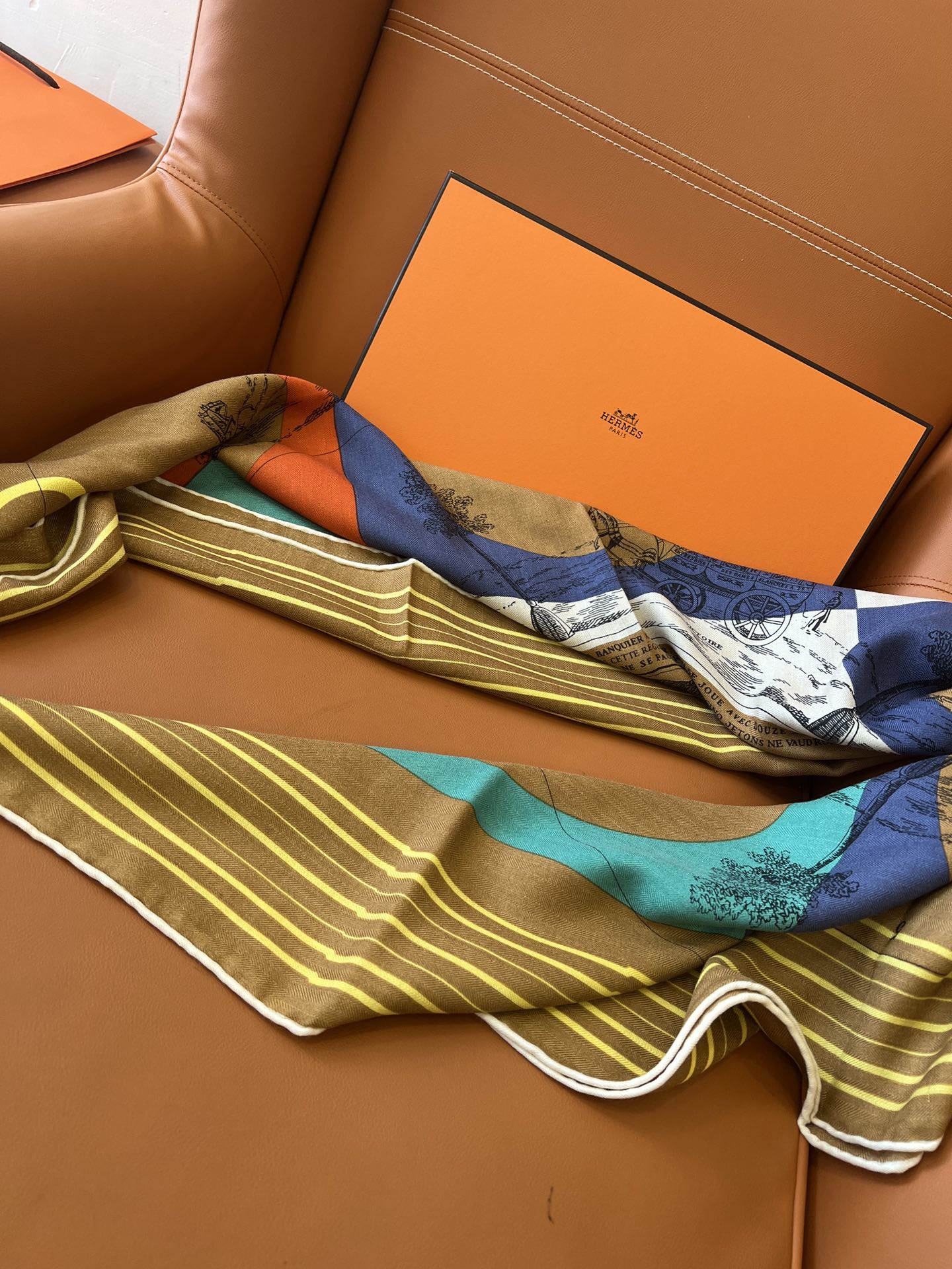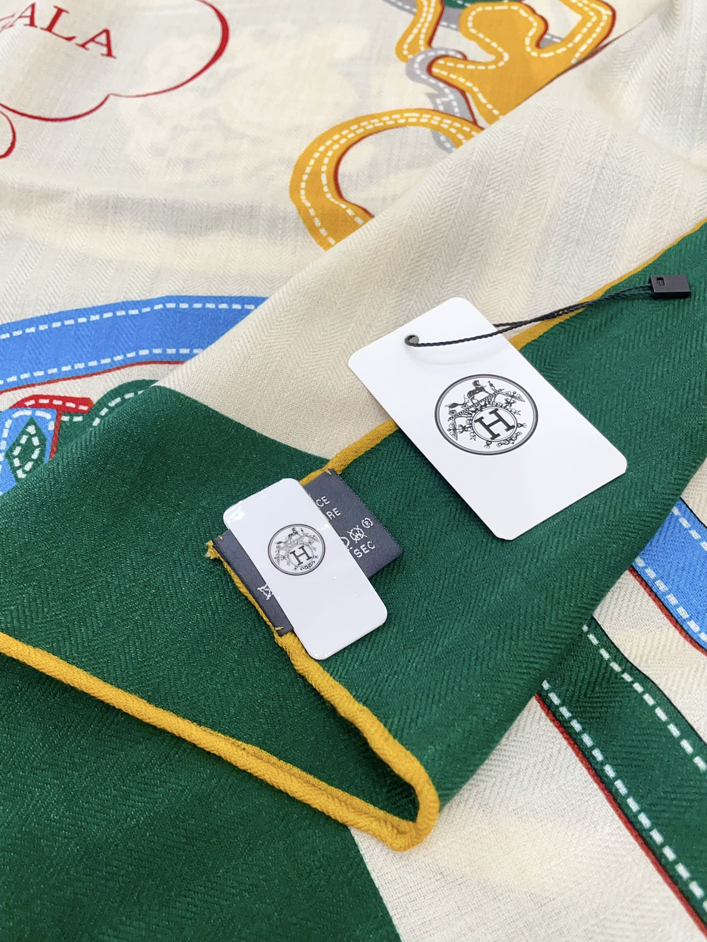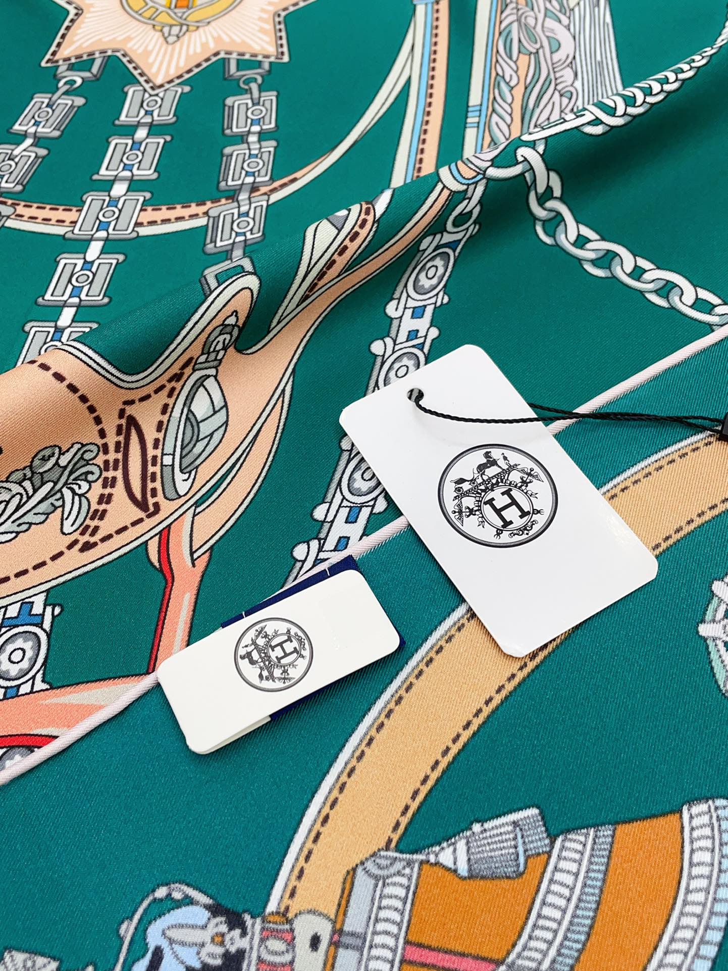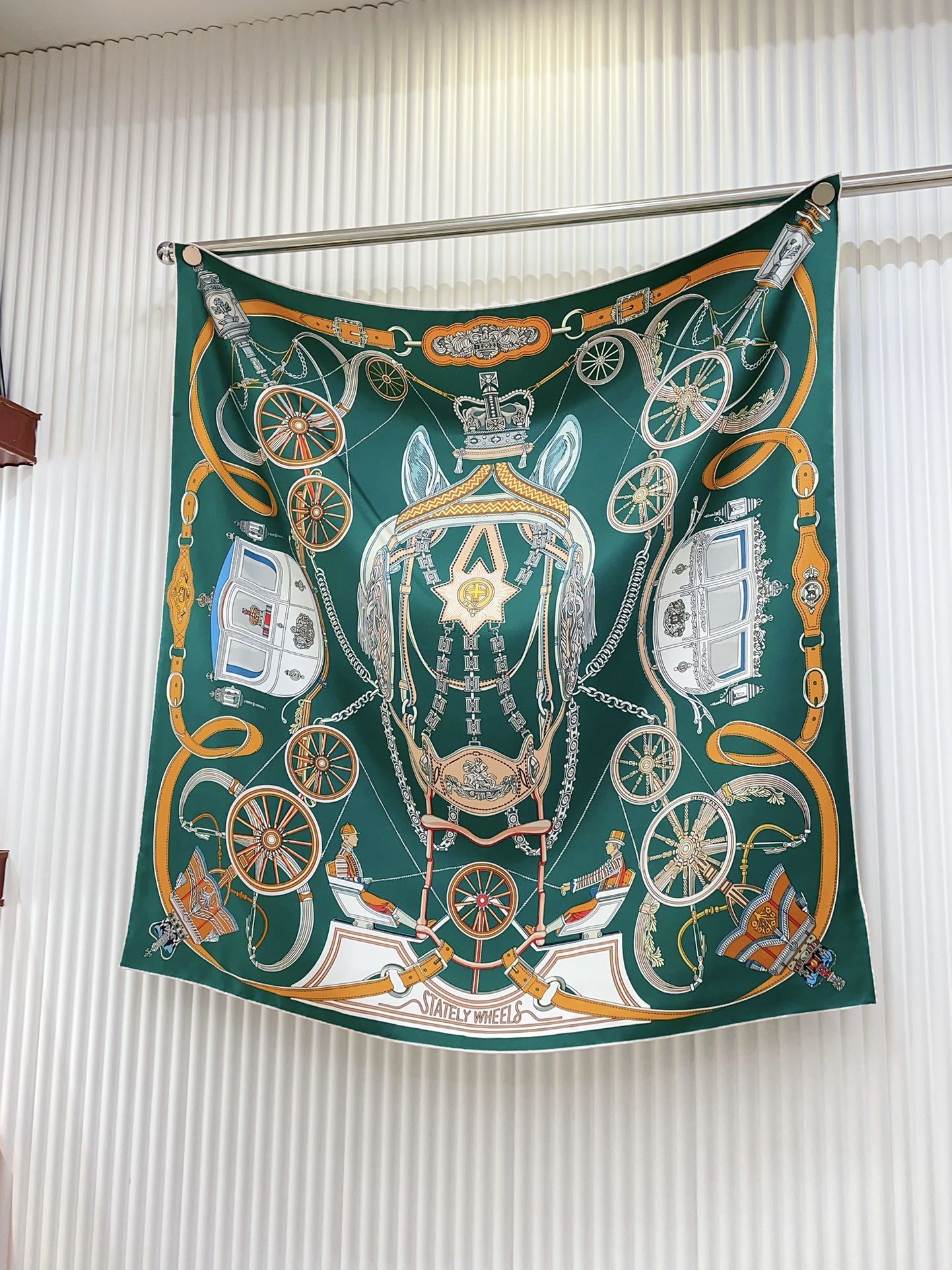 Retourala Nature Hermes Scarf 140 CM Green Gray Colorful Silk