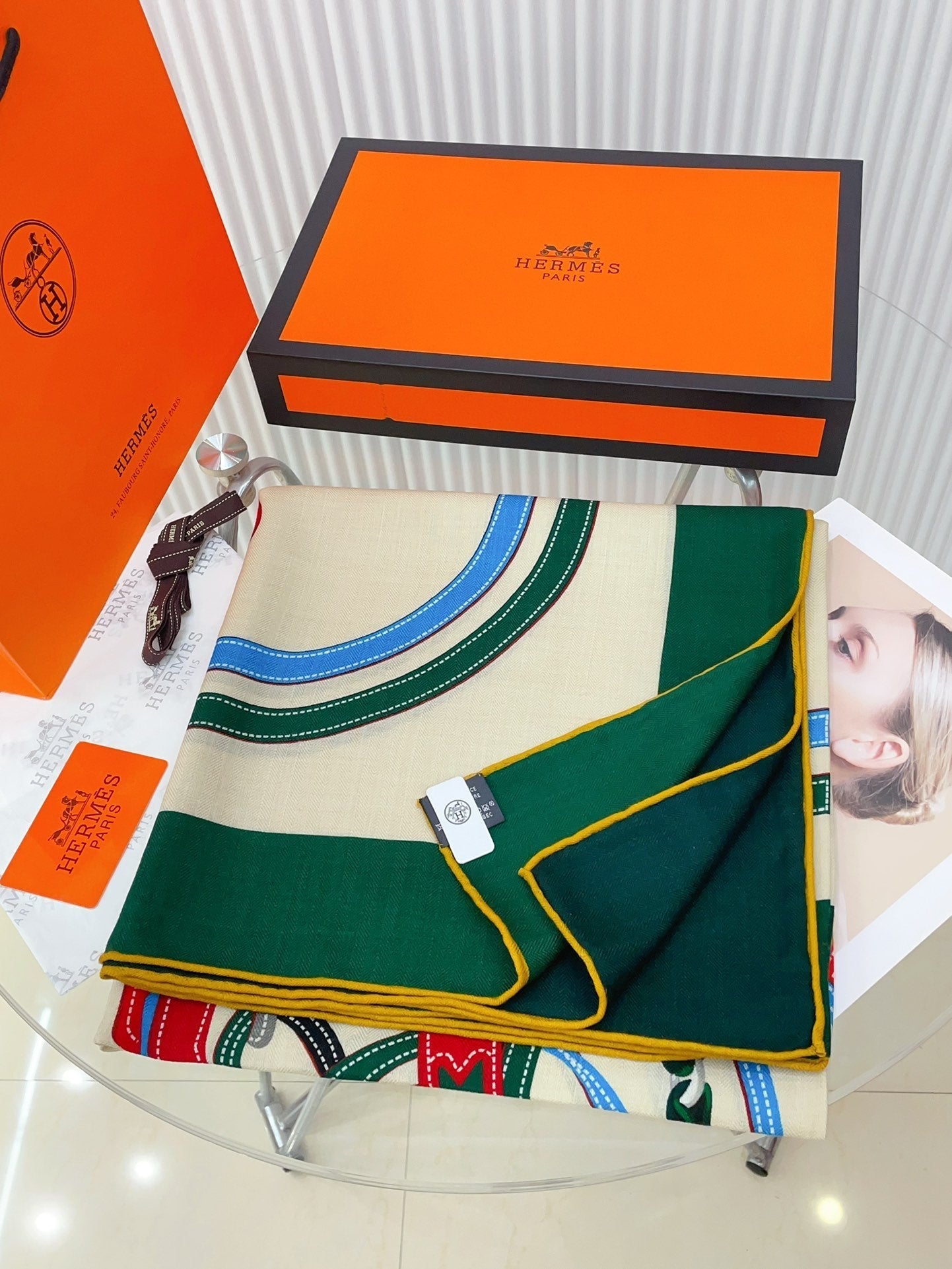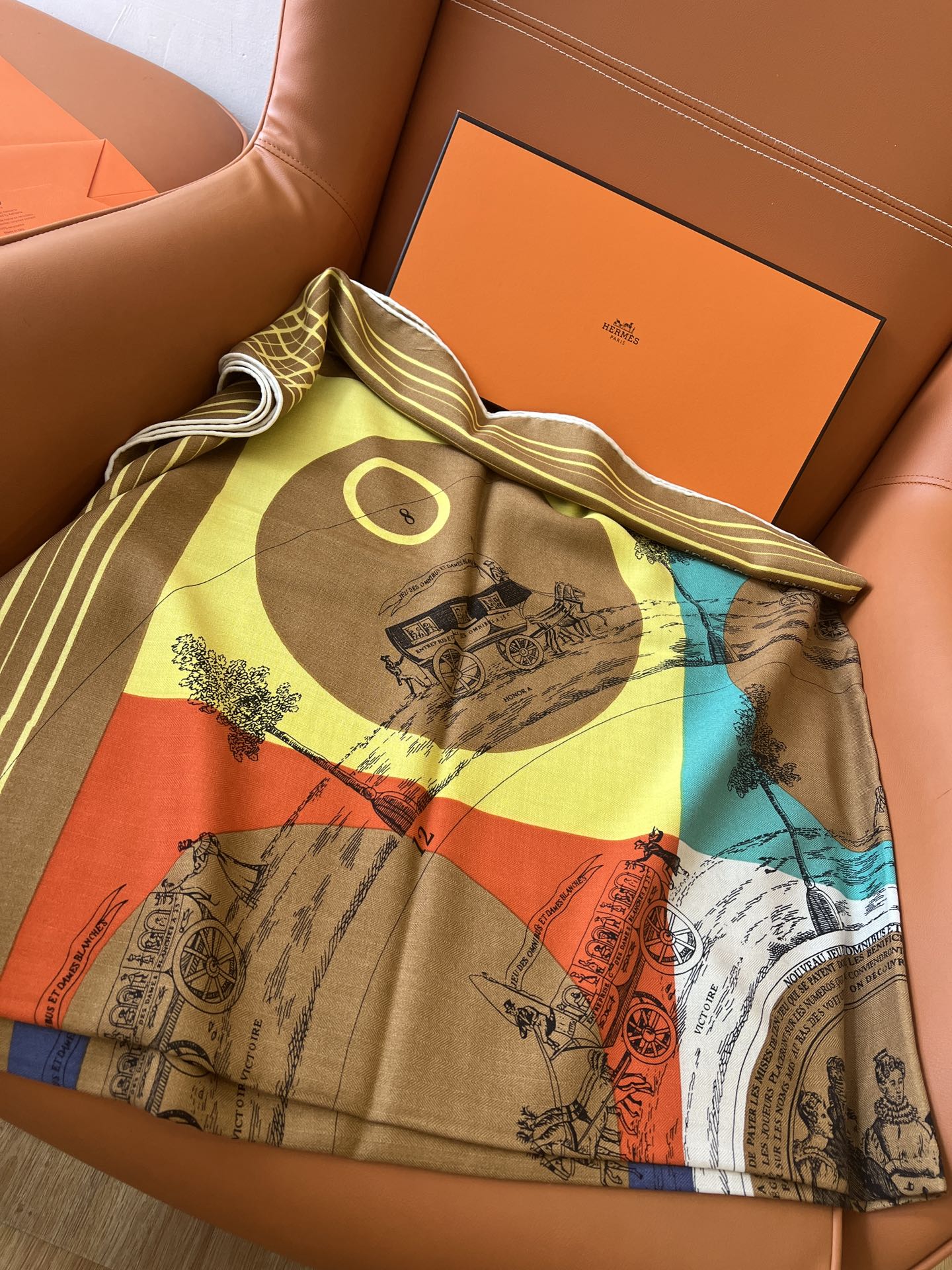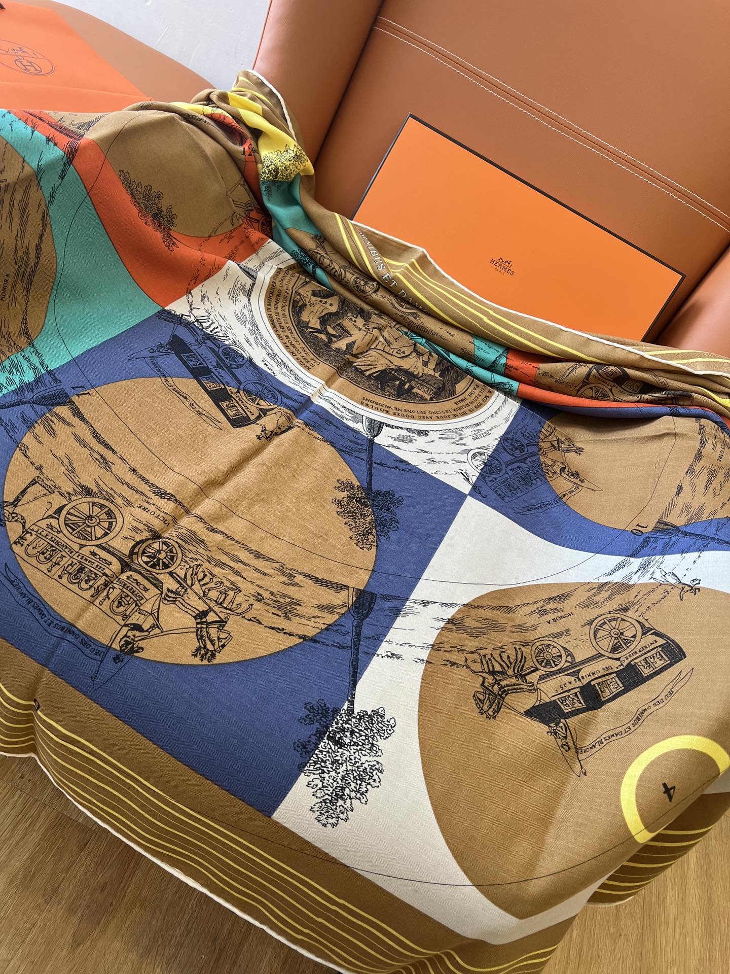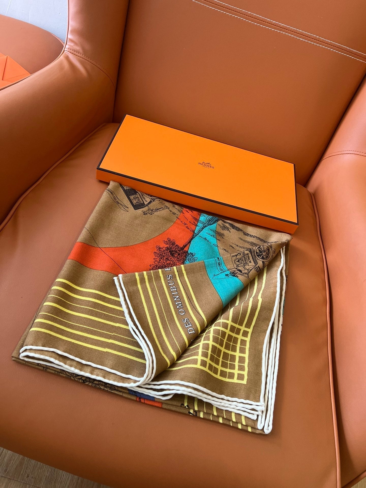Retourala Nature Hermes Scarf 140 CM Green Gray Colorful Silk