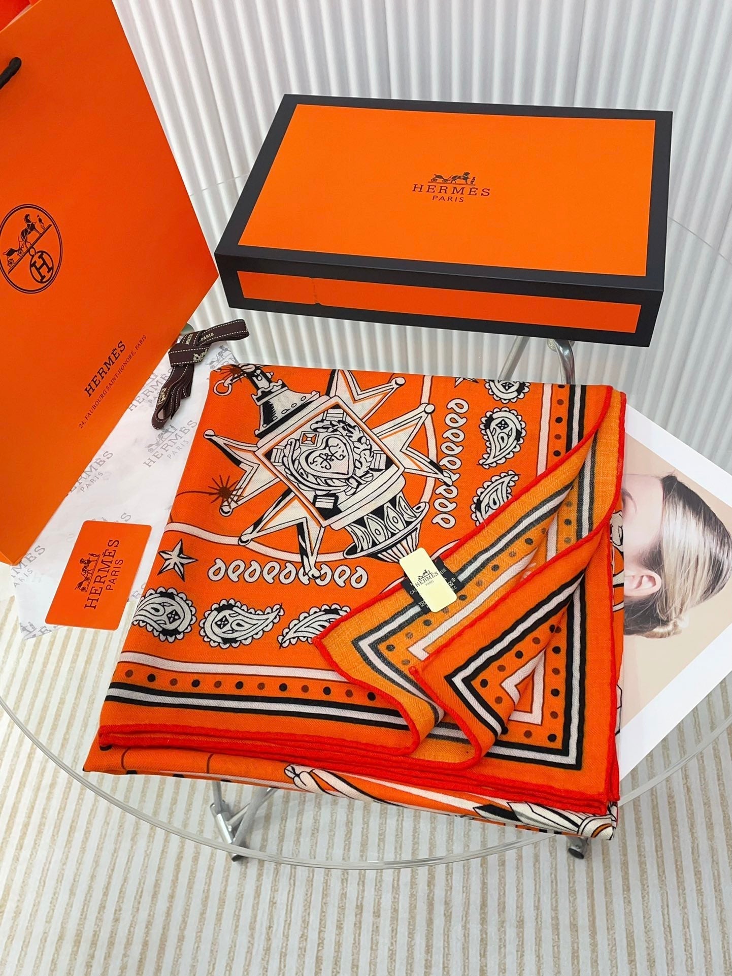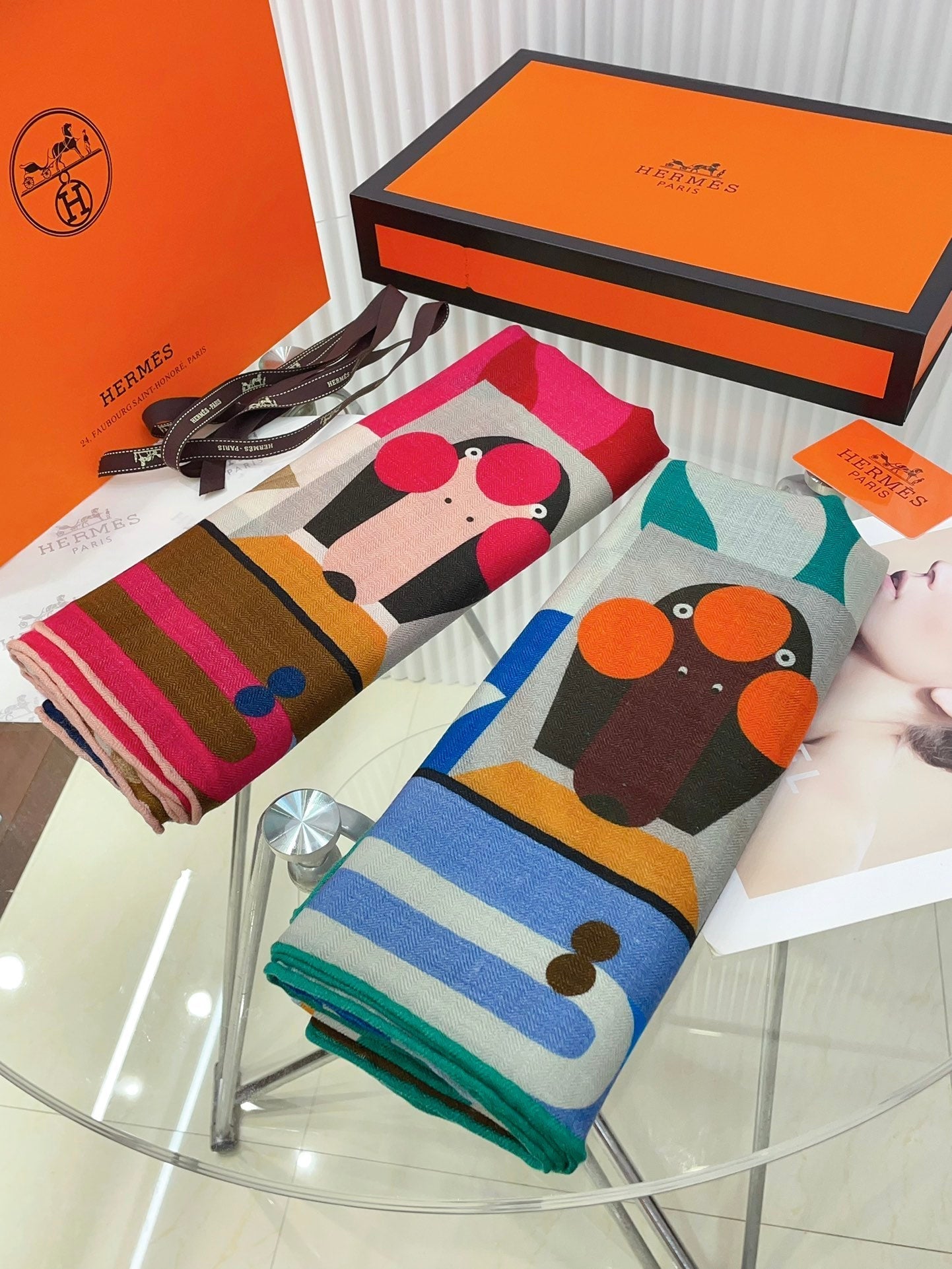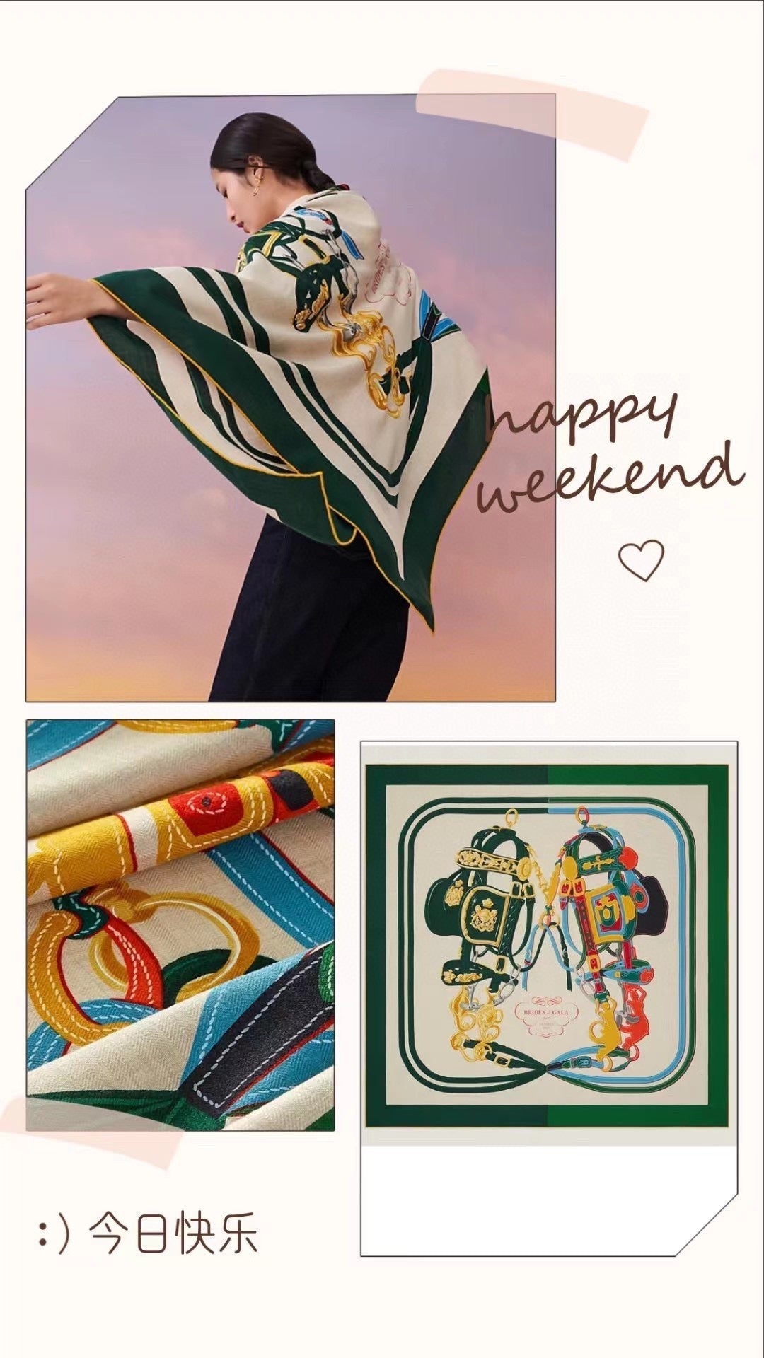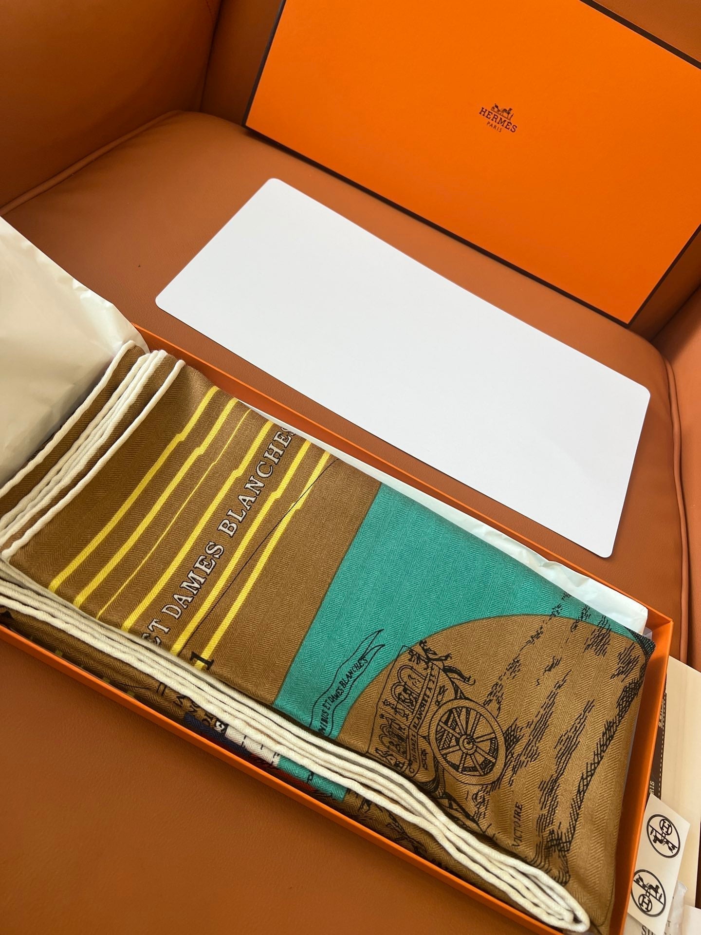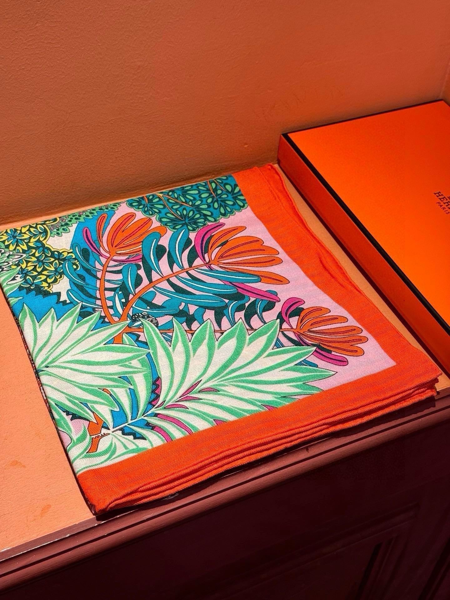 Retourala Nature Hermes Scarf 140 CM Green Gray Colorful Silk