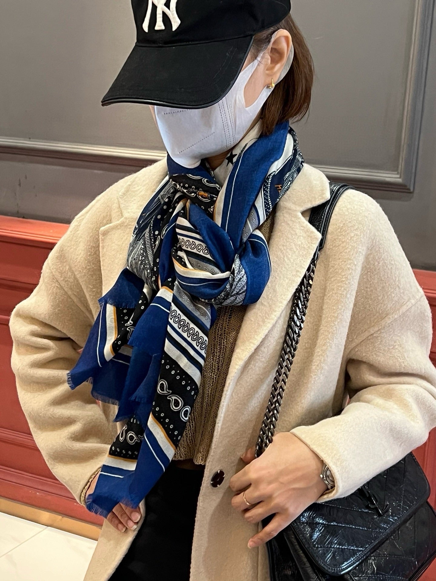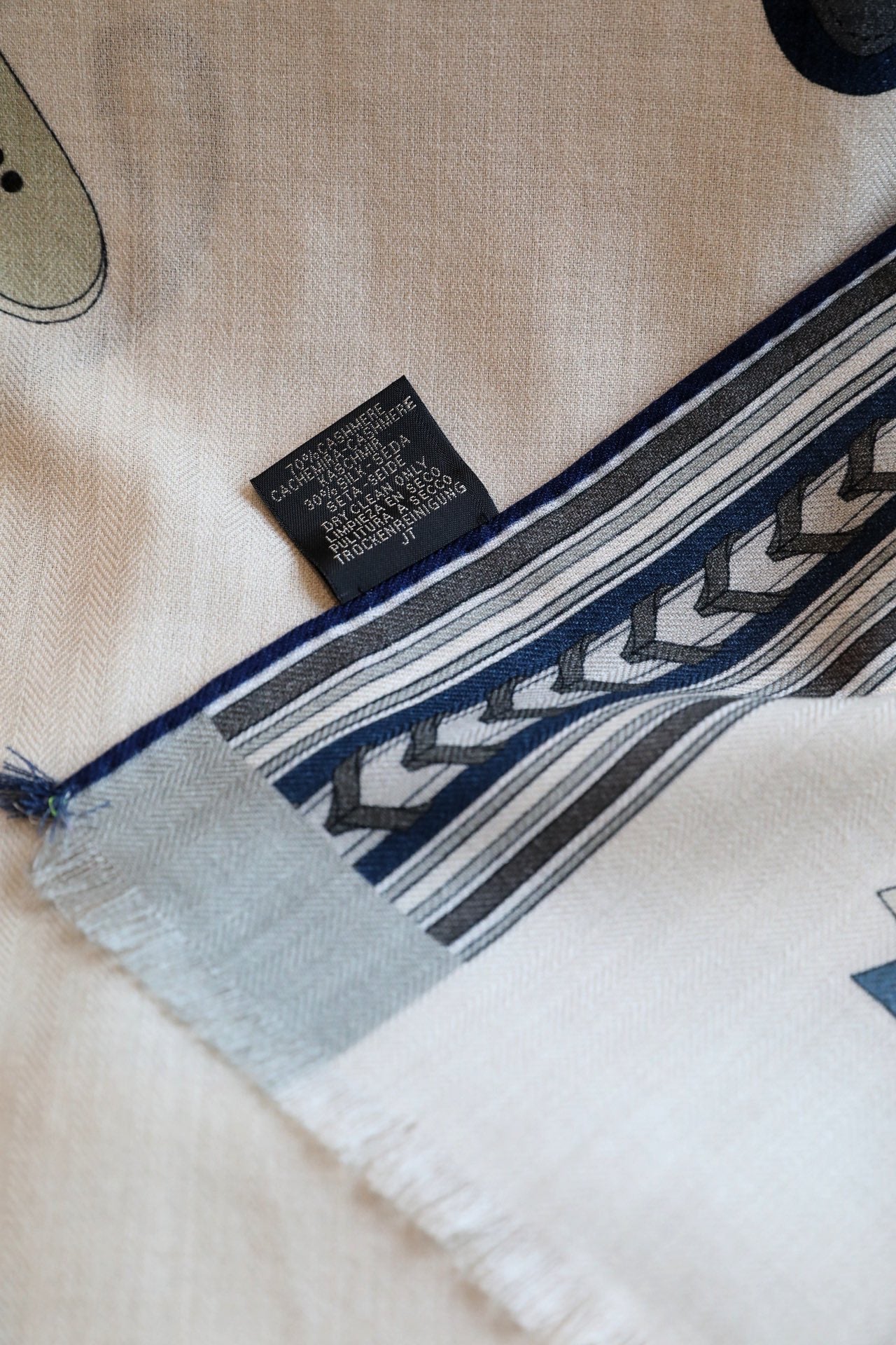 Geometric Scarf 151 CM IN Beige White Cashmere