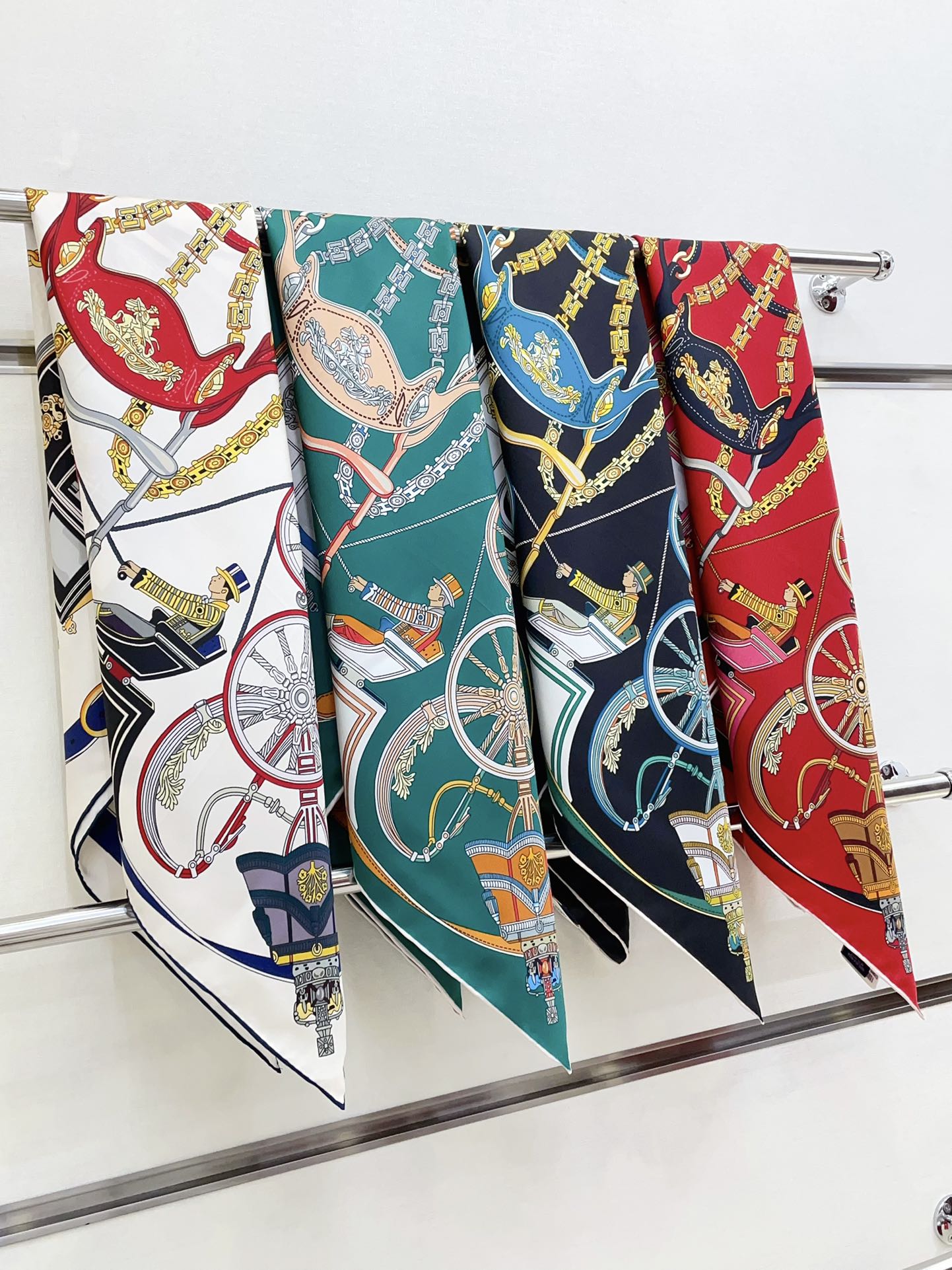 Stately Wheels Scarf 90 CM Dark Green Colorful Silk Twill 312875