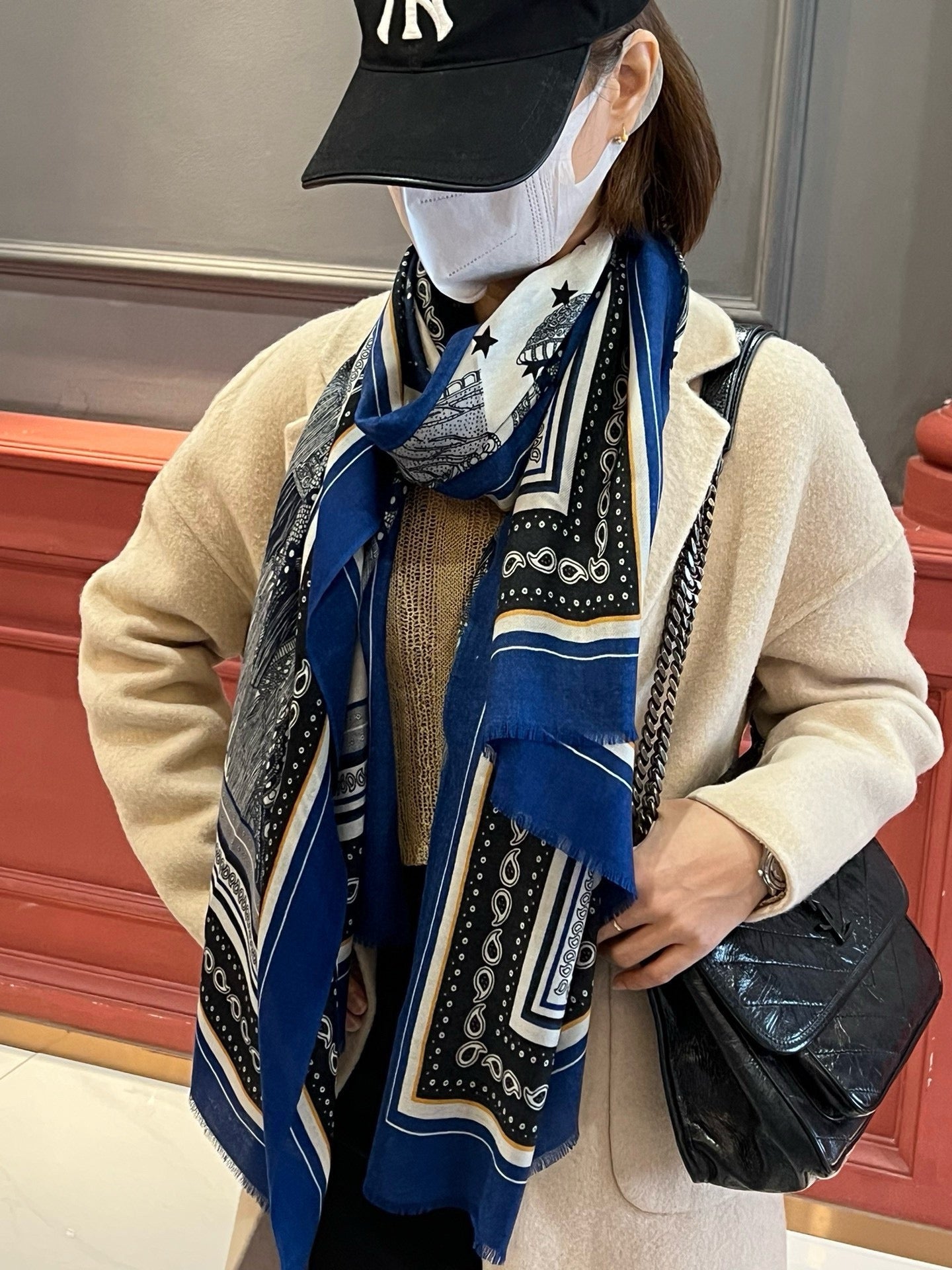 Selle De Dignitaire Bandana Shawl 200 CM In Blue Colorful Cashmere 265334