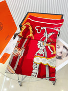 Brides Et Destin Scarf 140 CM In Red Colorful Cashmere Silk 375372