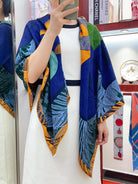 Cavalier en Formes shawl 140 CM In Dark Blue Colorful Cashmere And Silk 331715