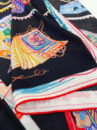 Chevaloscope Scarf 140 CM In Black Colorful Cashmere And Silk 373661