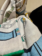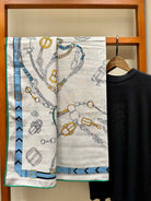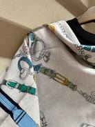 Chevaux Dechaines Shawl 135 CM IN Light Blue Colorful Cashmere Silk 373686