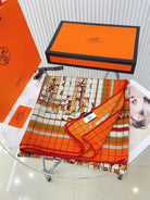 Coaching Deja-Vu Shawl 140 CM Orange Colorful Cashmere And Silk 398263