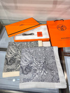 Faubourg Tropical Scarf 135 CM Grey White Cashmere And Silk