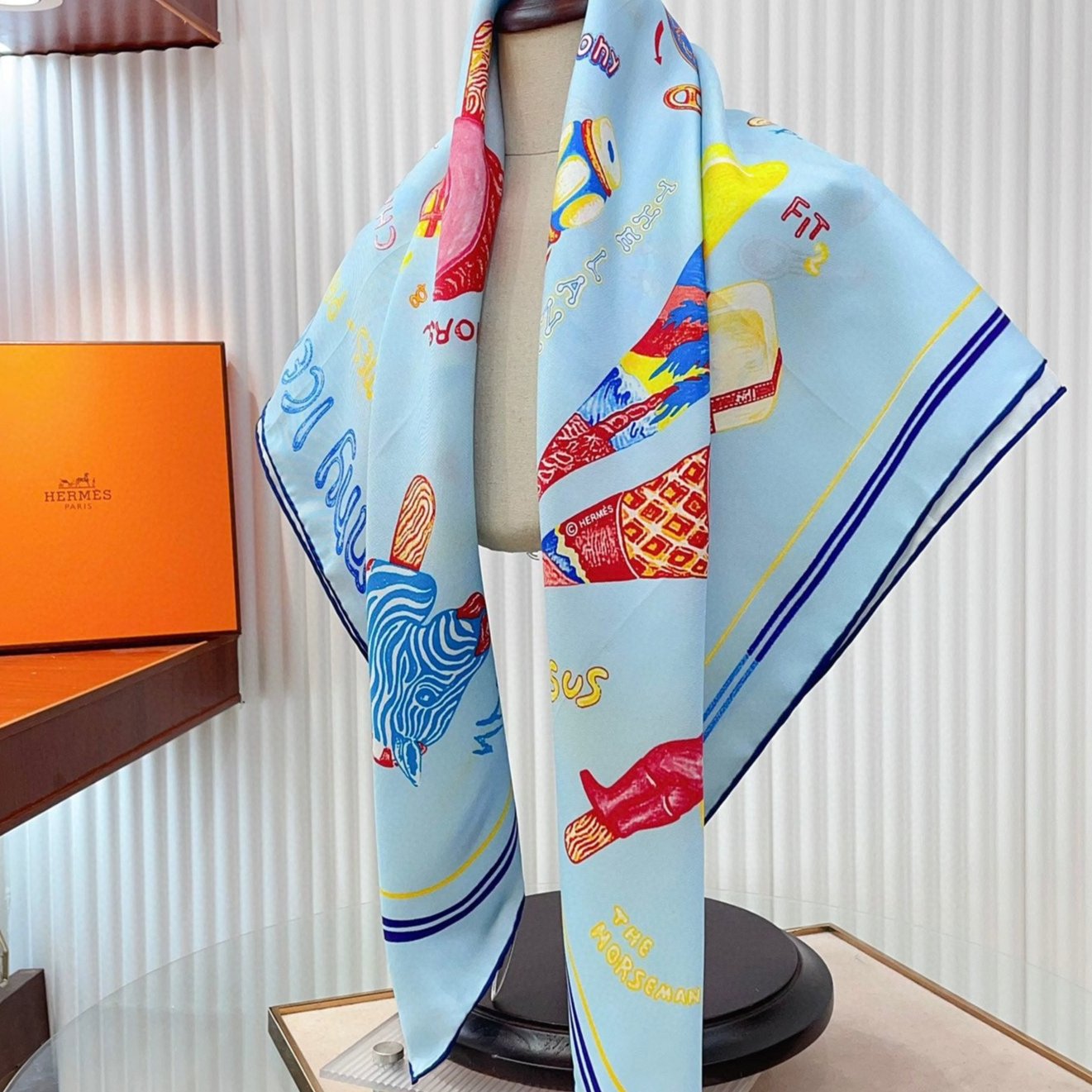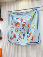 Funny Ice Cream Scarf 90 CM In Light Blue Colorful Silk Twill 300439