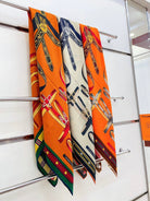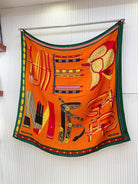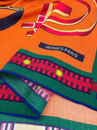 HM Lettres Equestre Scarf 140 CM In Orange Green Colorful Cashmere And Silk 359398