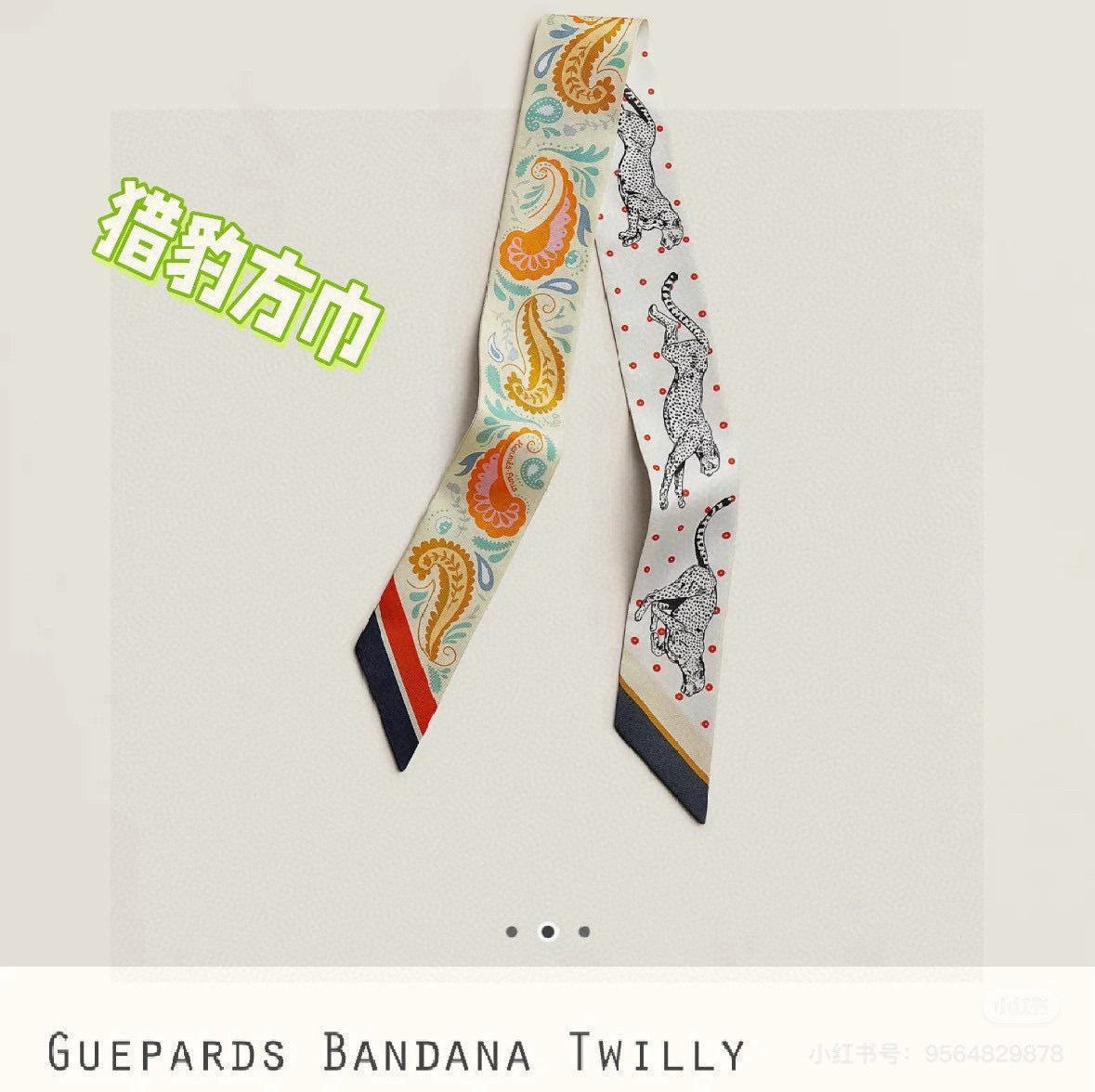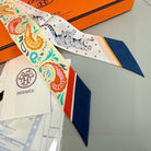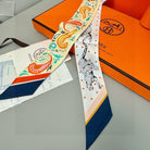 HM Twilly Mini Scarf 86CM Beige Blue Mulberry Silk 965635
