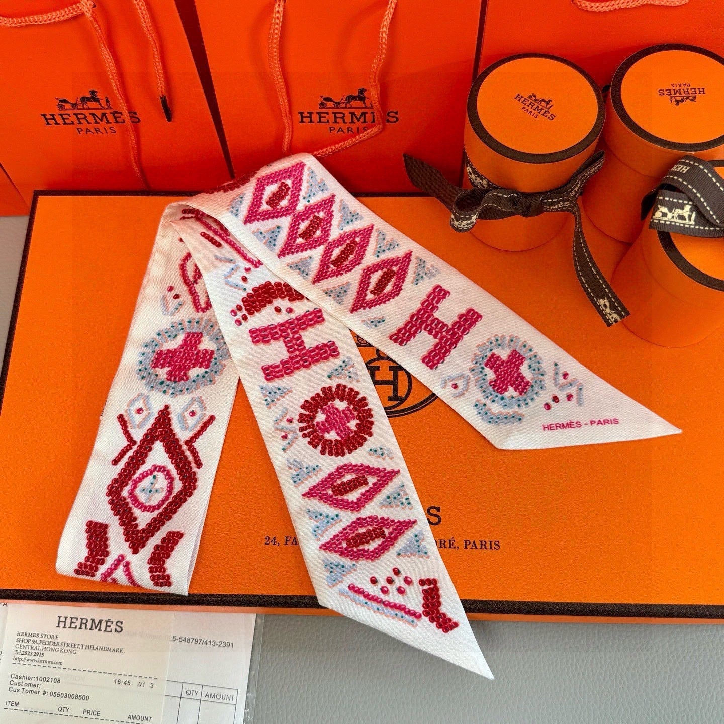 HM Twilly Mini Scarf 86CM Pink Mulberry Silk 969056