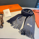 KNIT SCARF 180 IN NAVY BLUE MIX GREY CASHMERE