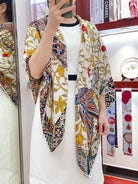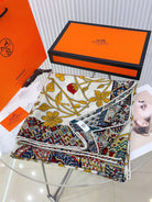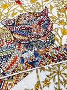 Le Jaguar Et Le Colibri Shawl 135 CM Yellow Colorful Cashmere And Silk 357903
