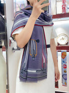 Les Sangles En Finesse Rectangle Scarf 180 CM In Grey Purple Coloful Cashmere And Silk 373655