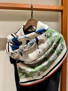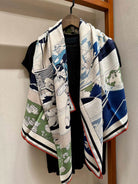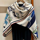 Locomotion Shawl 140 CM In Dark Blue Colorful Cashmere And Silk 384146