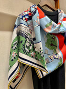 Locomotion Shawl 140 CM In Light Blue Colorful Cashmere And Silk 384147