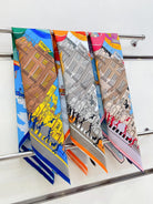 Parade Scarf 90 CM In White Grey Colorful Silk Twill 310306
