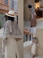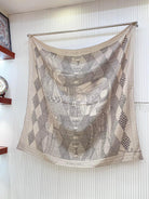 Patchwork Horse Shawl 140 CM In Grey Mix White Cashmere And Silk 350428