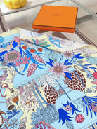 Precious Paradise Scarf 90 CM In Light Blue Colorful Silk Twill 294487