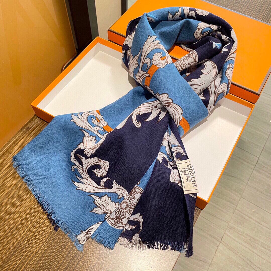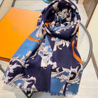 PRINTED SCARF 200 CM IN BLUE MIX COLORFUL CASHMERE 393004