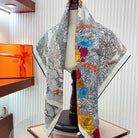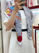 Retour A La Nature Shawl 90 CM In Grey Colorful Silk Twill 198583
