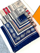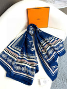 Tatouages Marins Bandana Shawl 135 CM Dark Blue Mix White Red Cashmere And Silk 401090