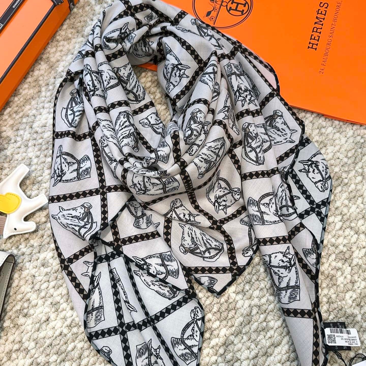Hermes velvet scarf 185 CM Rice Gray Cotton Fabric