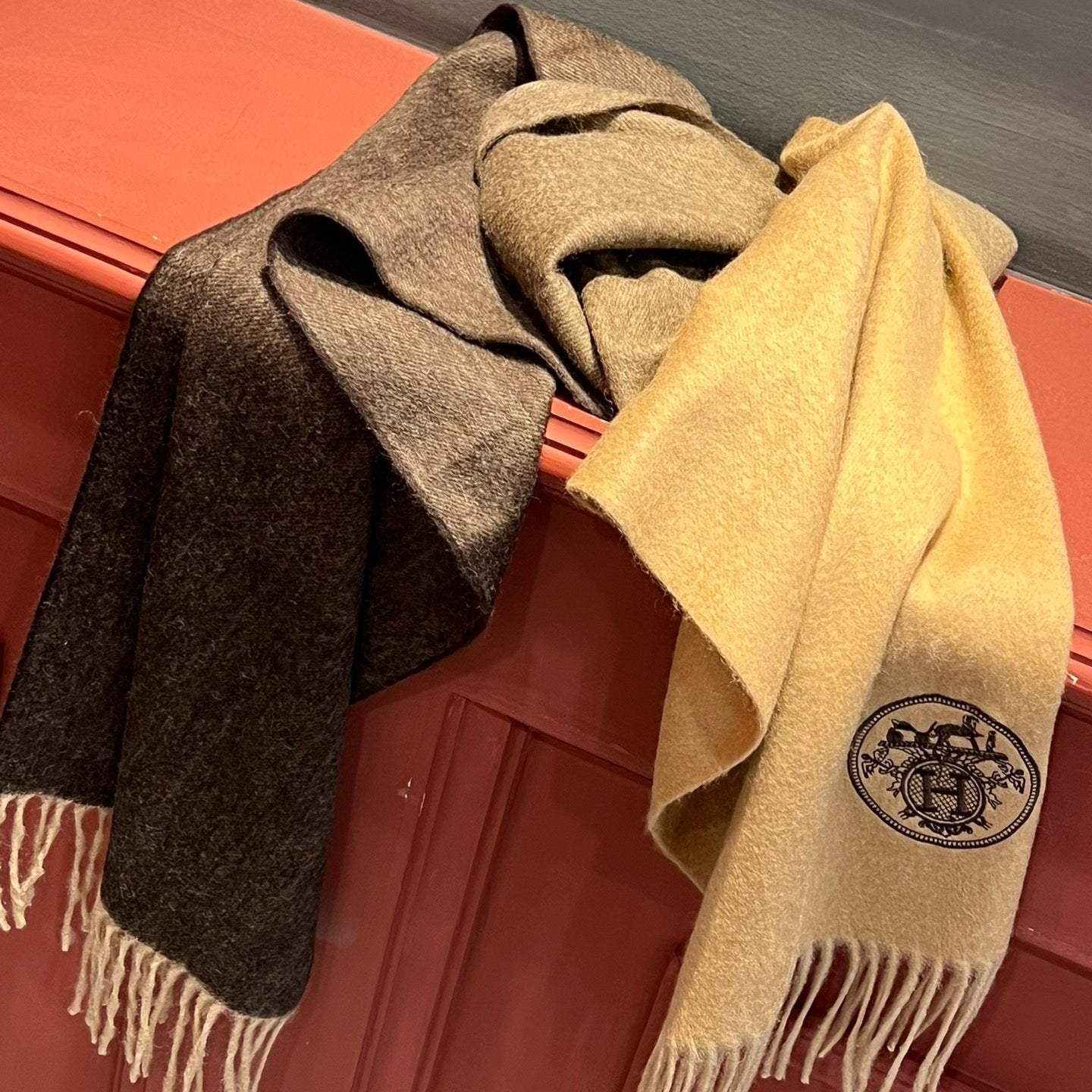 Casaque Entrelacs Equestres Scarf 195 CM Orange Mix Light Brown Cashmere