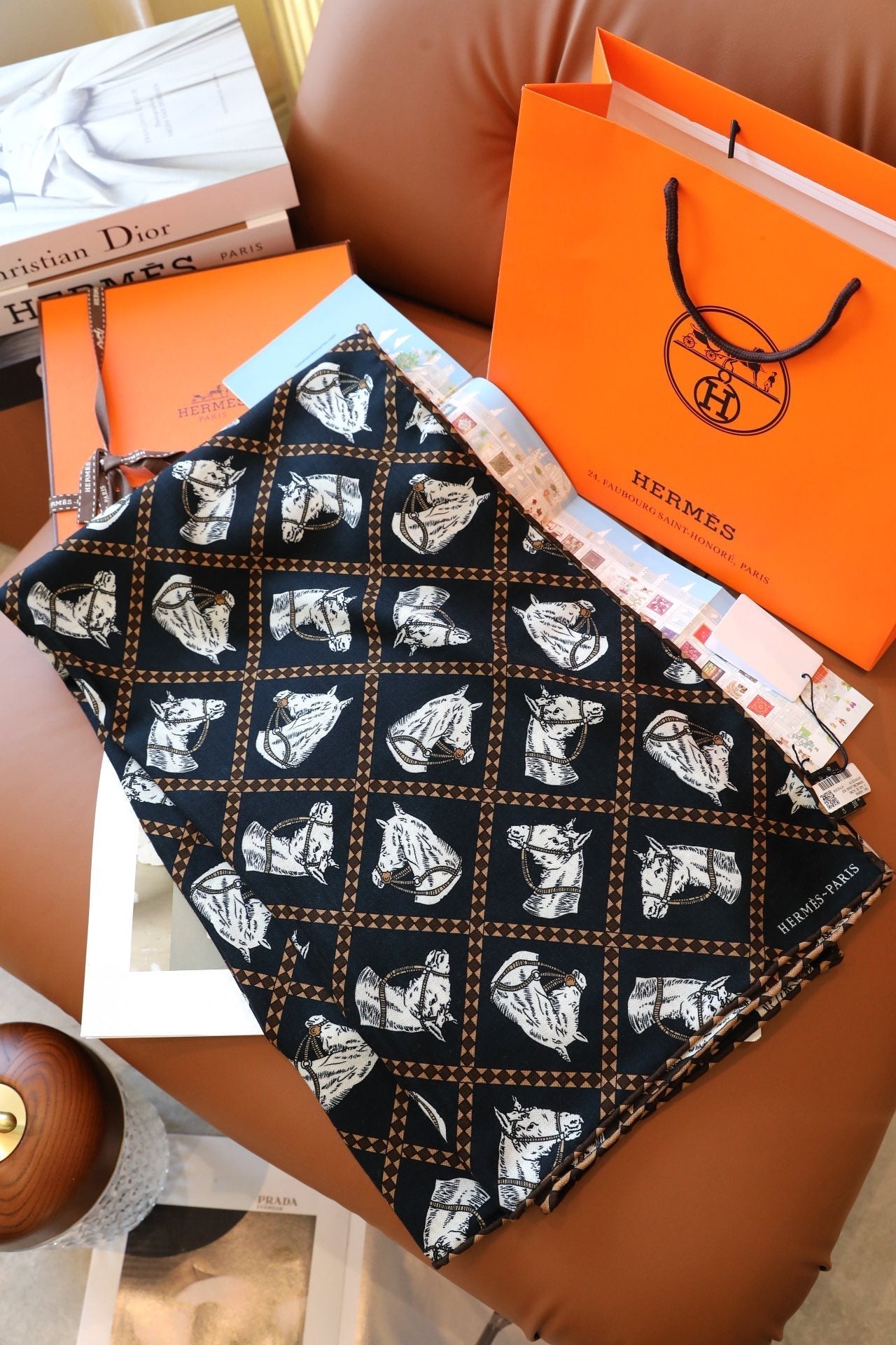 Mystere Au 24 Scarf 90 CM In Dark Blue Colorful Silk Twill 321935