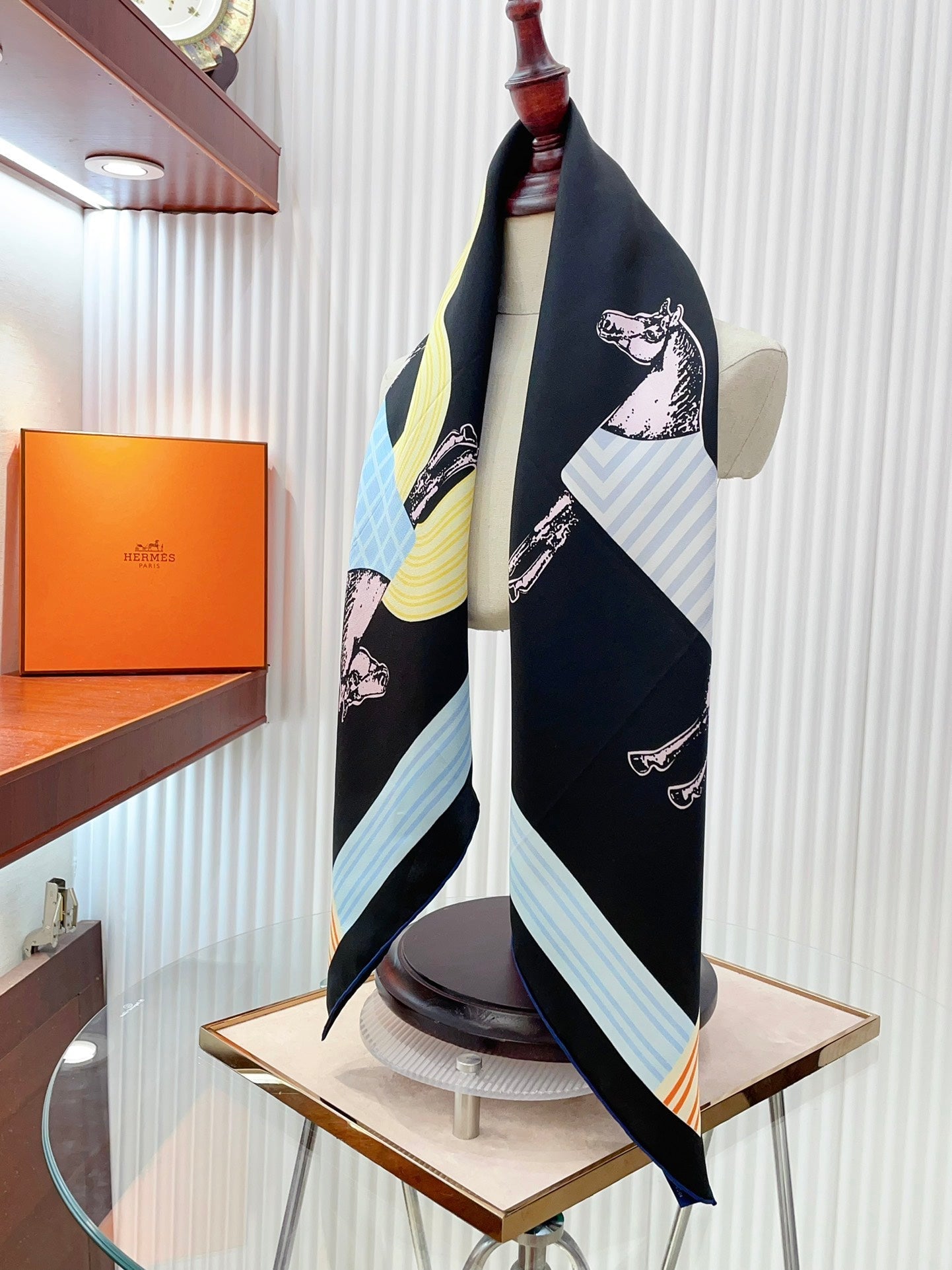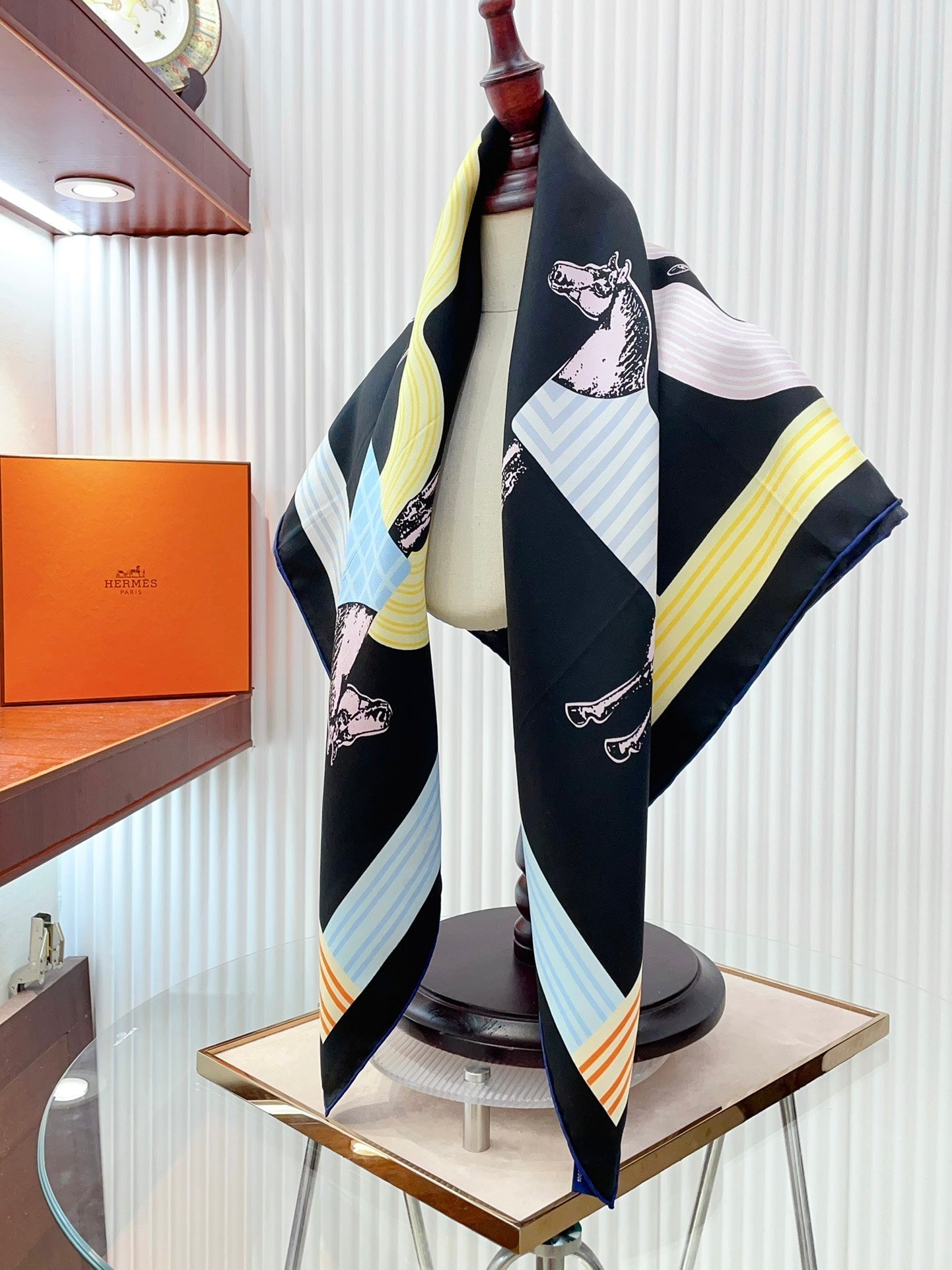 Pique Sellier Shawl 90 CM In Black Colorful Silk Twill 312868