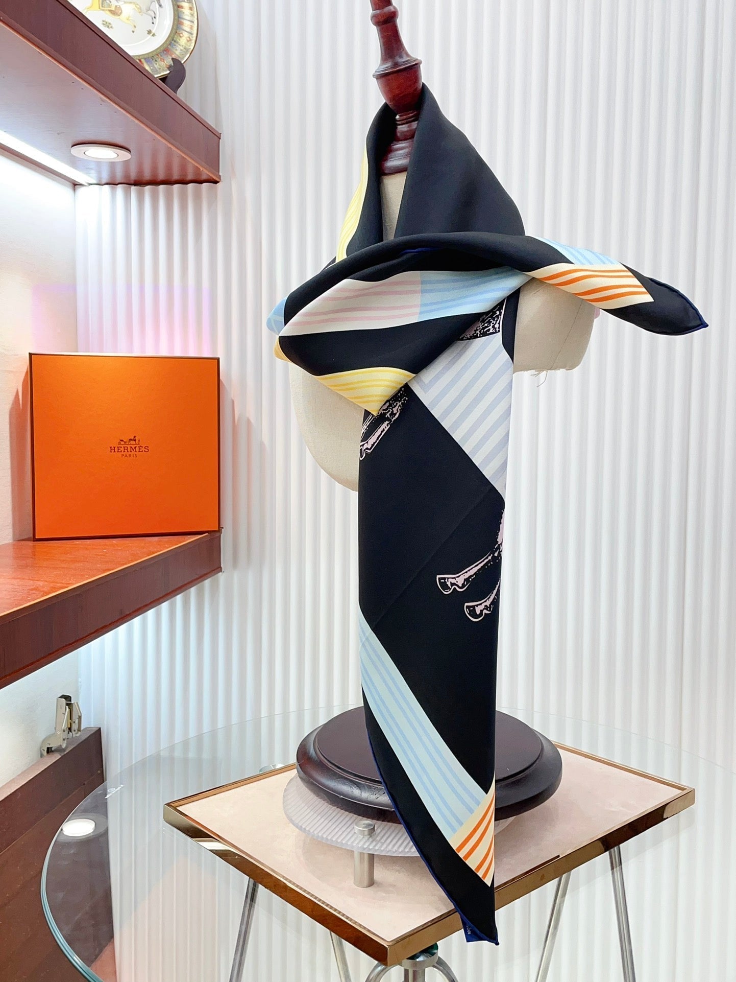 Palonniers scarf 90 CM In Black Colorful Silk Twill 321909