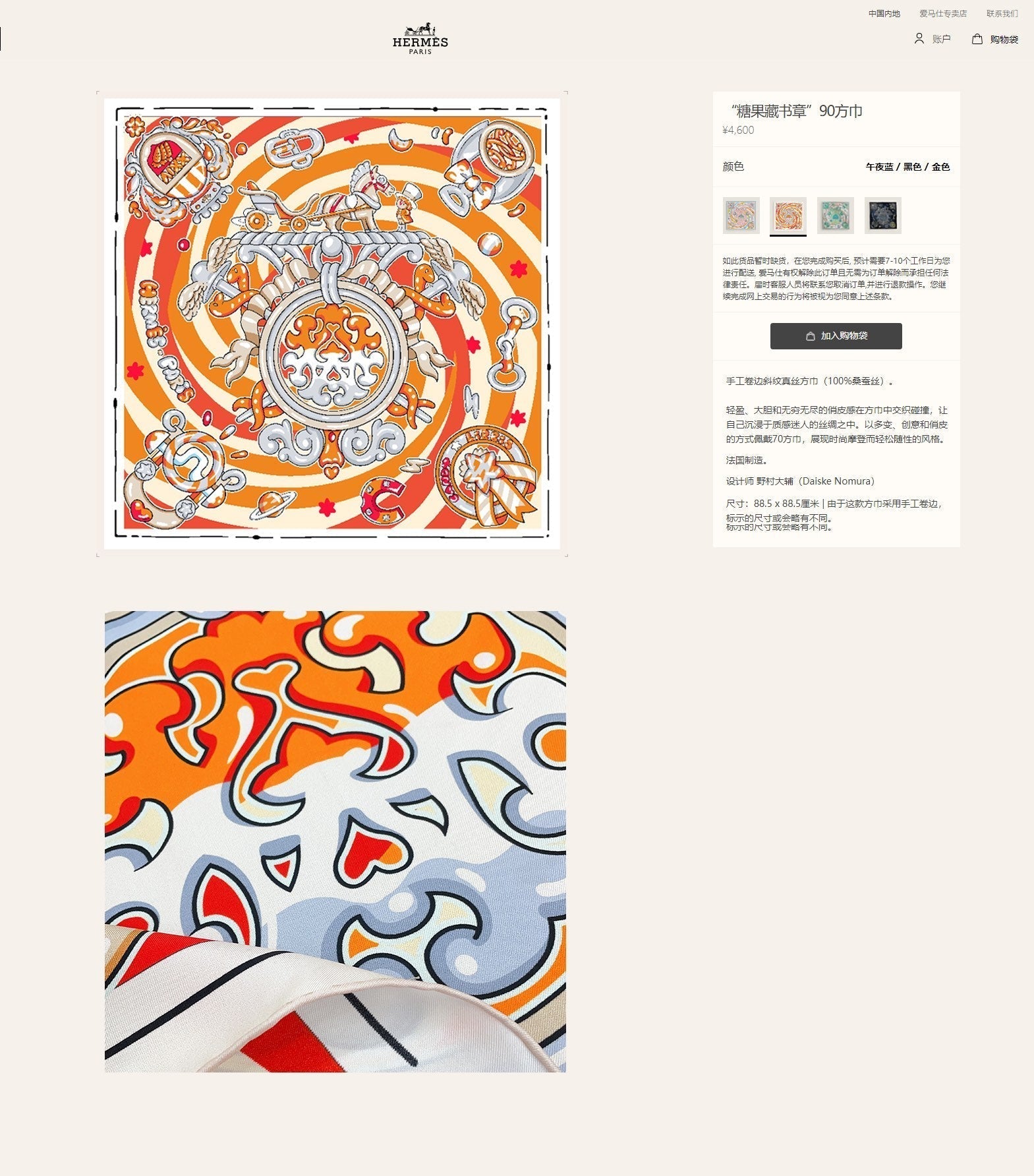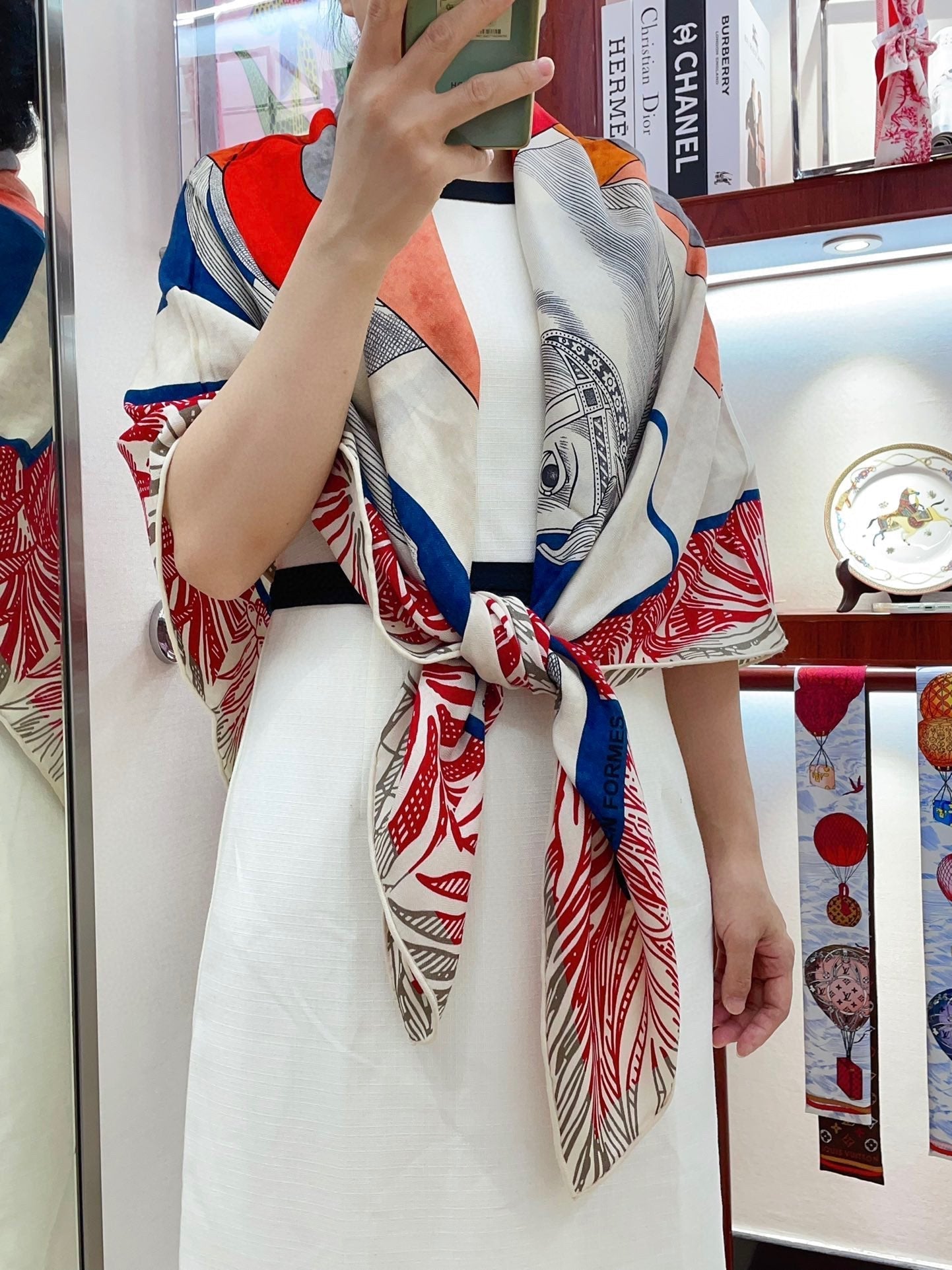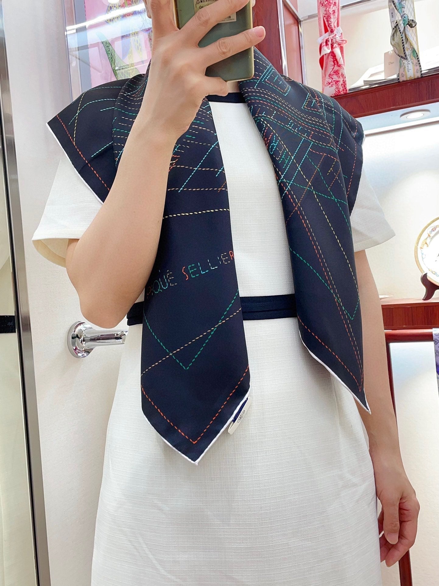 Pique Sellier Shawl 90 CM In Grey White Colorful Silk Twill 312869
