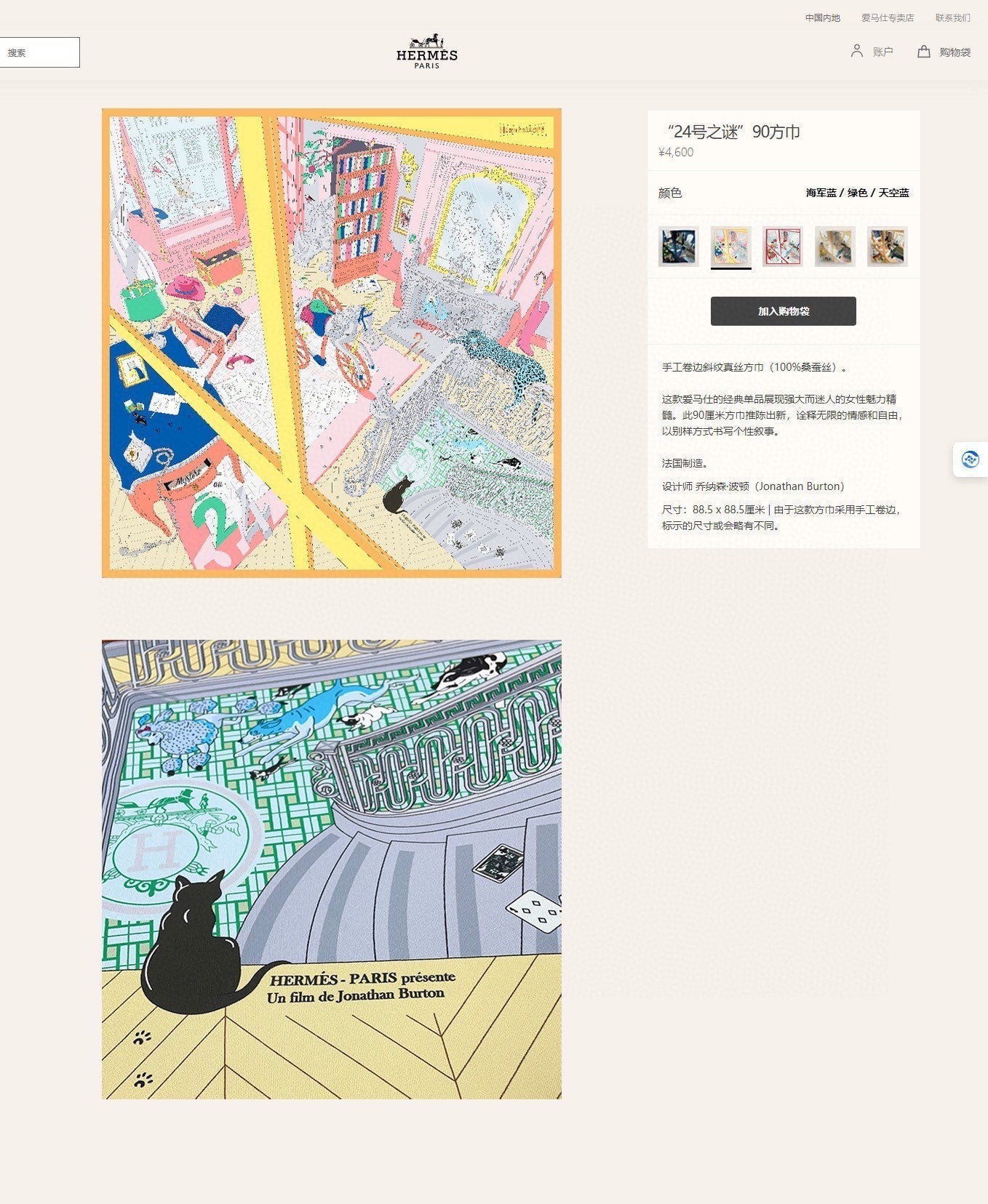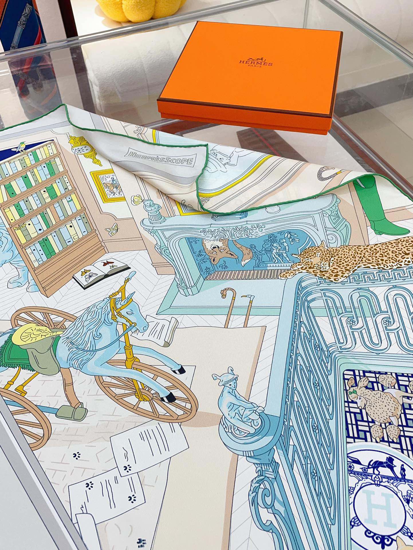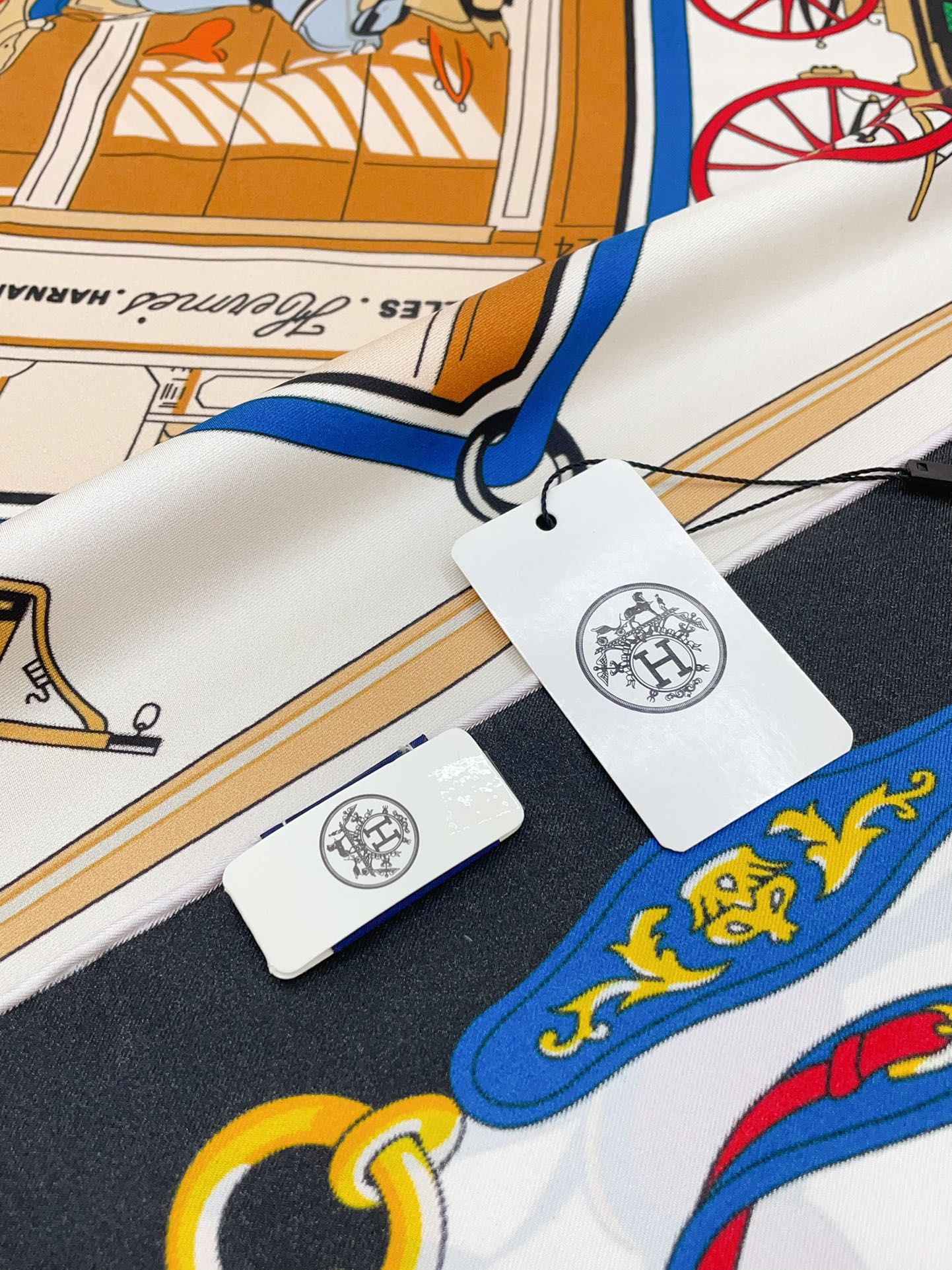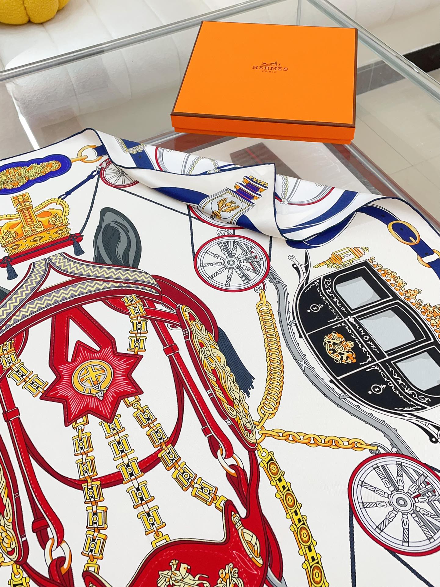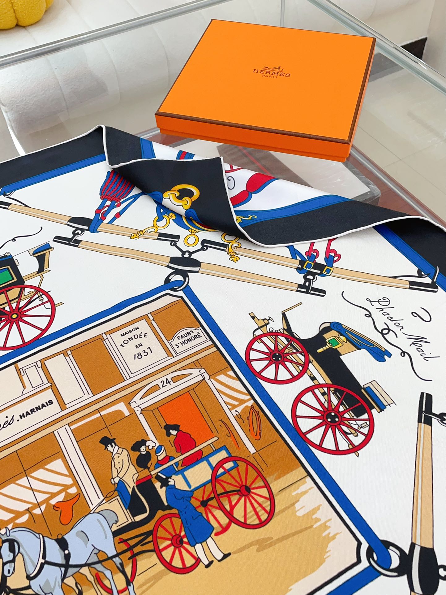 Palonniers scarf 90 CM In White Colorful Silk Twill 321911