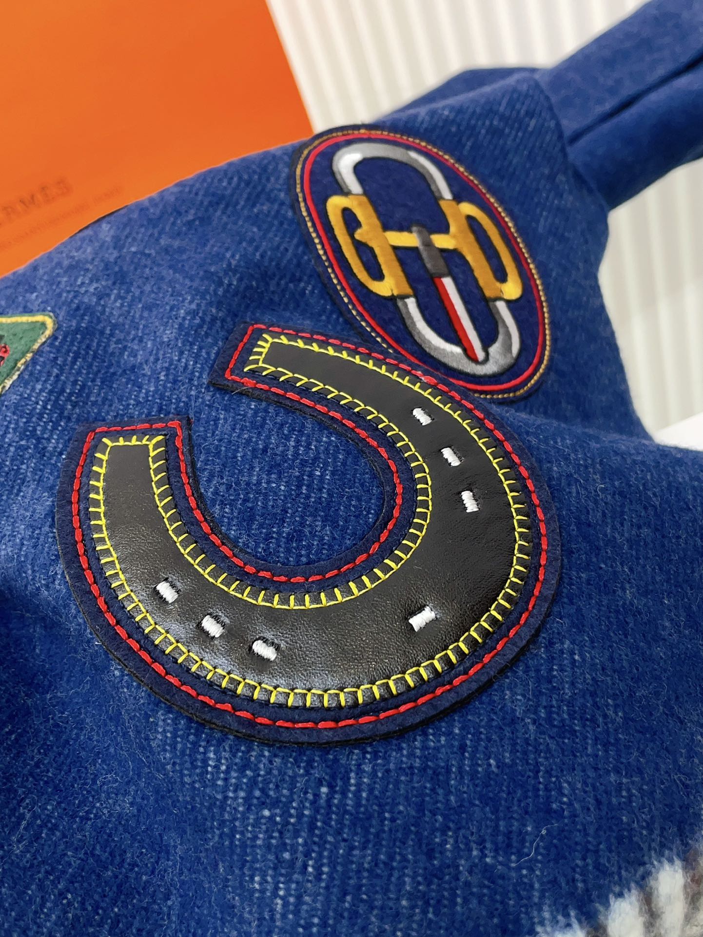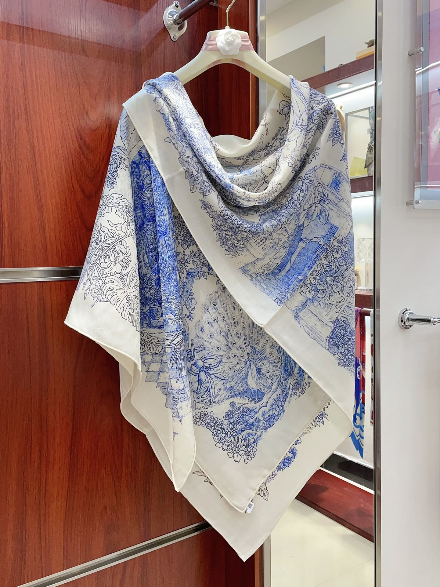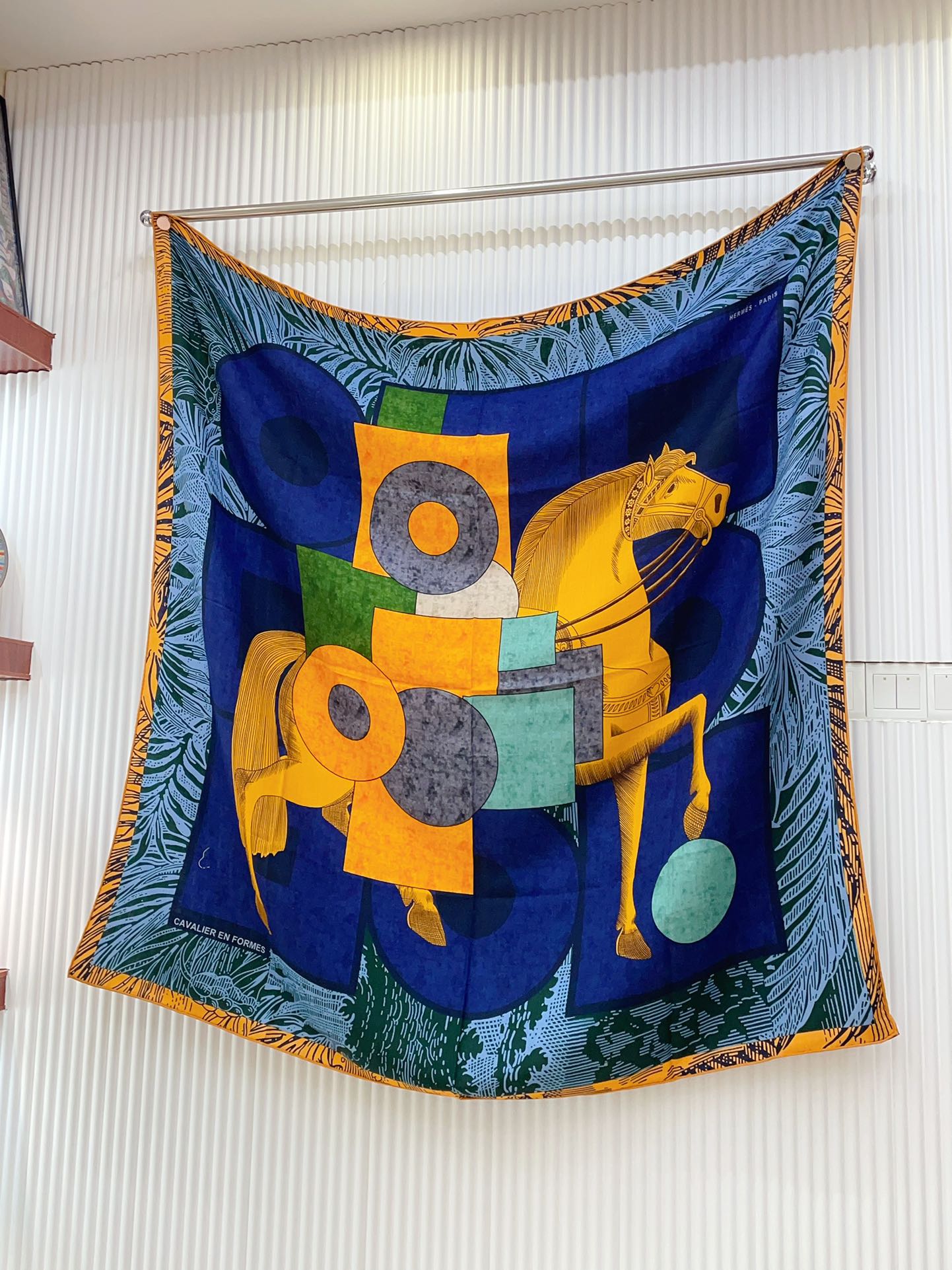 Cavalier en Formes shawl 140 CM In Duck Neck Blue Colorful Cashmere And Silk 331713