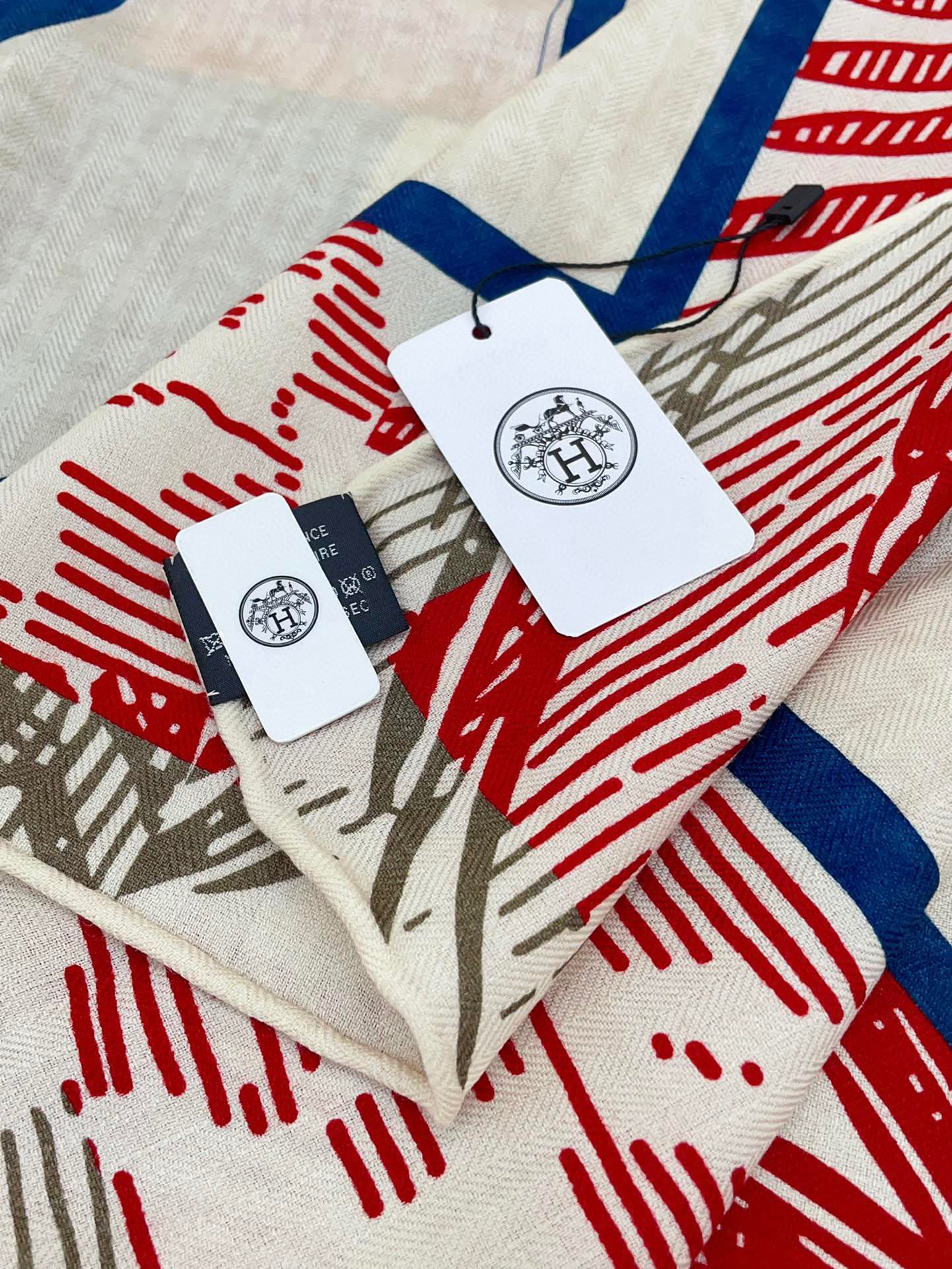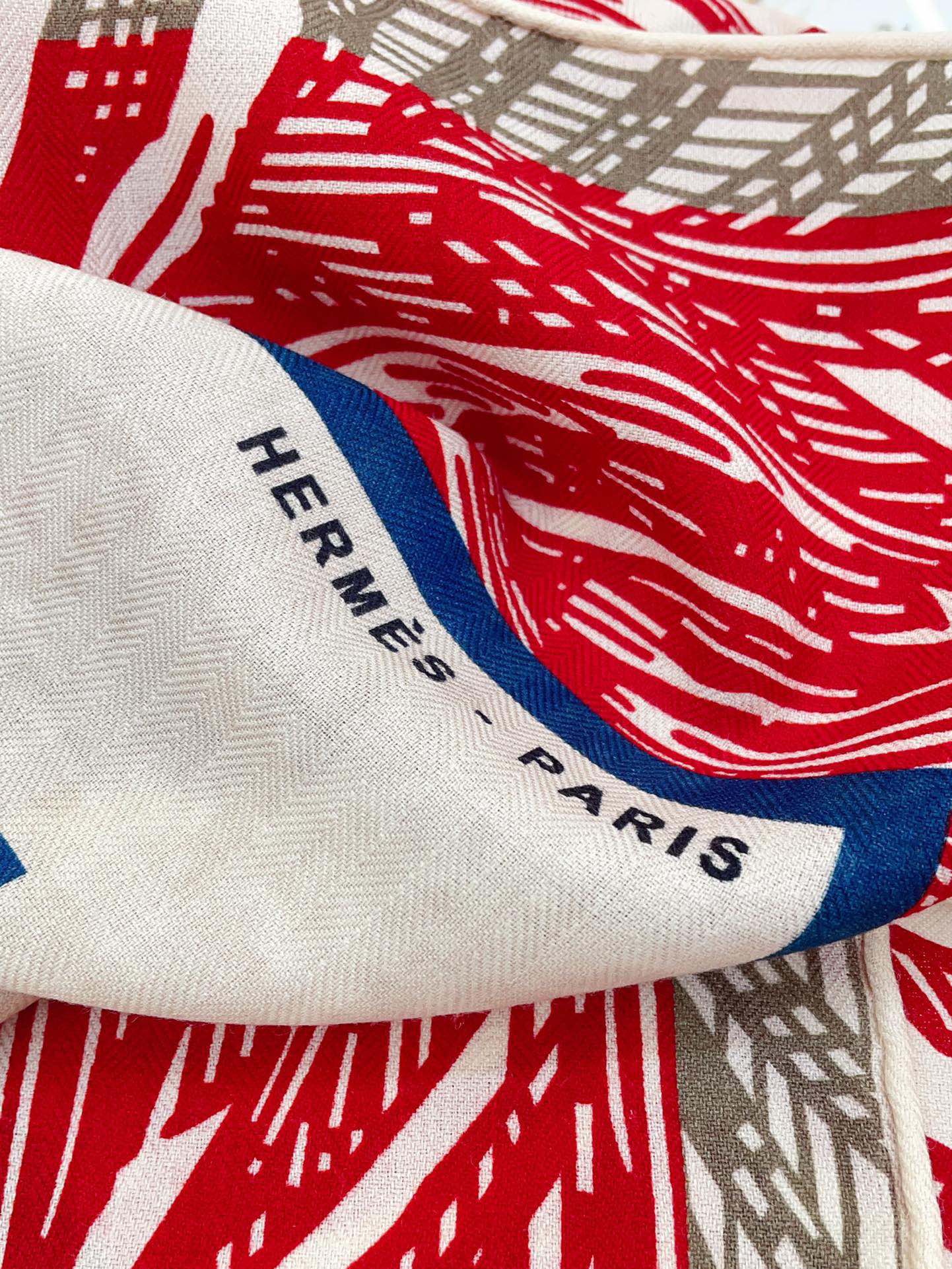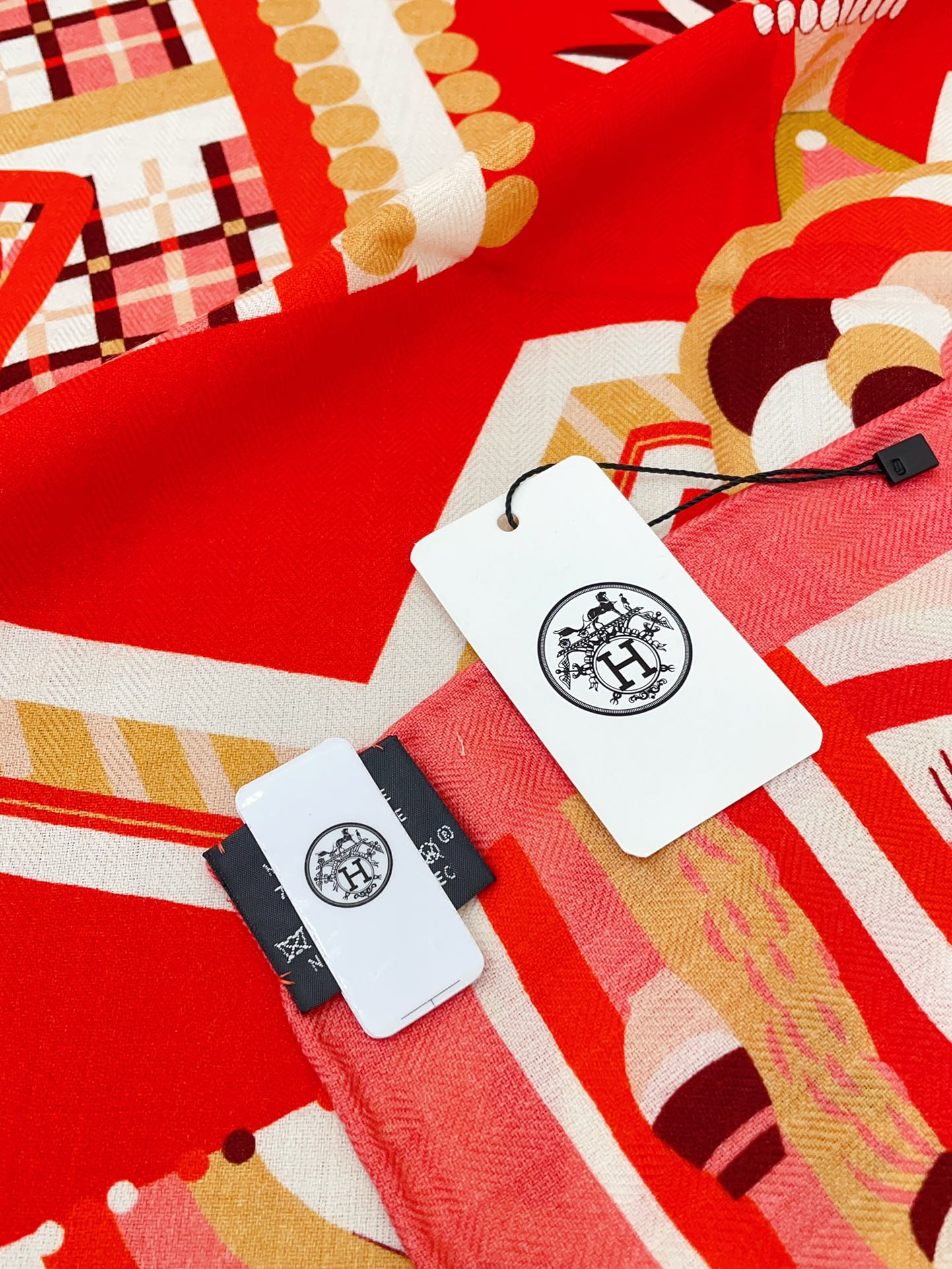 Carré Harnais De Cœur Scarf 140 CM In Red Colorful Cashmere And Silk 335858