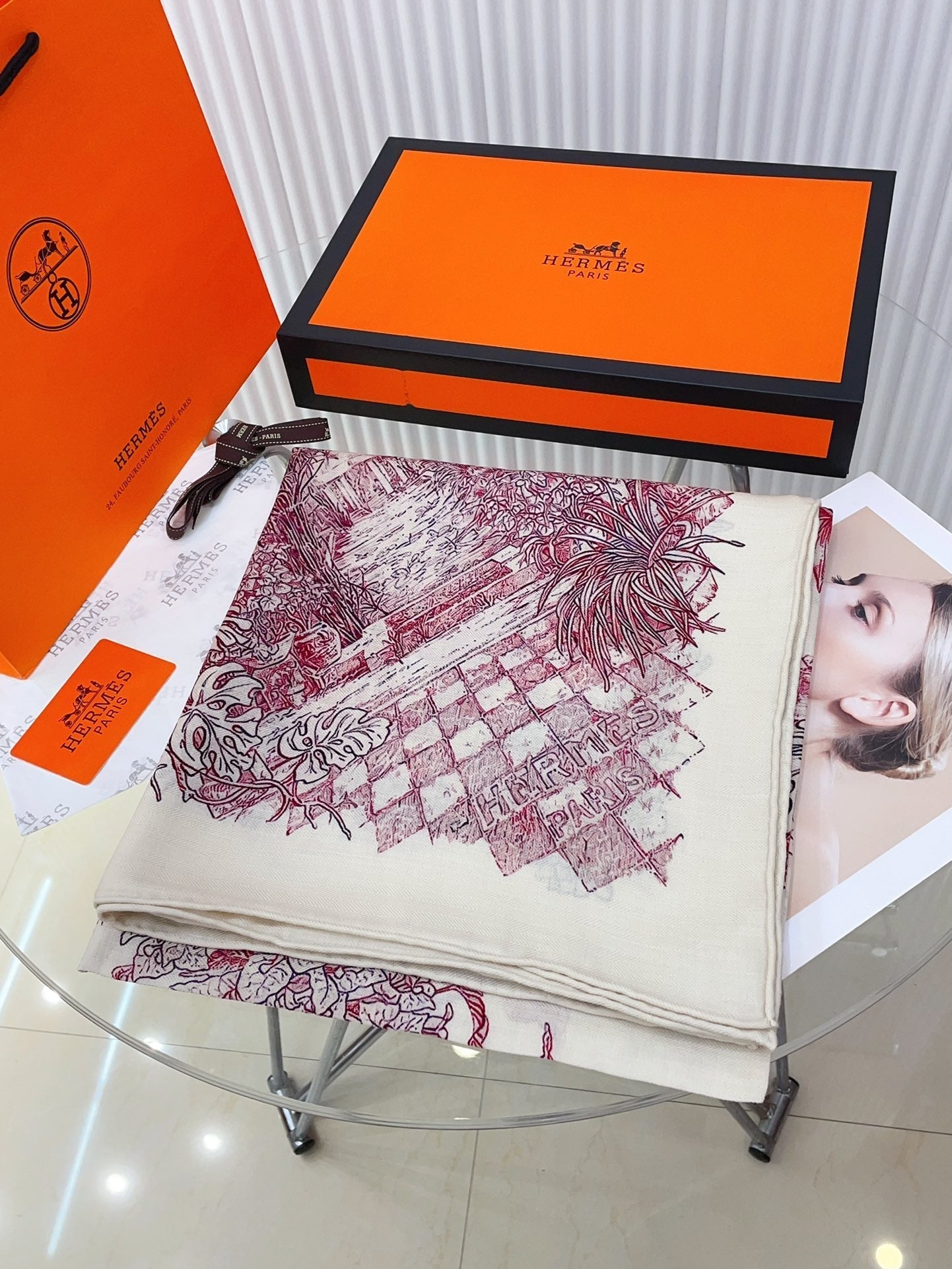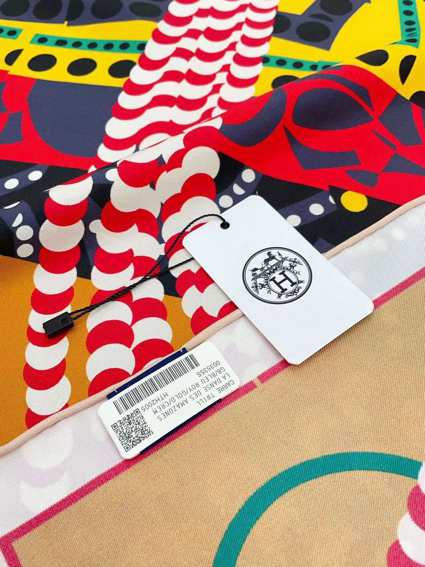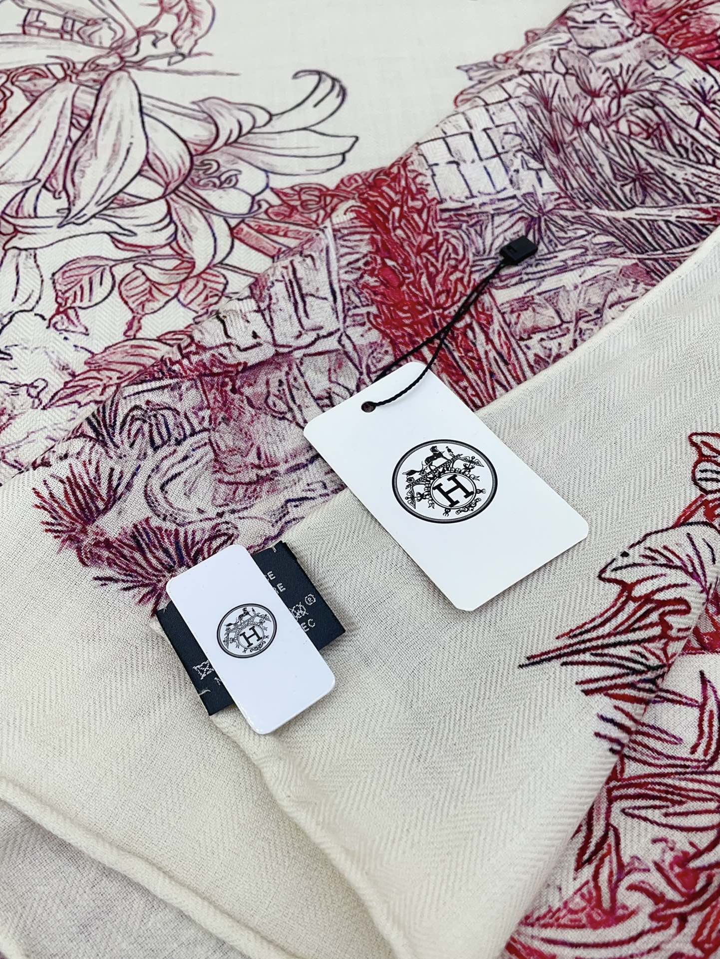 Carré Harnais De Cœur Scarf 140 CM In Red Colorful Cashmere And Silk 335858