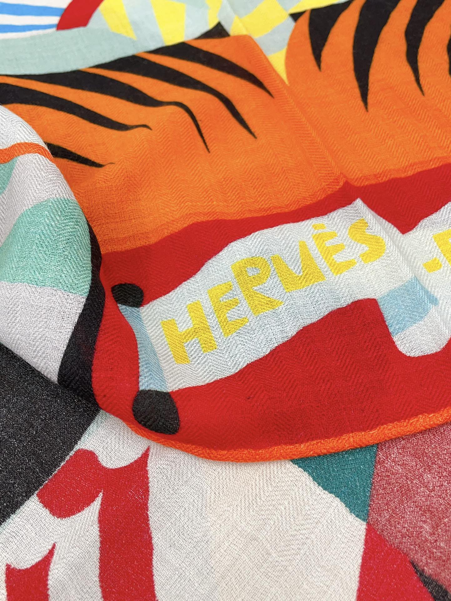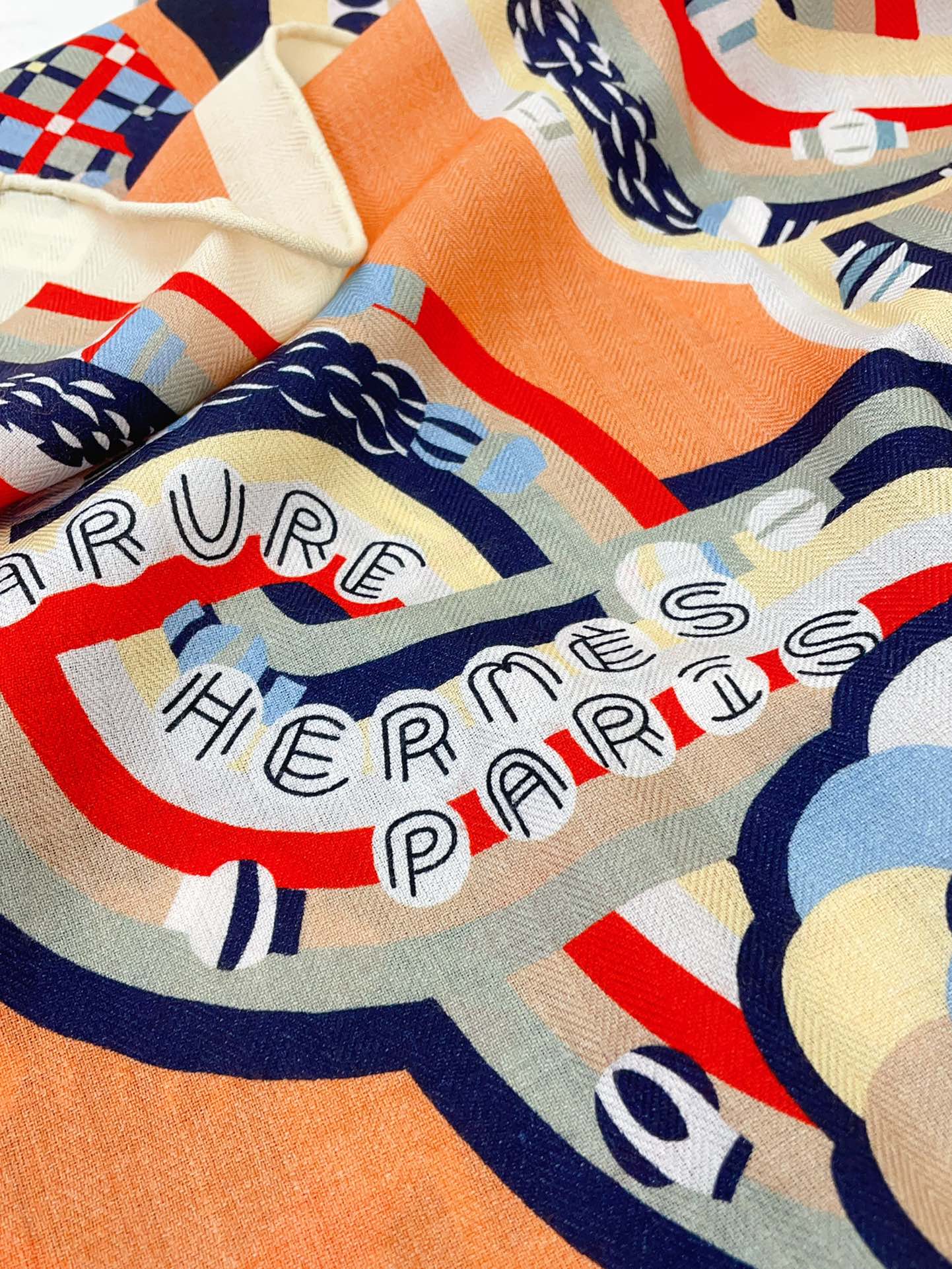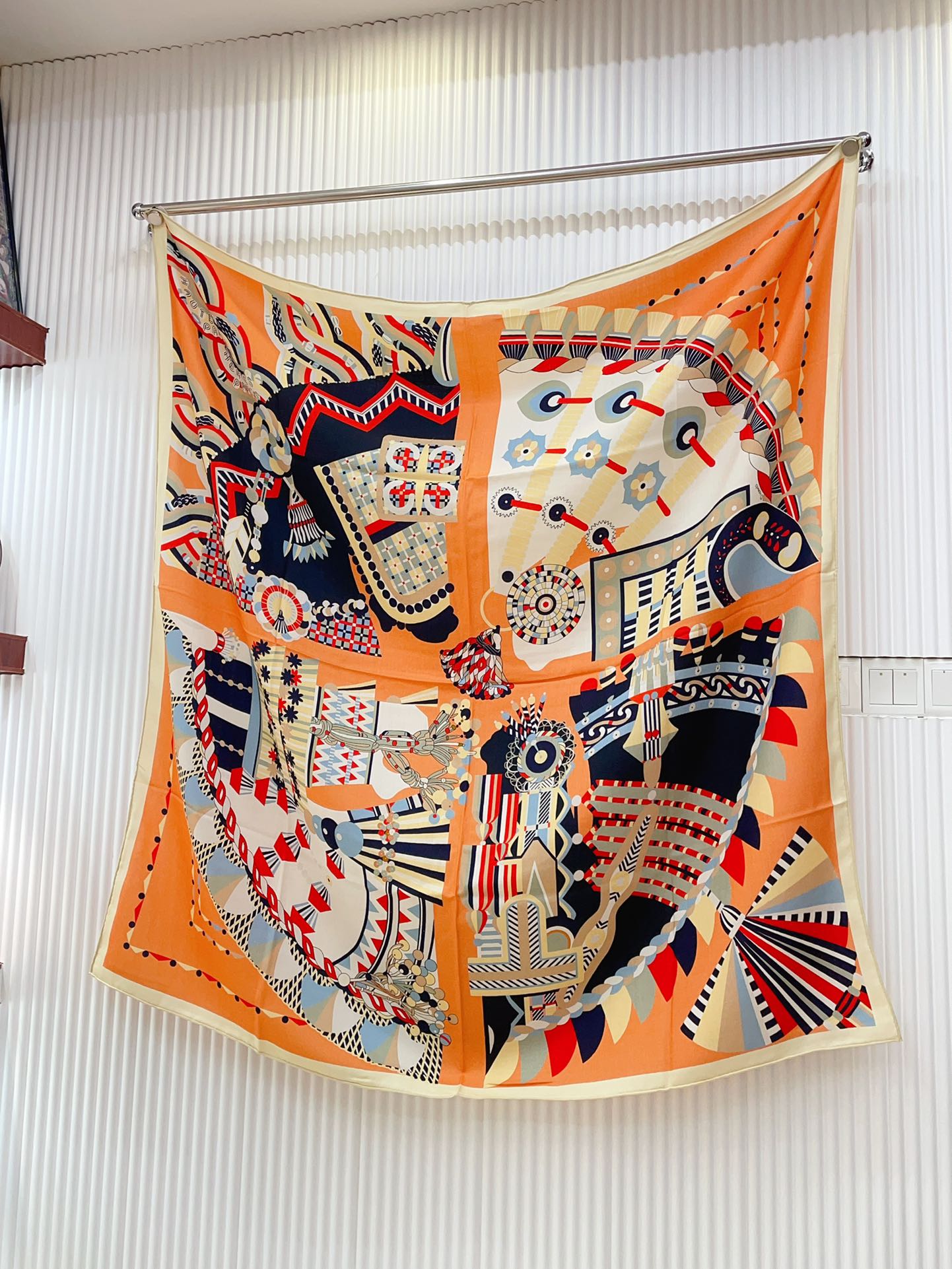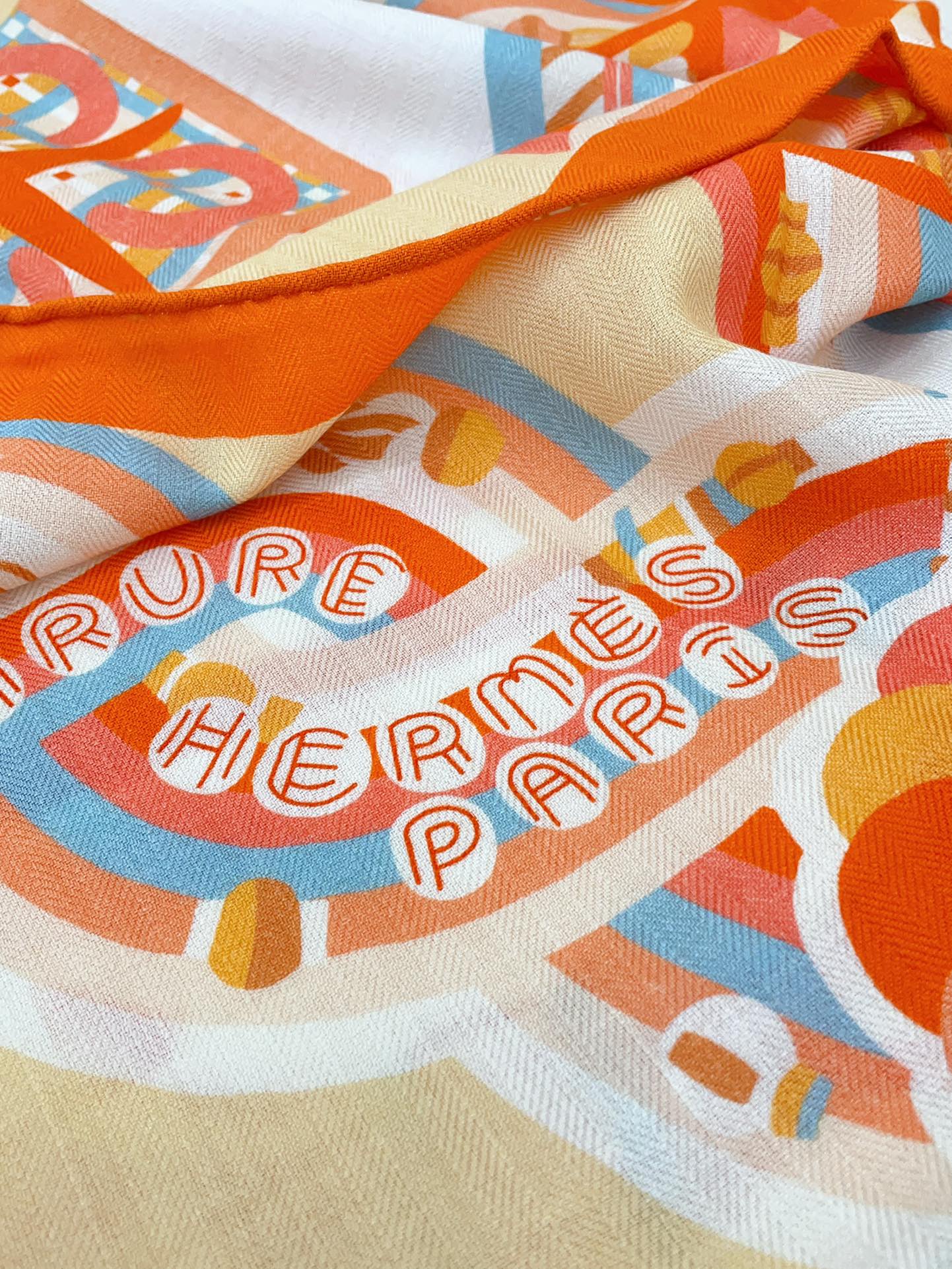 Carré Harnais De Cœur Scarf 140 CM In Orange Colorful Cashmere And Silk 335856