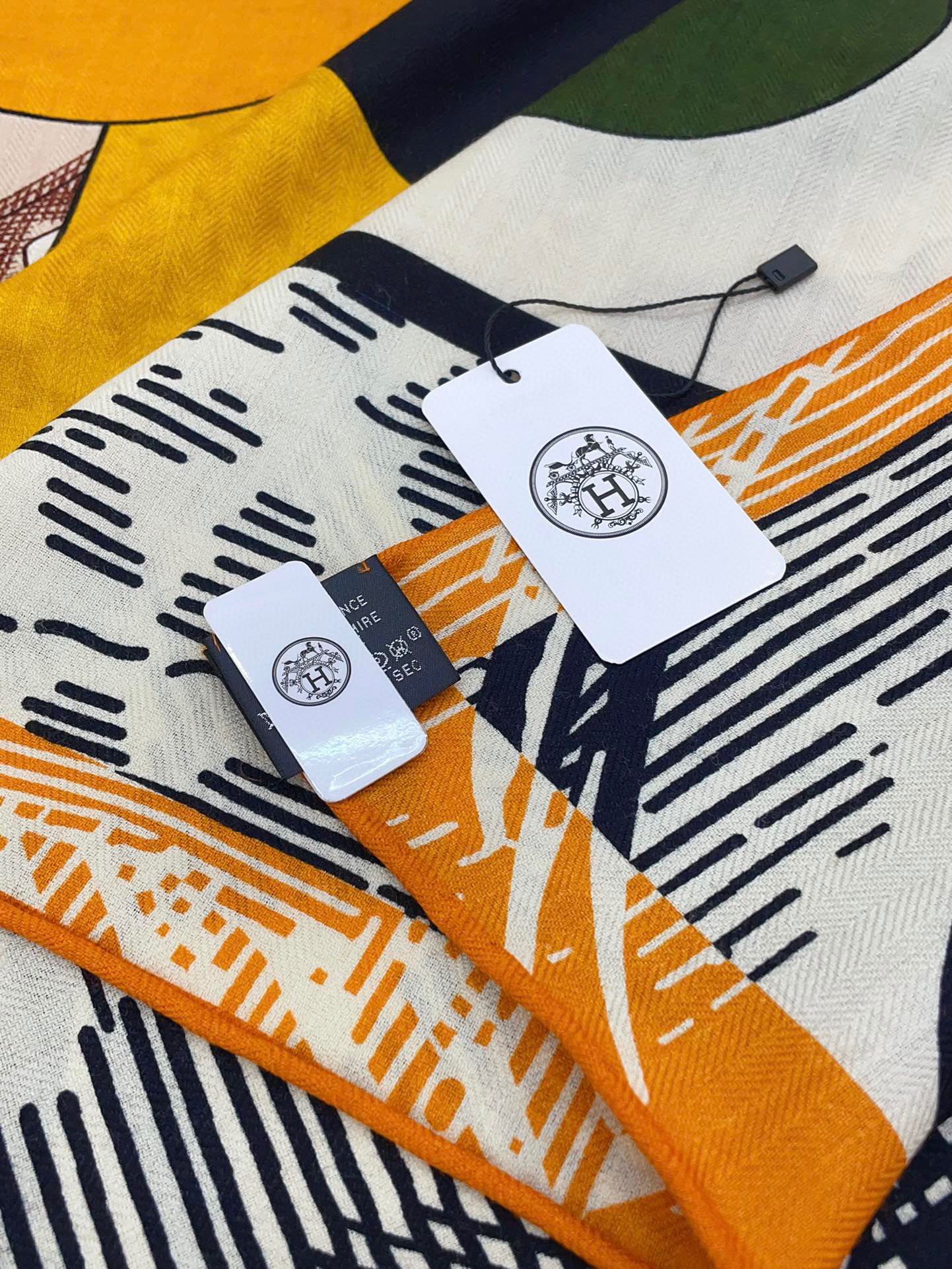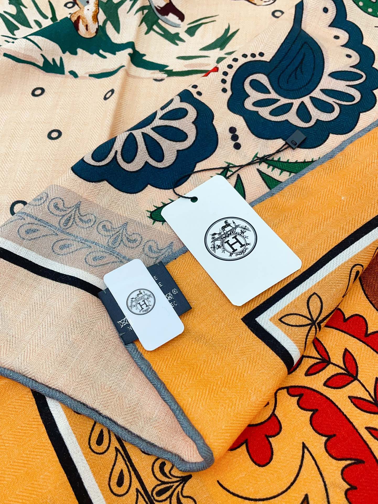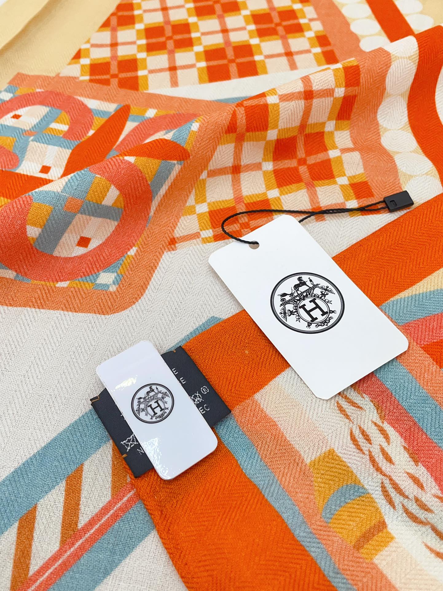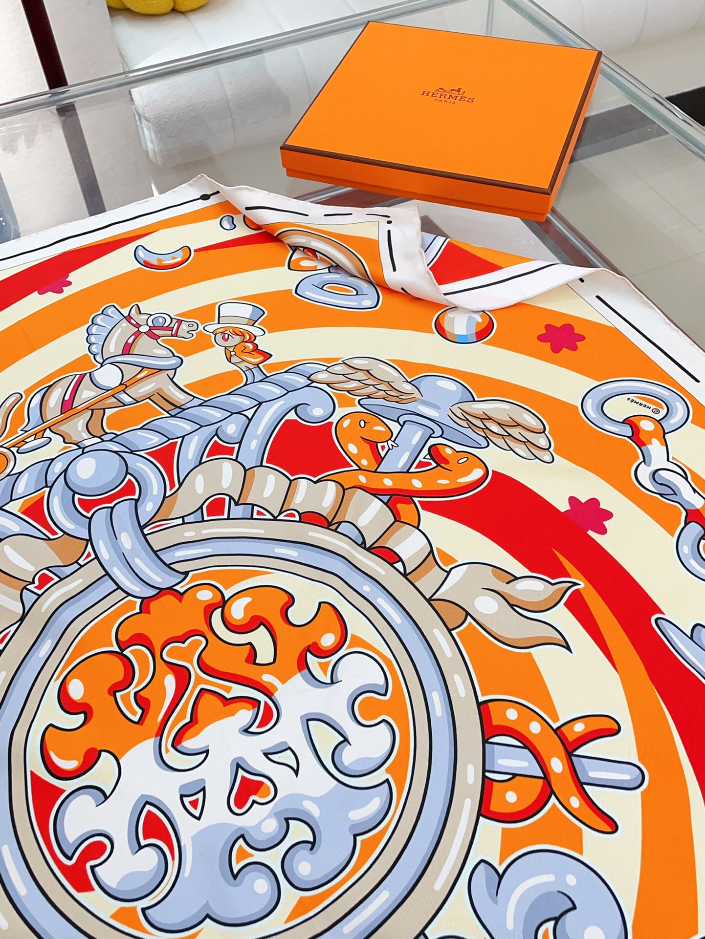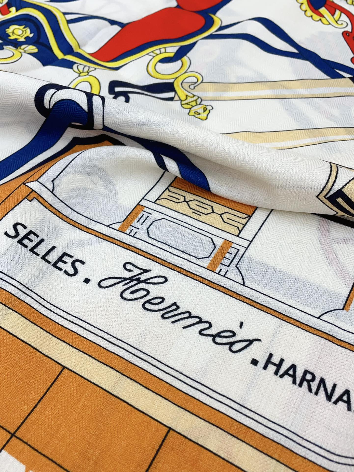Carré Harnais De Cœur Scarf 140 CM In Orange Colorful Cashmere And Silk 335856