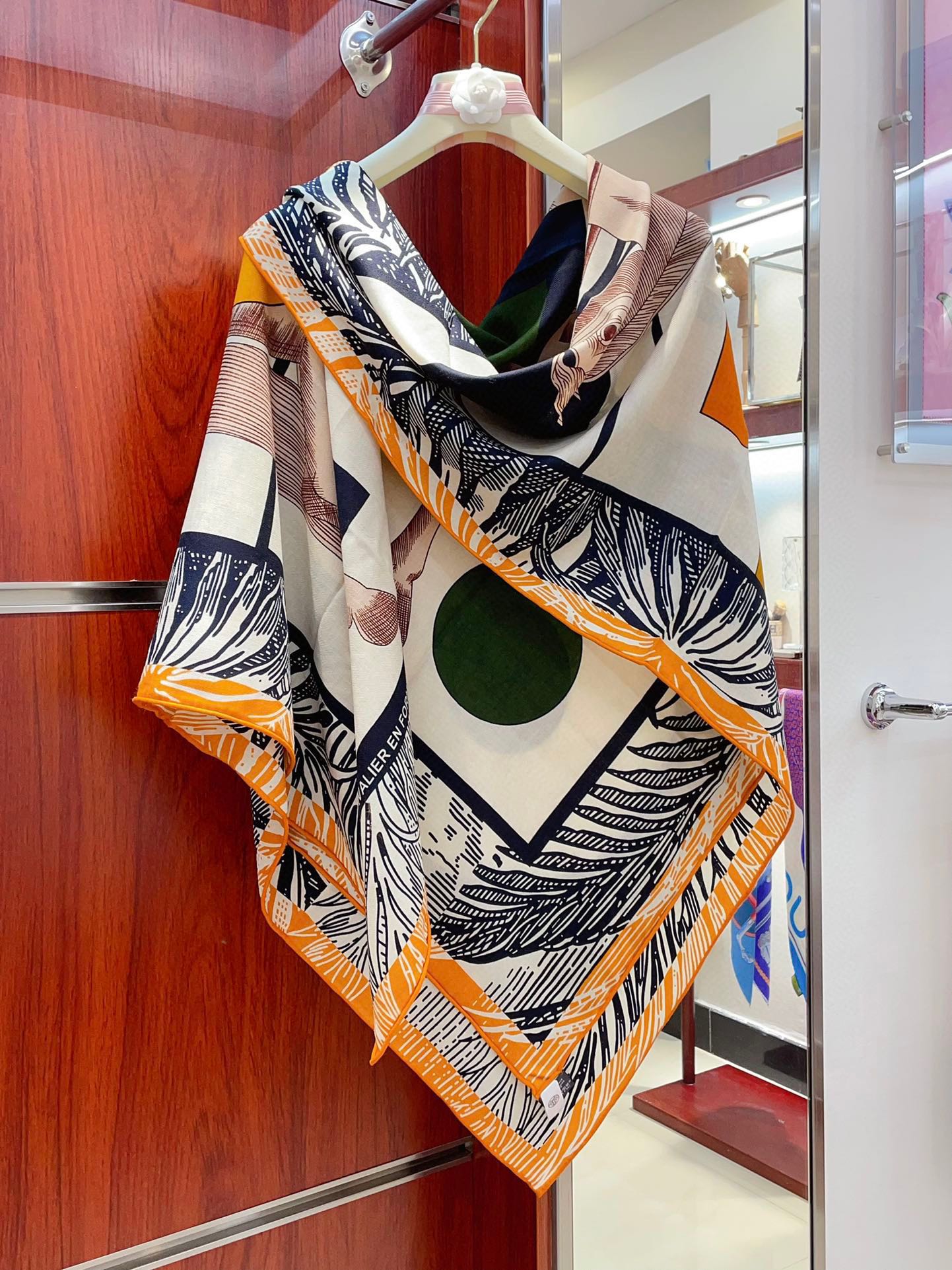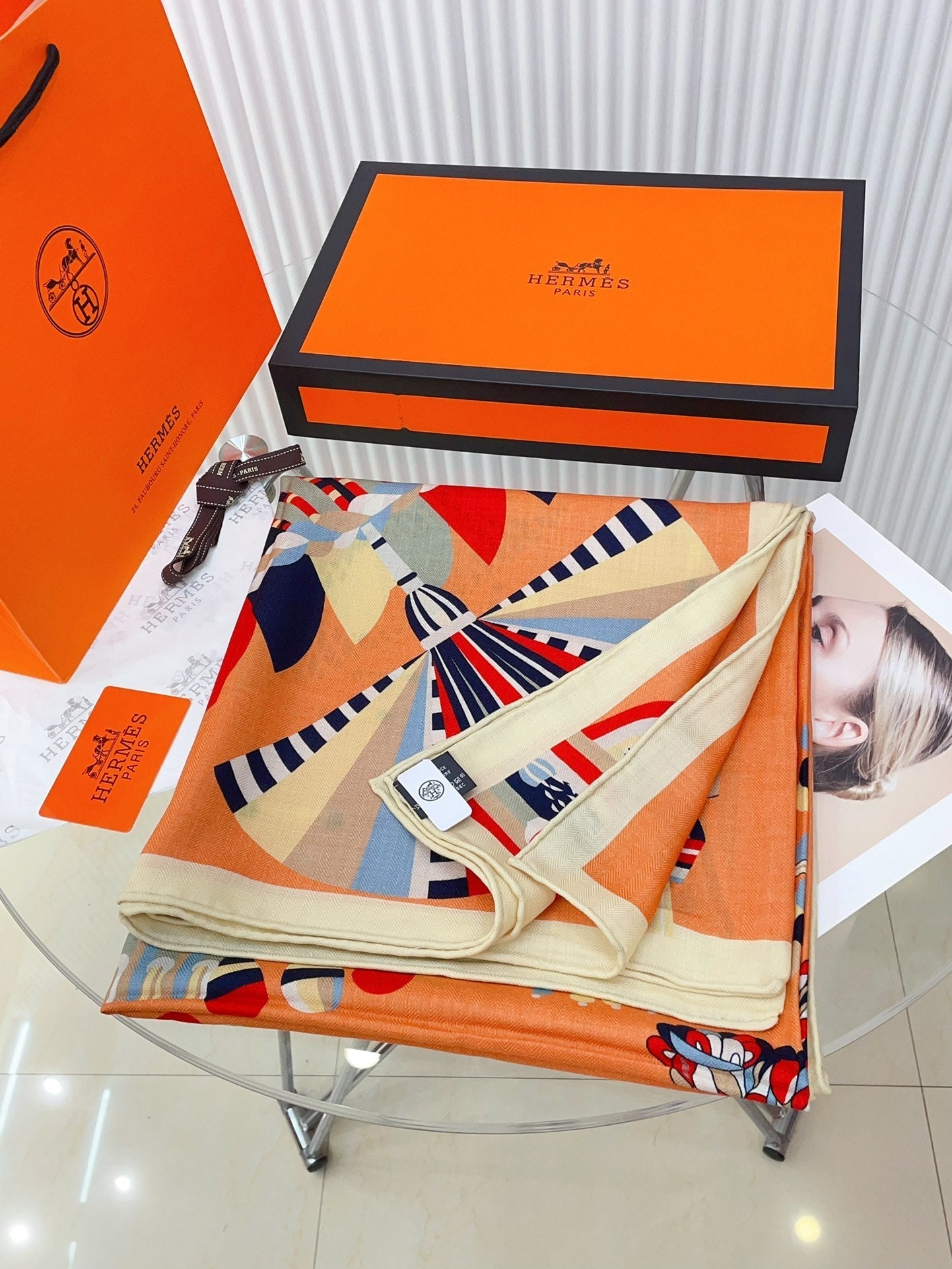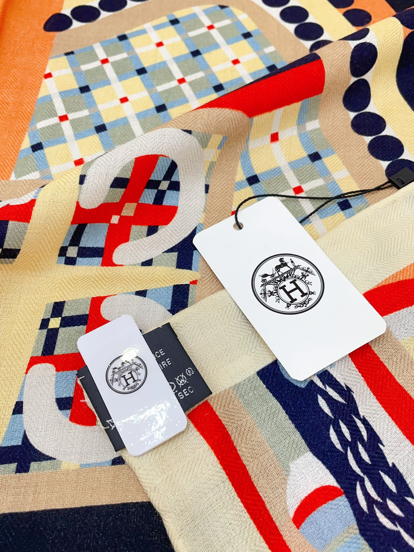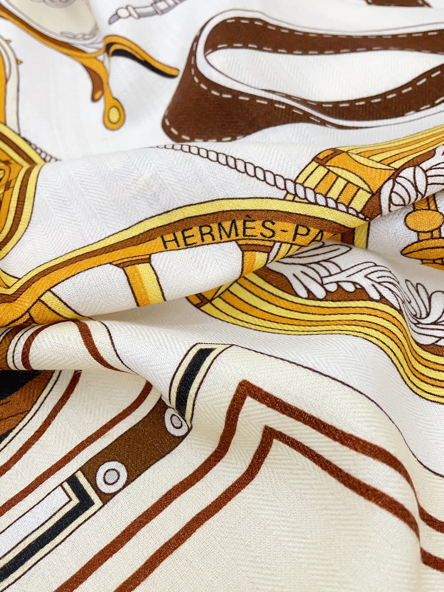Carré Harnais De Cœur Scarf 140 CM In Orange Colorful Cashmere And Silk 335856