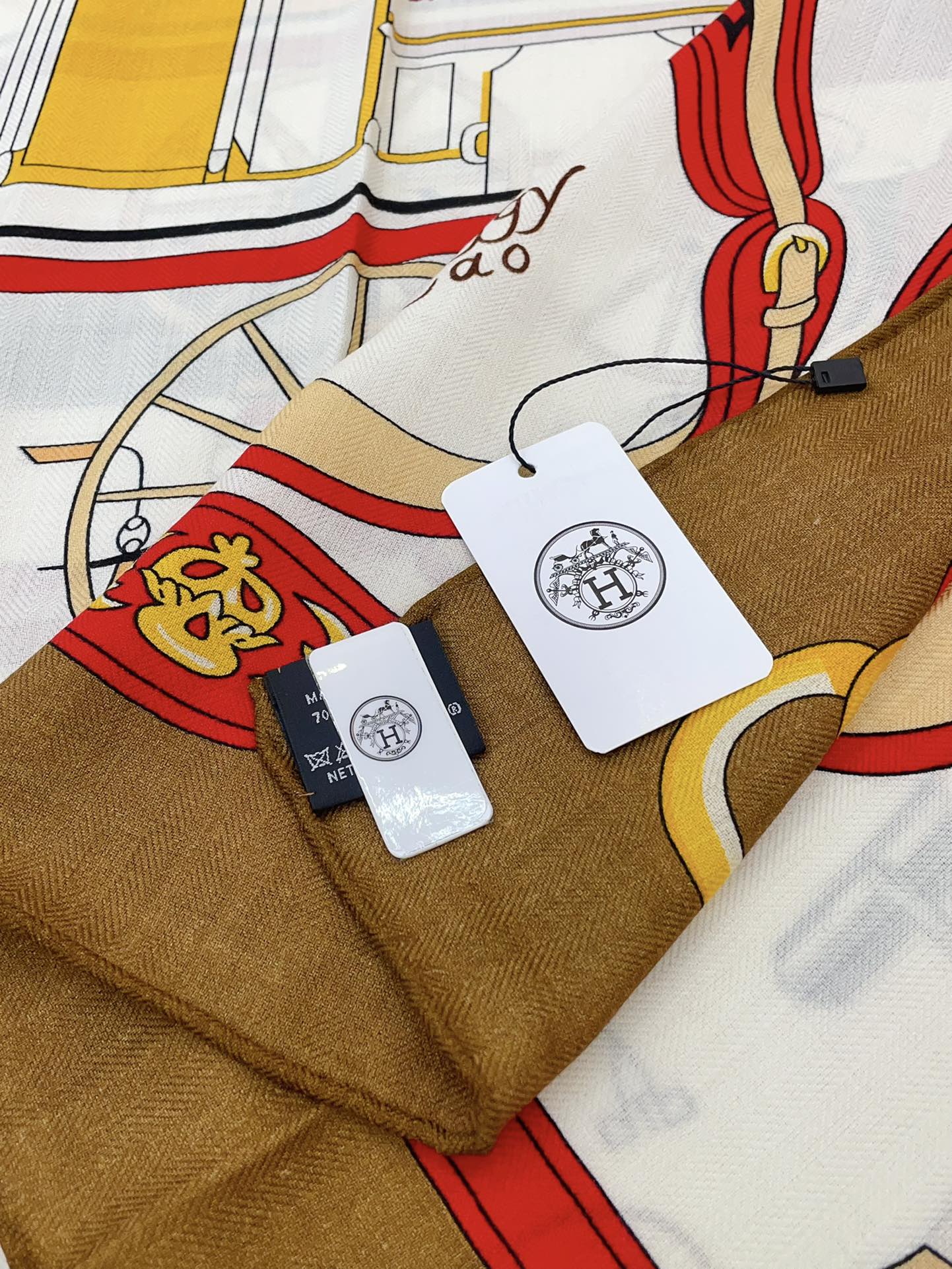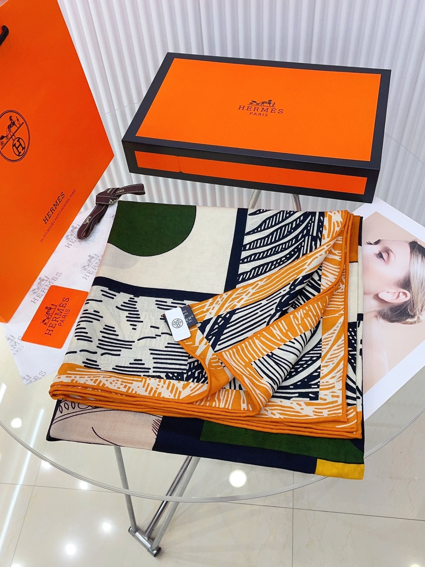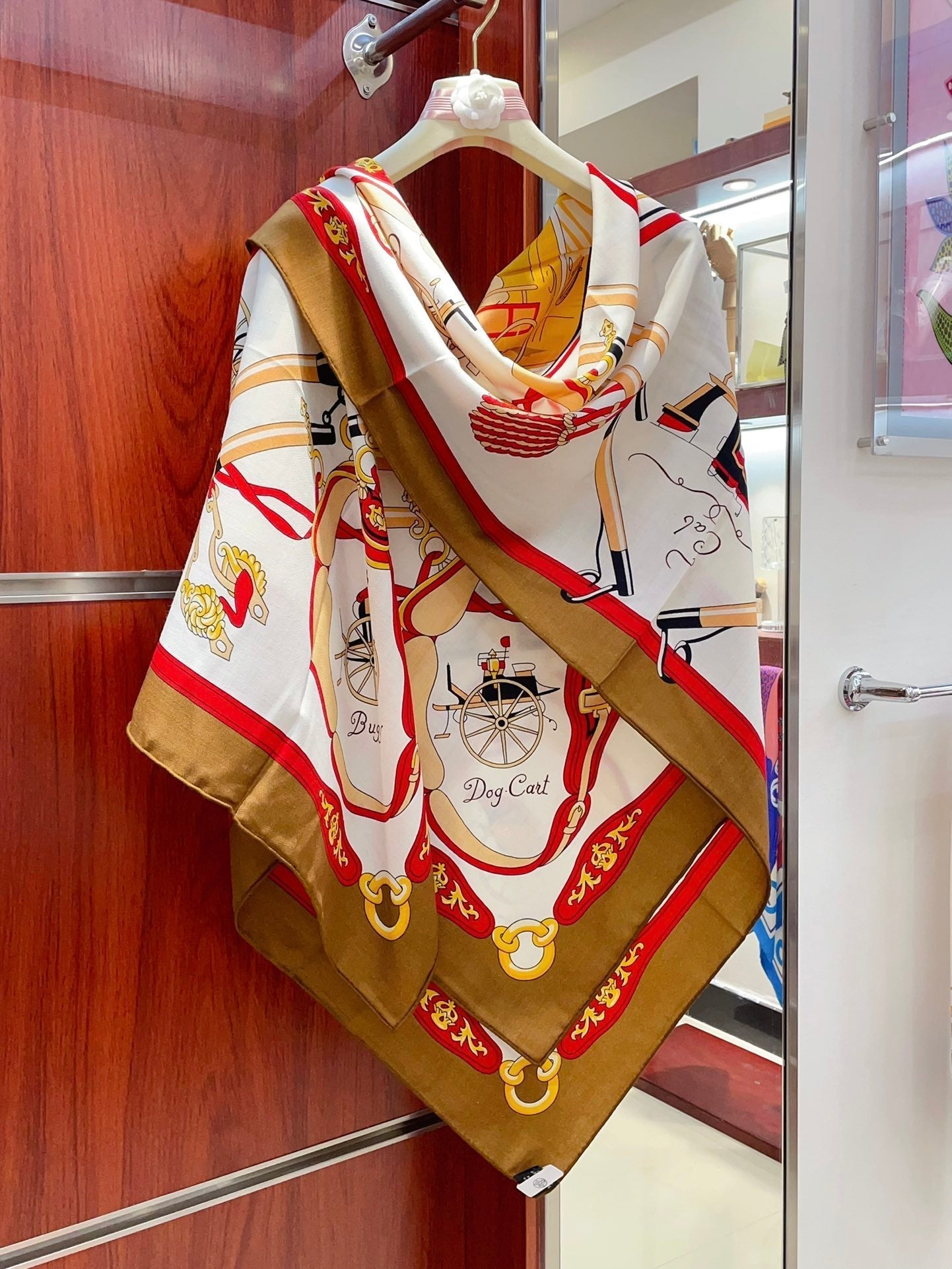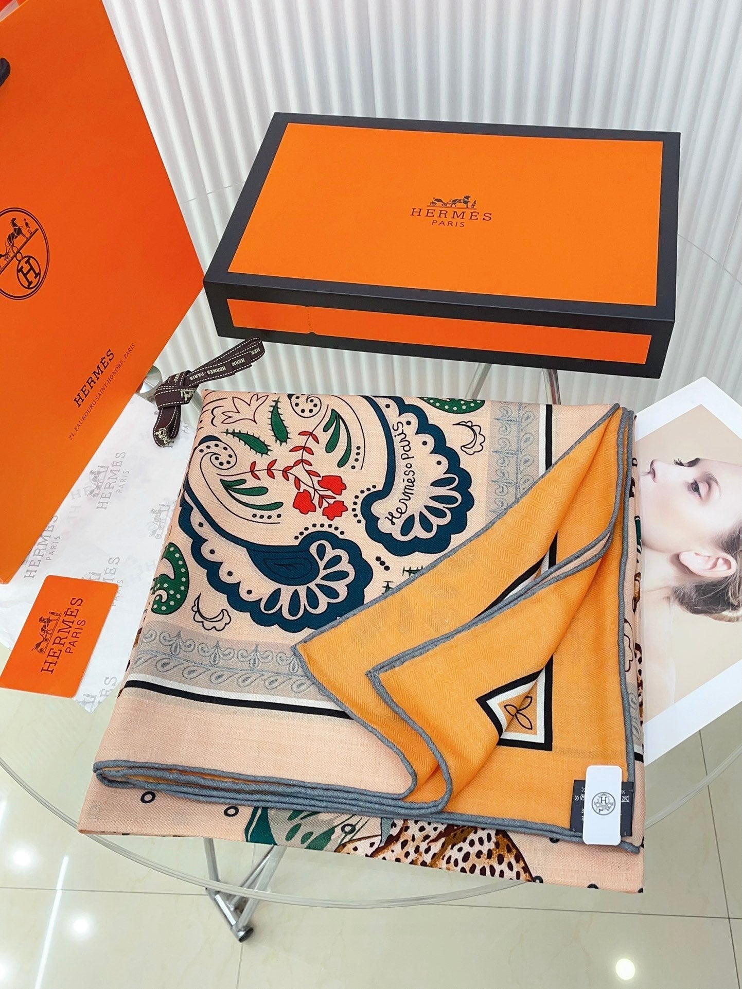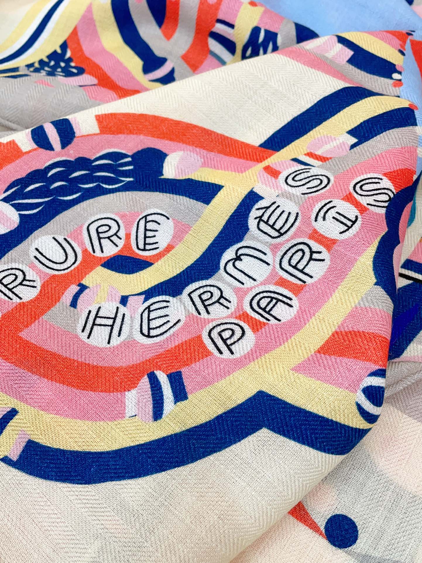 Carré Harnais De Cœur Scarf 140 CM In Orange Colorful Cashmere And Silk 335856