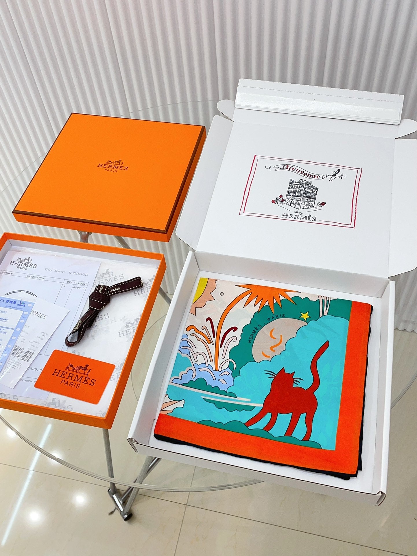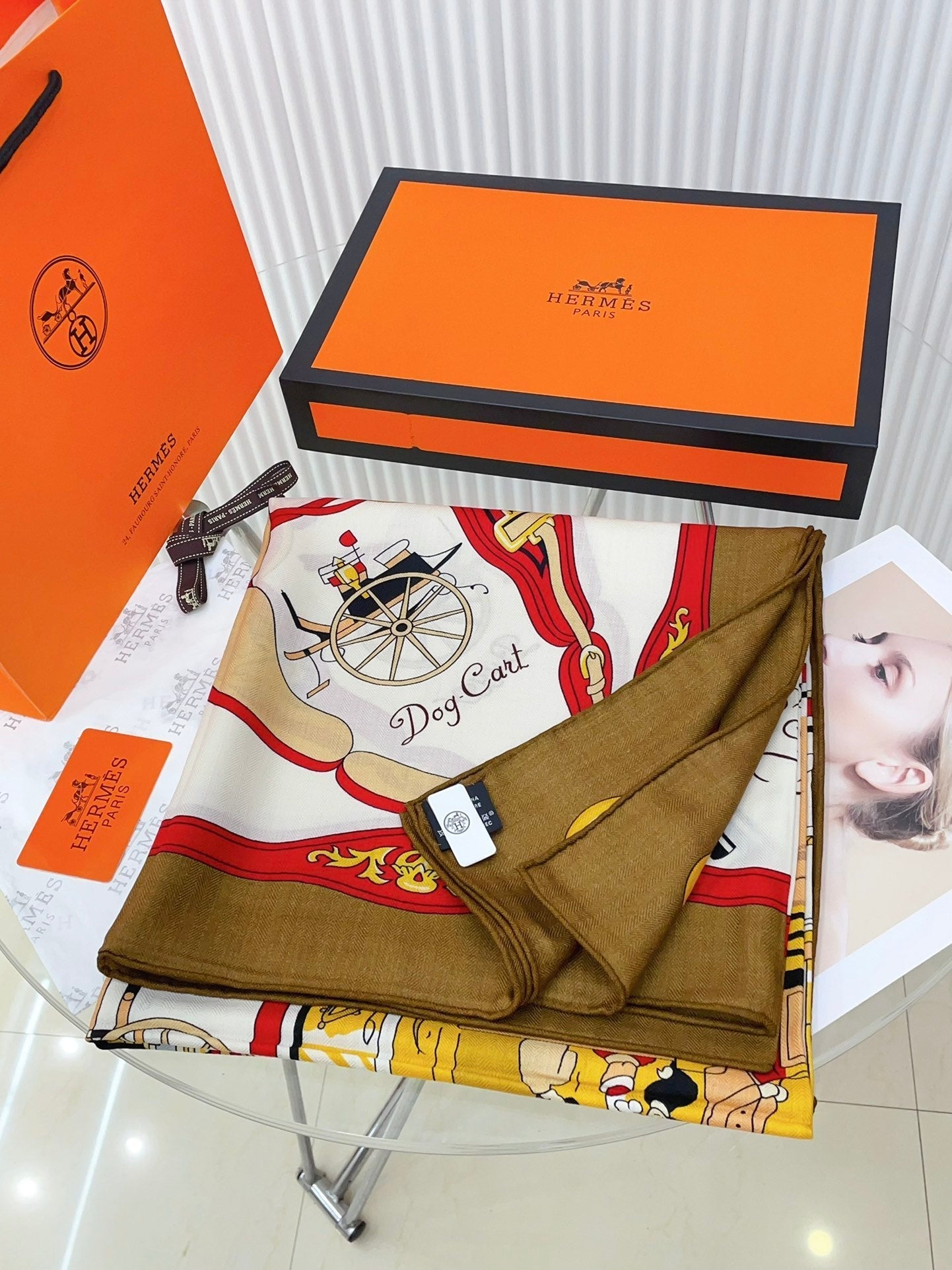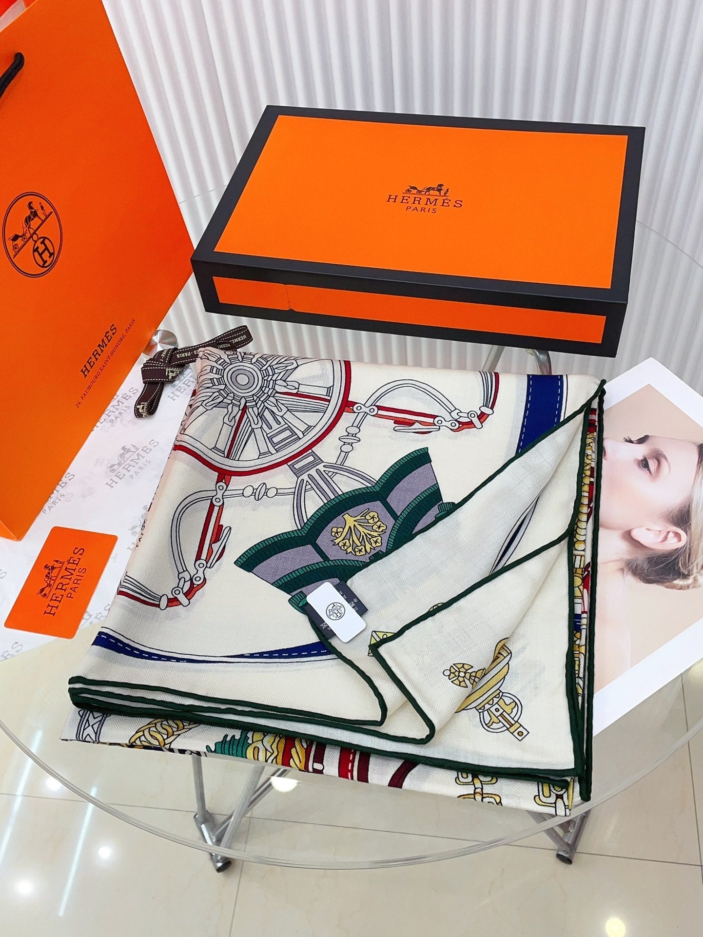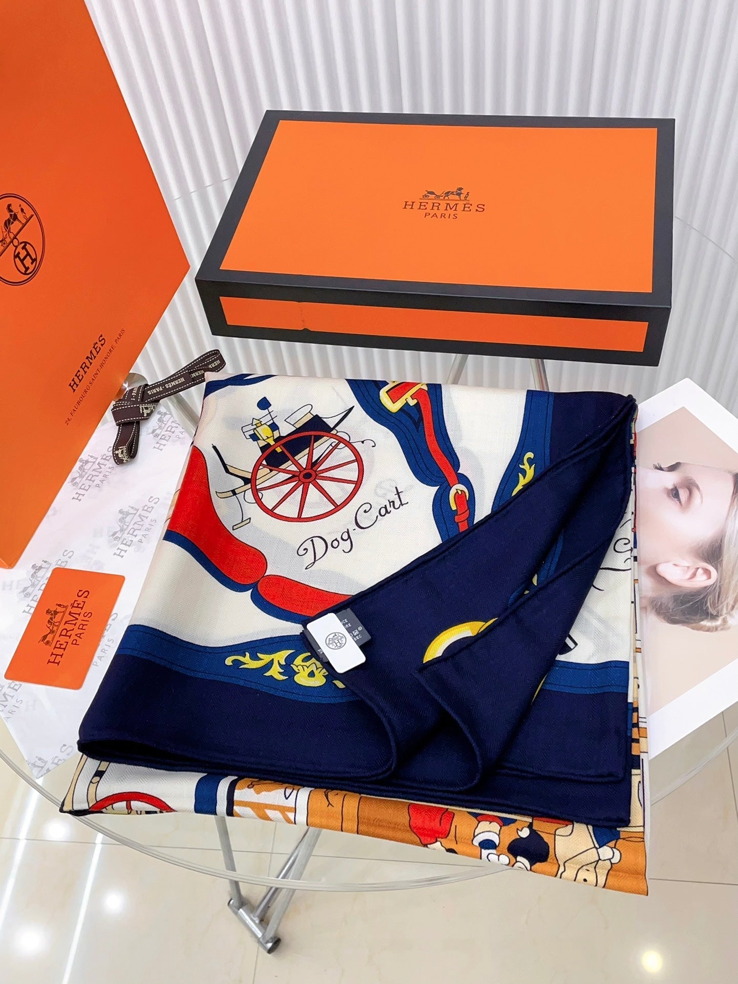 Carré Harnais De Cœur Scarf 140 CM In Orange Colorful Cashmere And Silk 335856