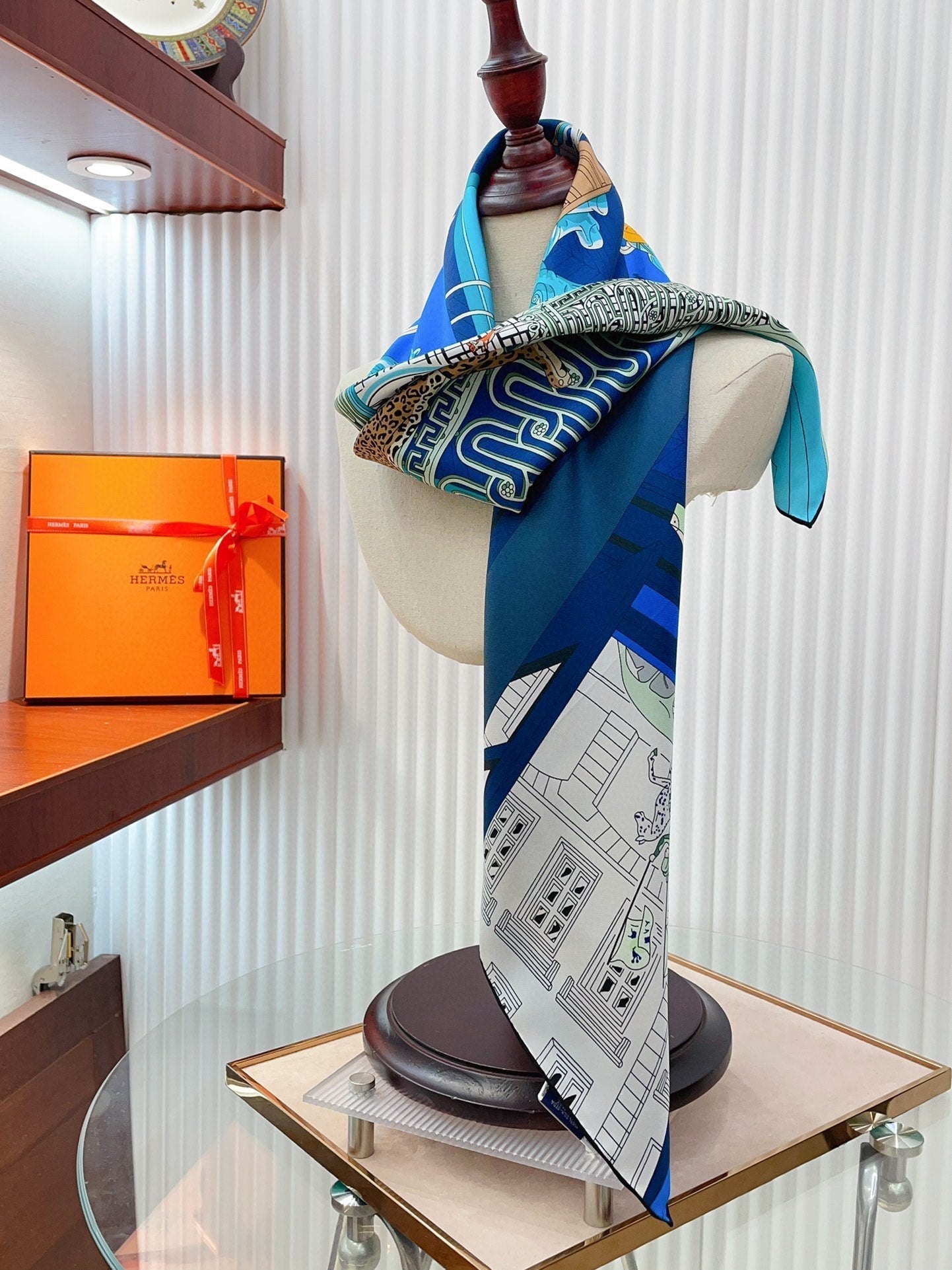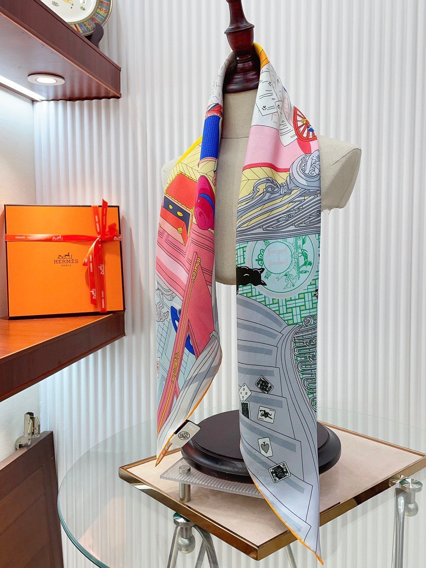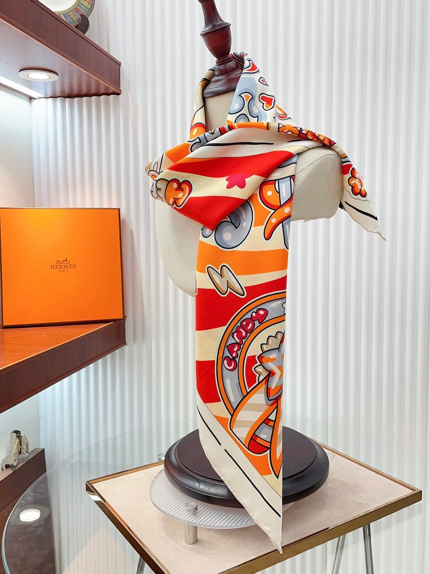 Palonniers scarf 90 CM In Orange Colorful Silk Twill 321910