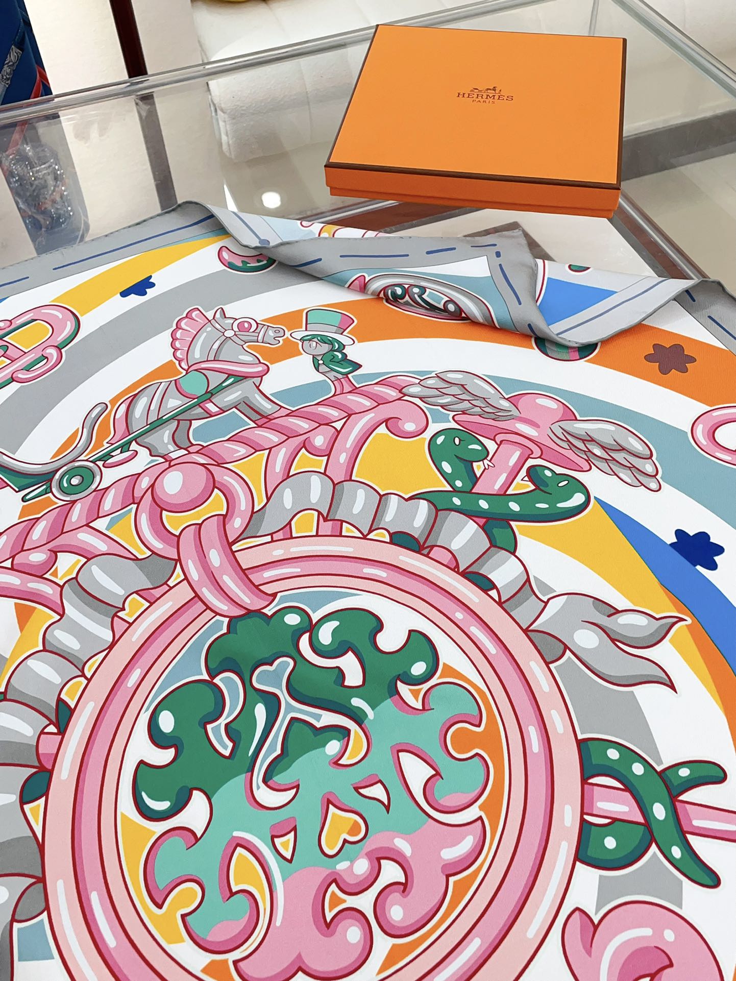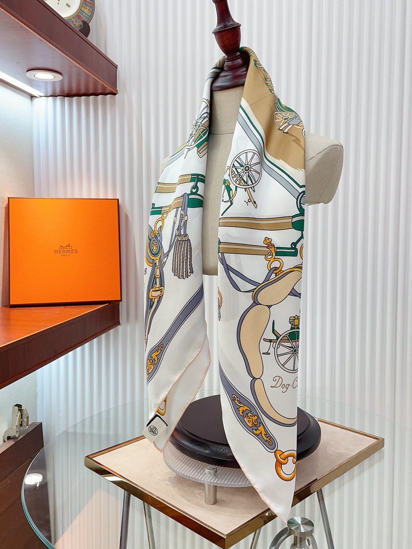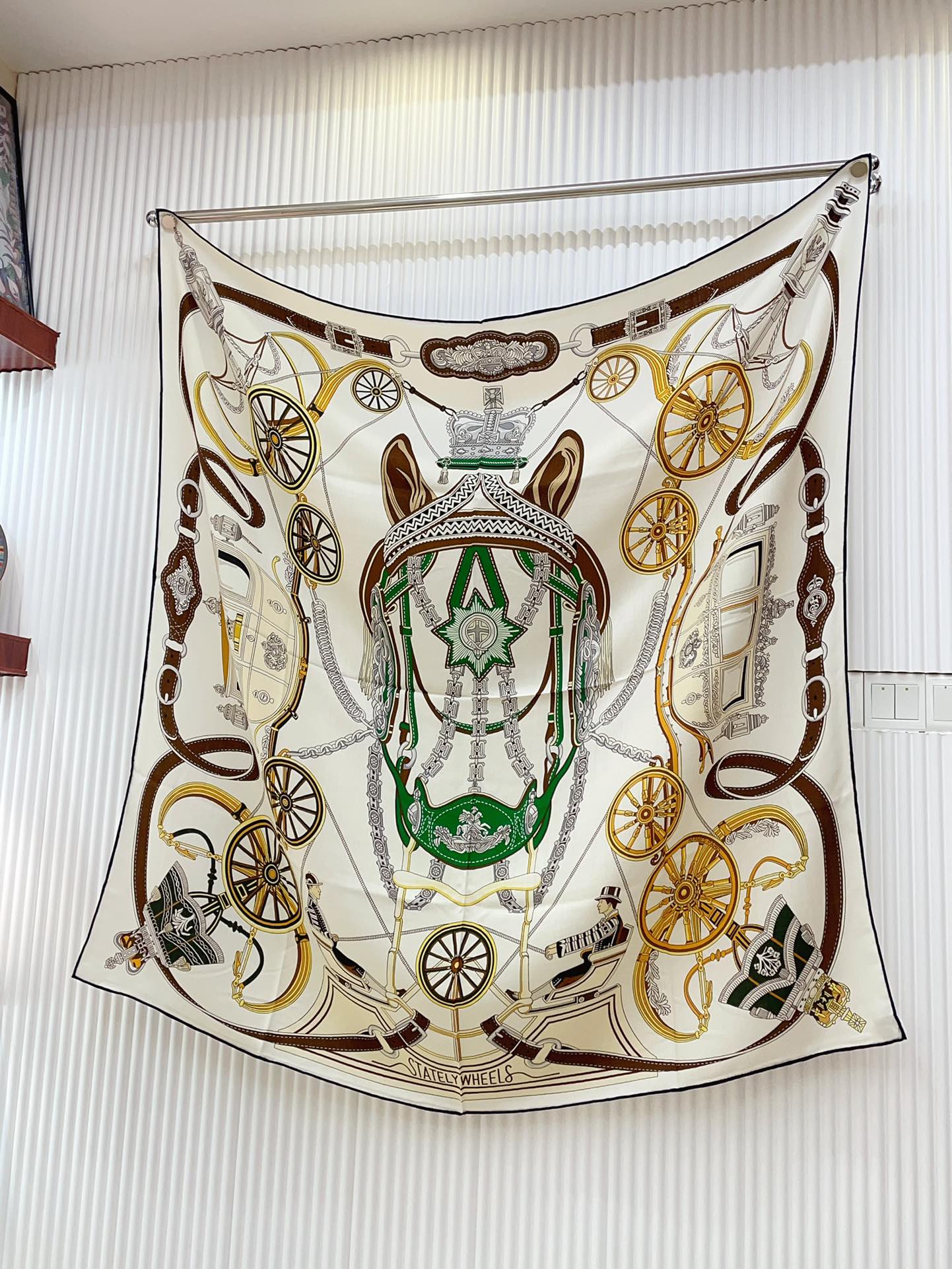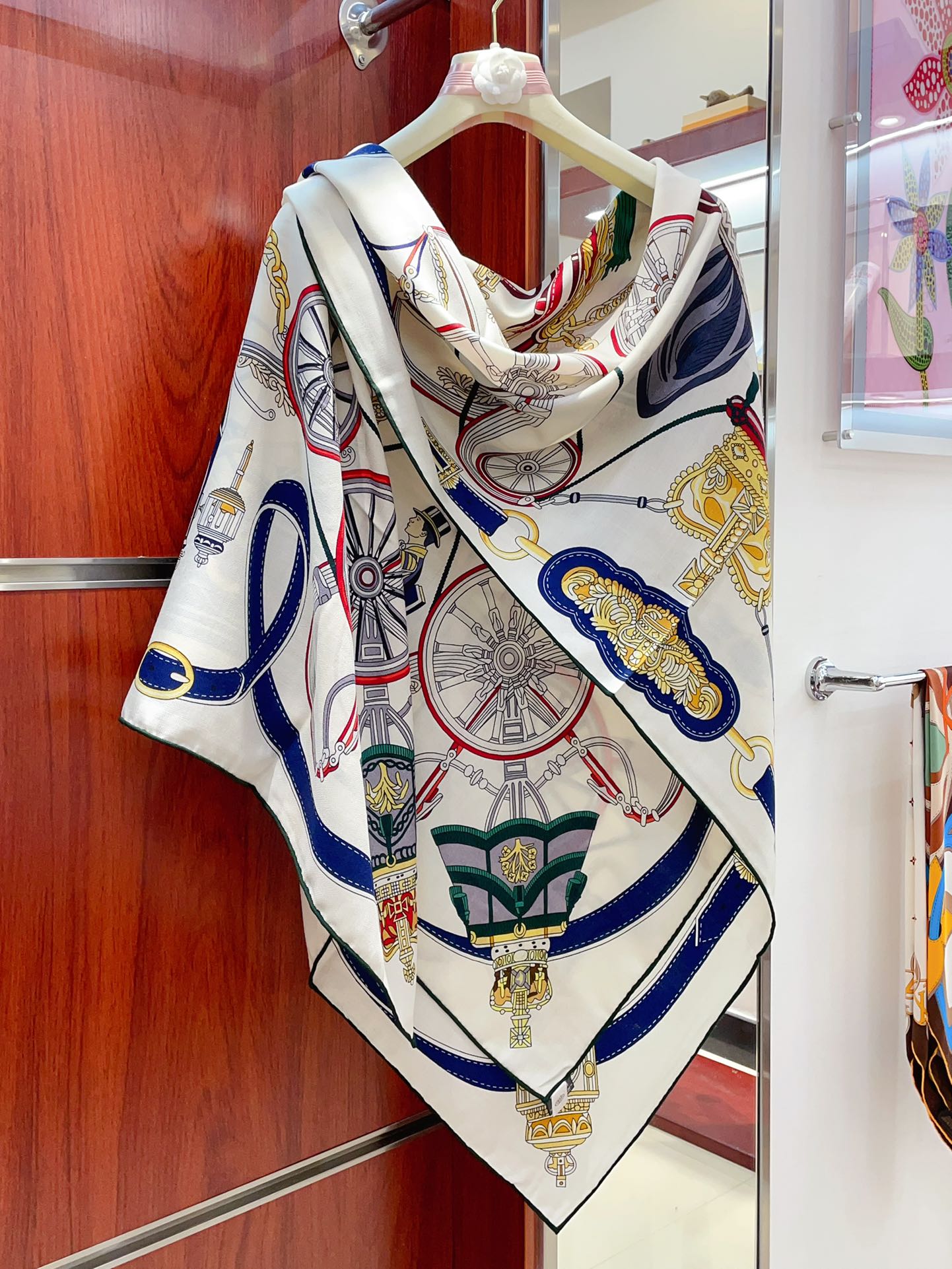 Stately Wheels Scarf 90 CM White Colorful Silk Twill 312874